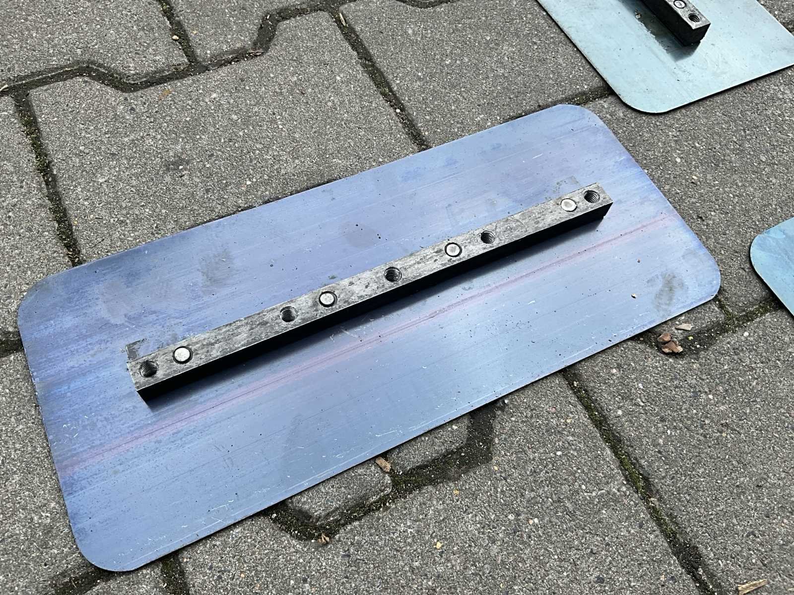 Schuurblad; schuurschijf; betontroffelbladen afwerkbladen; 340x150 mm; algemene dikte 2,2 mm; ongebruikt; (1 doosje = 4 stuks h.o.h. boutafstand 65 mm Merk: Easy-Going Type: Mangaanstaal / SK5 Bouwjaar: 2024 Afmeting l: 340mm Afmeting b: 150mm