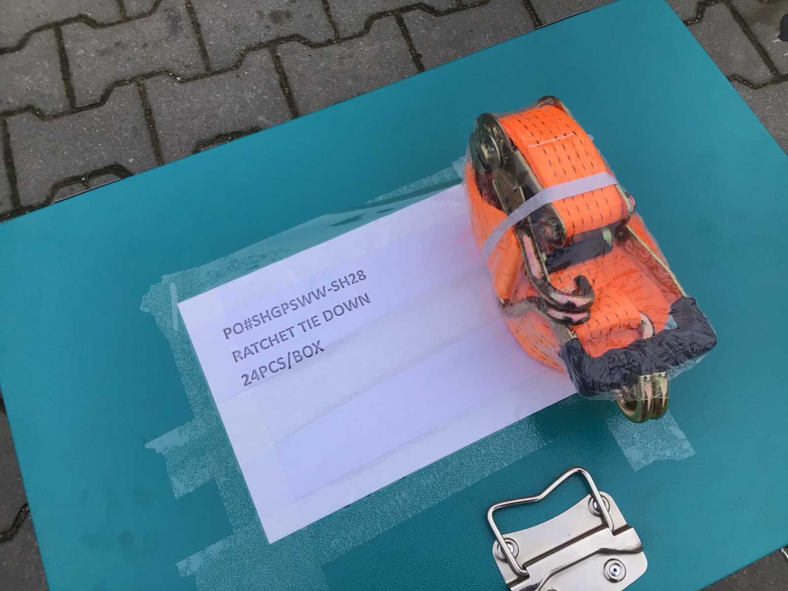 Metalen kist L700mm. X W500mm. X H310mm; inhoud 16 stuks 5 ton; 8 stuks 3 ton; lengte spanbanden 8,23 mtr.; materiaal PES; © ongebruikt. Merk: Easy-Going Type: 3+5 ton Bouwjaar: 2024