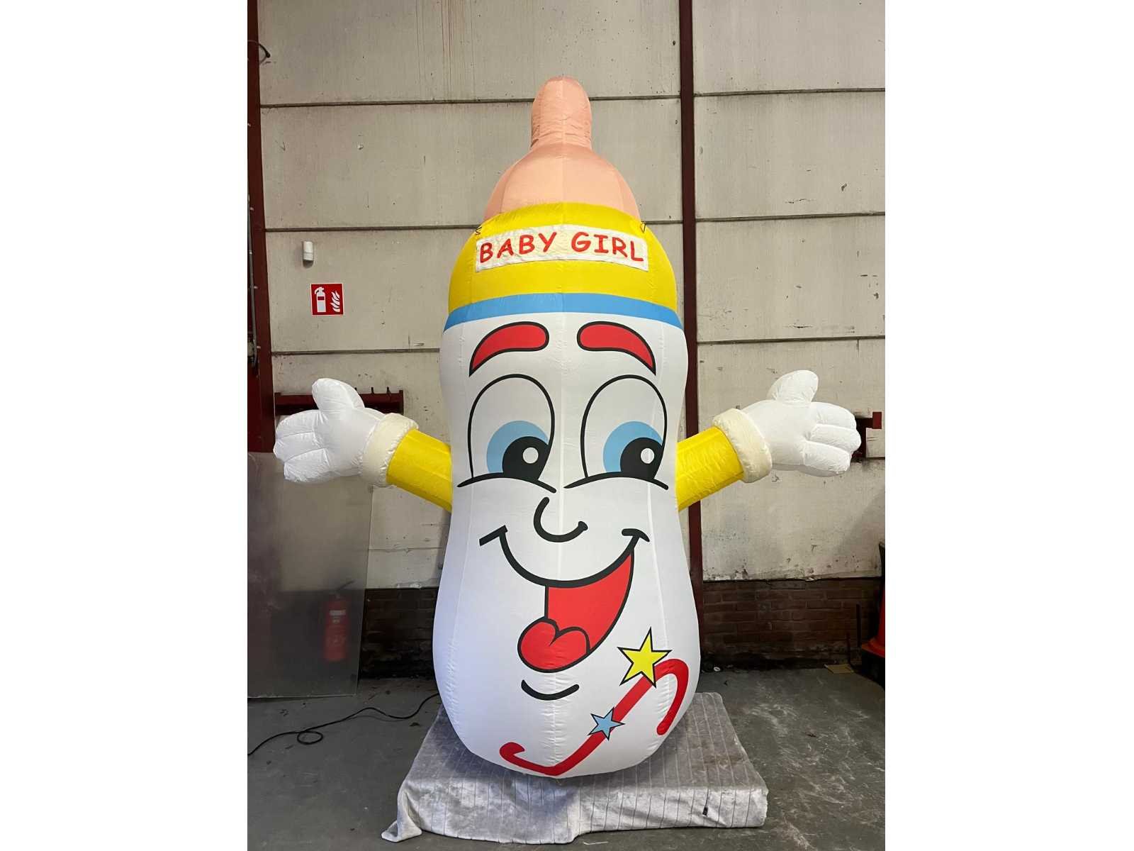 Beschrijving Deze opblaasbare Babyfles is zowel te gebruiken bij de geboorte van een jongen als bij een meisje daar de banner verwisselbaar is. nylon stof 3 meter hoog met ingebouwde blower inclusief transporttas, spanttouwen, haringen in haringzakje en banner “Baby Boy” en “Baby Girl”. Merk: HH Model: Opblaasbare babyfles Gewicht: 7 Hoogte: 3000 Materiaal: Nylon