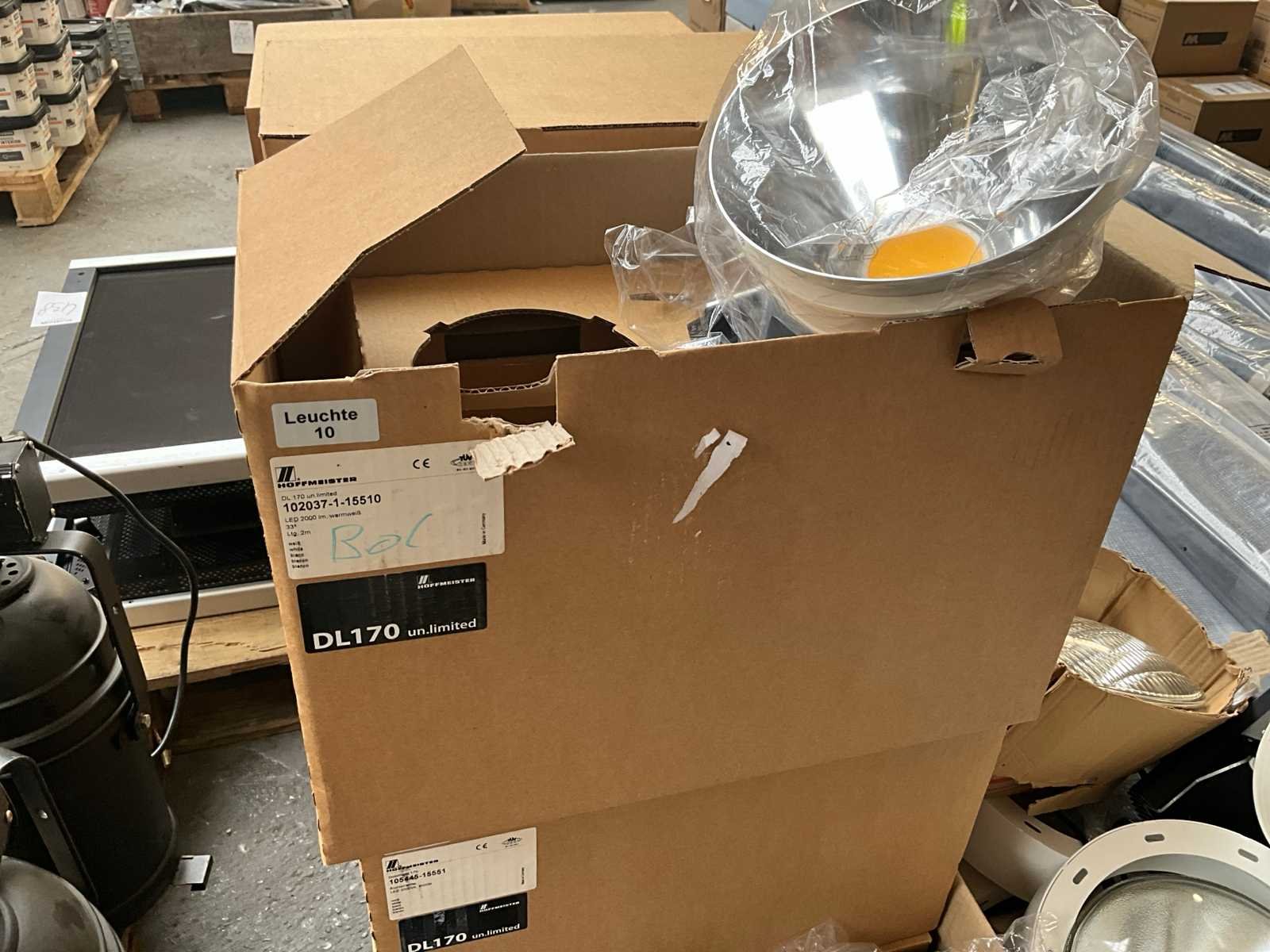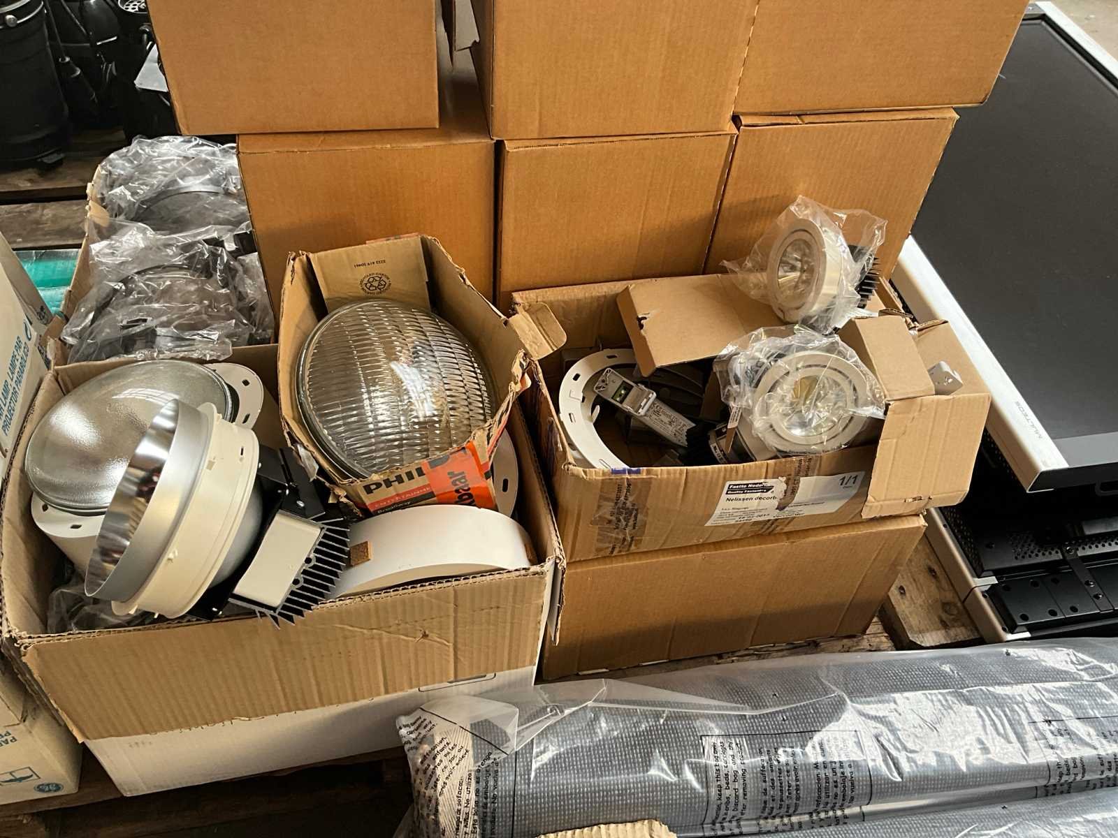 Diverse PAR SPOT verlichting waaronder 10 x 'Hoffmeister' LED spot ongebruikt in doos, circa 10 x Par spot in doos max 500 Watt en divers Merk: Par Model: spots Met lichtbron: true