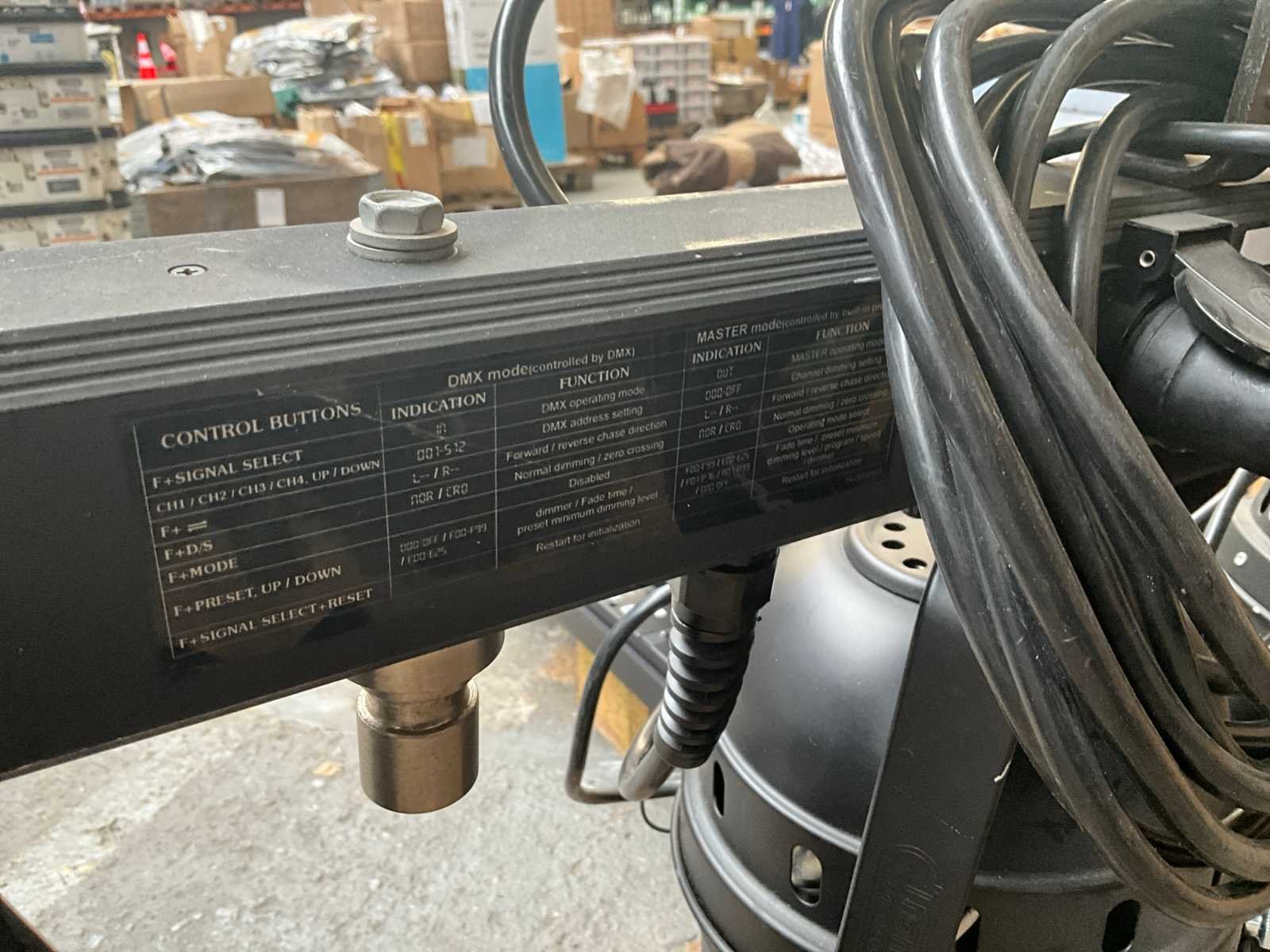 DMX Bar met PAR spots Lengte bar ca. 1300mm Diameter ca 200 mm. Max 500 Watt 230V Voorzien van J-haken Merk: DMX bar Model: met PAR spots Met lichtbron: true Wattage: 250W Lengte: 130cm