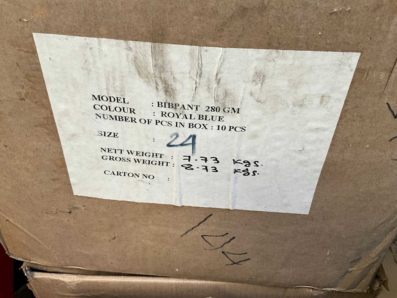 Verpakt in 3 dozen; niet gecontroleerd op maten, aantallen & kleur; Merk: Pangoline Model: Work out basic Product type: Bibpant 280 GM Kleur: blauw