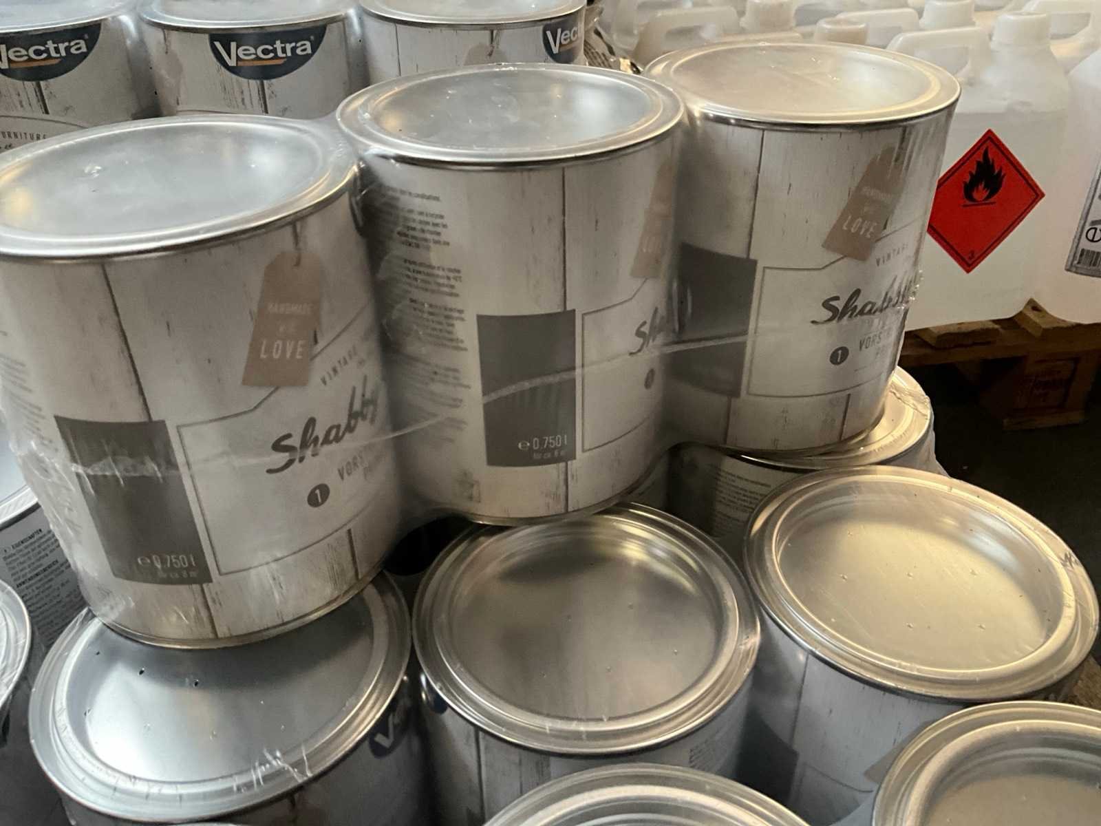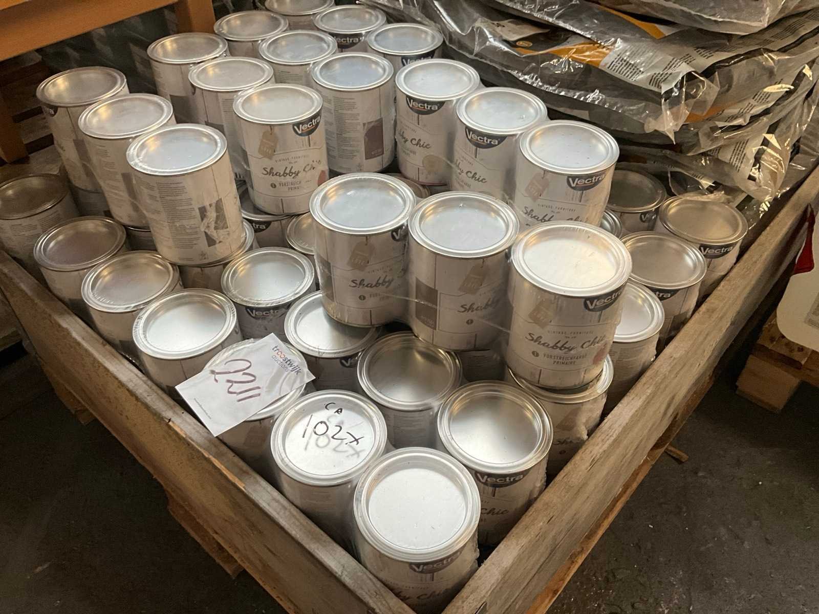 Nieuw met seal; circa 102 blikken a 0,75 liter Merk: Vectra