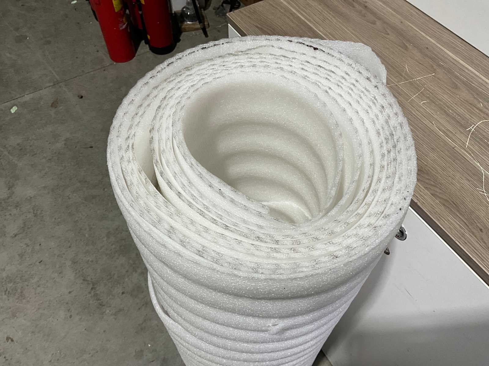 Schuimfolie; verpakkingsmateriaal; waterdicht; isolerend; schokabsoberend; op rol; lengtes ca. 8.00 mtr; breedte ca. 1,20 mtr. Merk: Schuimfolie Type: Beschermfolie Afmeting l: 8000mm Afmeting b: 1200mm
