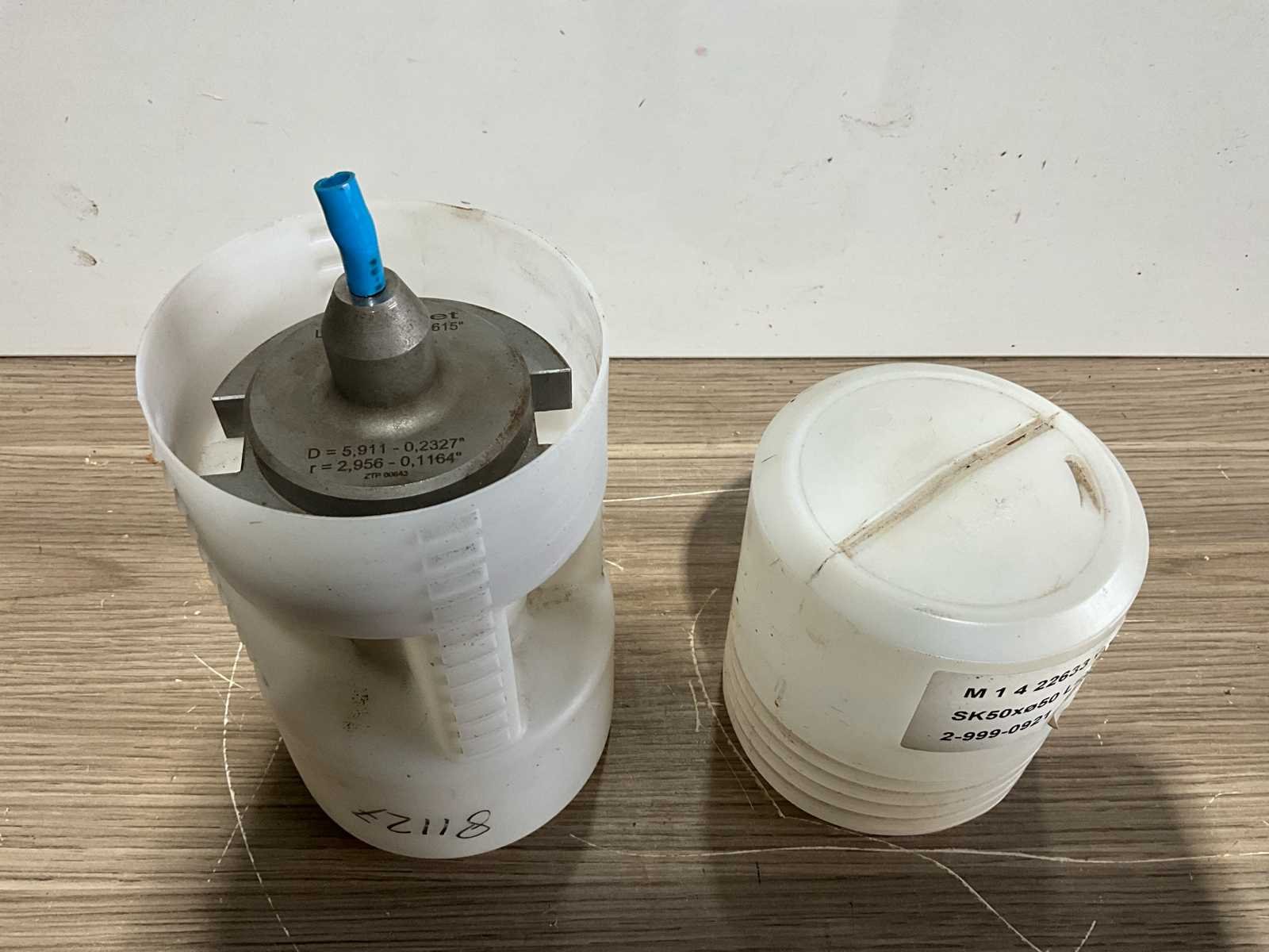 Frees spil; freesmachine; uitwendige maat 95 mm; hoogte 170 mm Merk: Microset Type: SK 50x50 freesspil Serienummer: ZTP 00643
