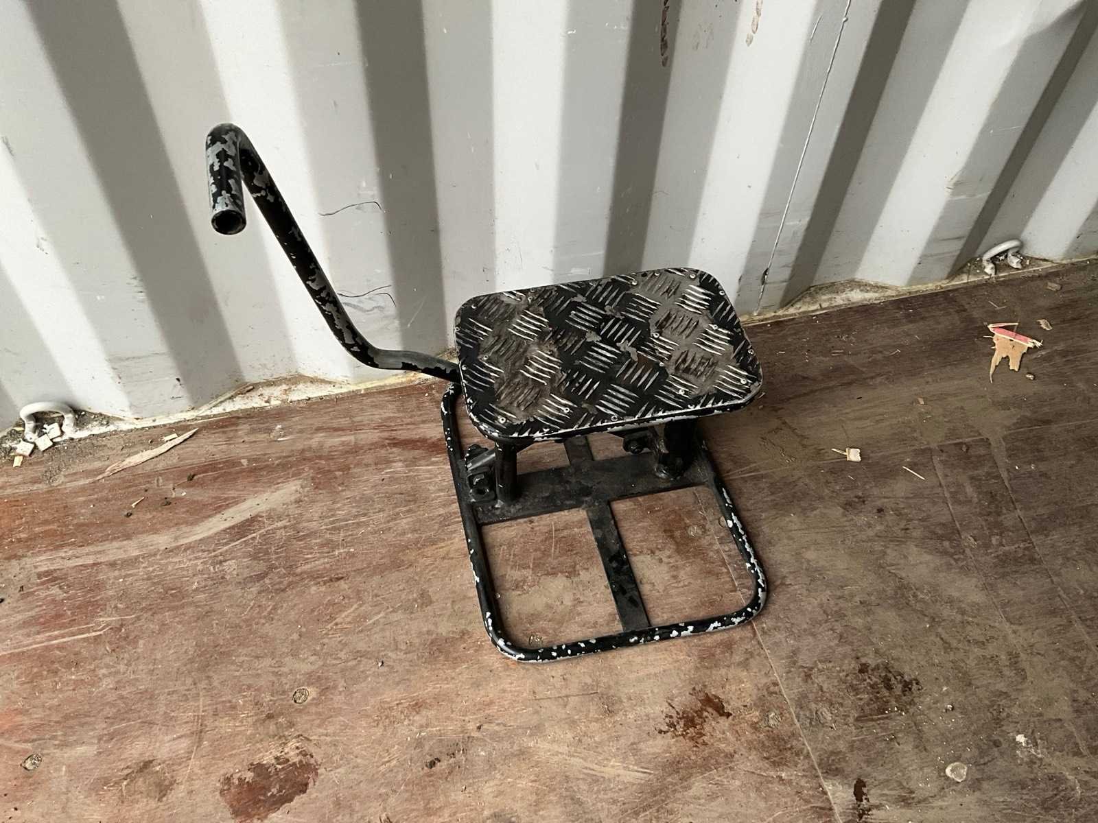 Zwart aluminium frame met een geruit aluminium platform Het beschikt over een hefmechanisme en een handvat om de motor op te tillen Model: Mechanisch Product type: Aluminium