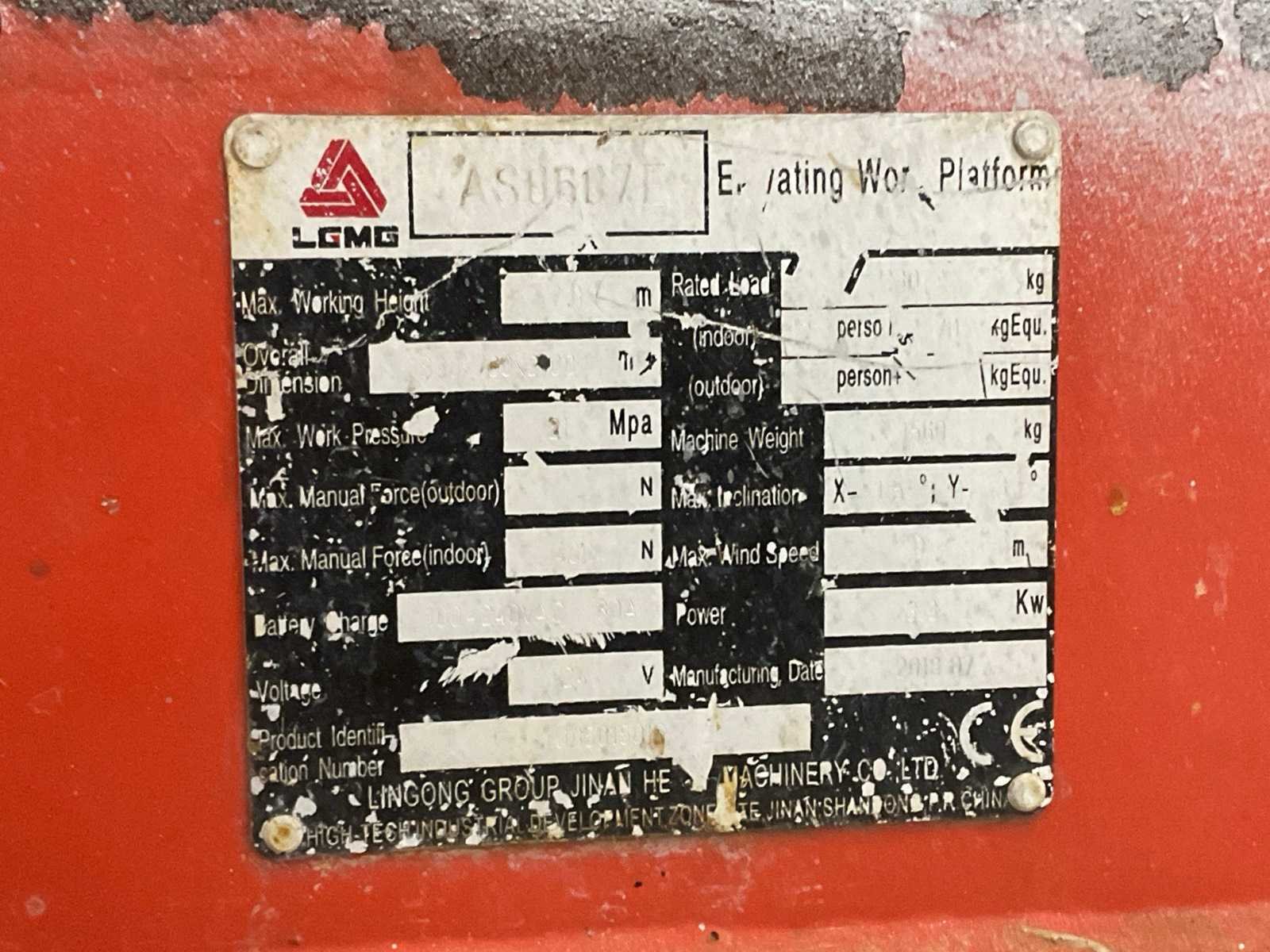 24 volt Merk: LGMG Type: GES 242 Bouwjaar: 2018 Elektrisch: true Motorvermogen (kW): 3.3kW Schaarhoogwerker: true Werkhoogte: 7800mm Platform capaciteit: 230kg Accu lader: true Eigen gewicht: 1560kg Totale afmeting L: 1830mm Totale afmeting Breedte: 760mm Totale afmeting Hoogte: 2100mm