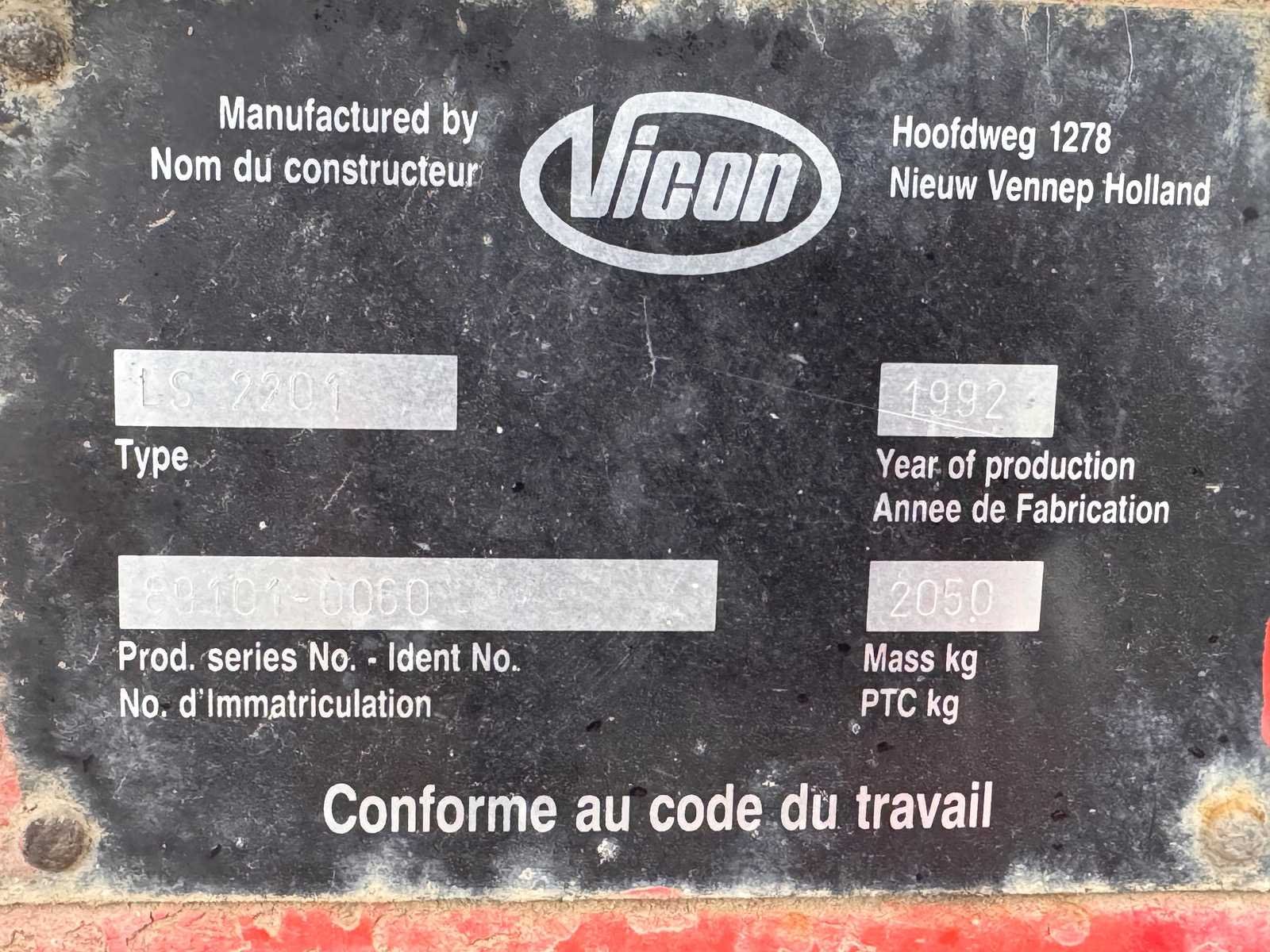 Merk: Vicon Type: LS 2201 Bouwjaar: 1992 Serienummer: 89101-0060 Tankinhoud: 2000l Eigen gewicht: 2050kg