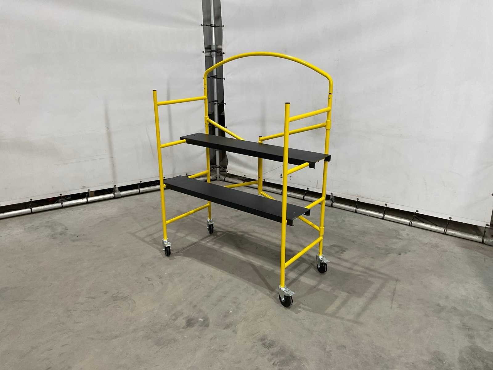 Kan worden gebruikt als werkplatform, schildersplatform of werkbank, doormiddel van de stalen platen kunt u deze rolsteiger ook als werkbank gebruiken, de stalenplaten kunt u op verschillende hoogtes bevestigen, opvouwbaar, max belasting 240 kg, ongebruikt in doos Afmeting l: 1150mm Afmeting b: 530mm Afmeting h: 1548mm Aantal wielen: 4 Eigen gewicht: 25kg