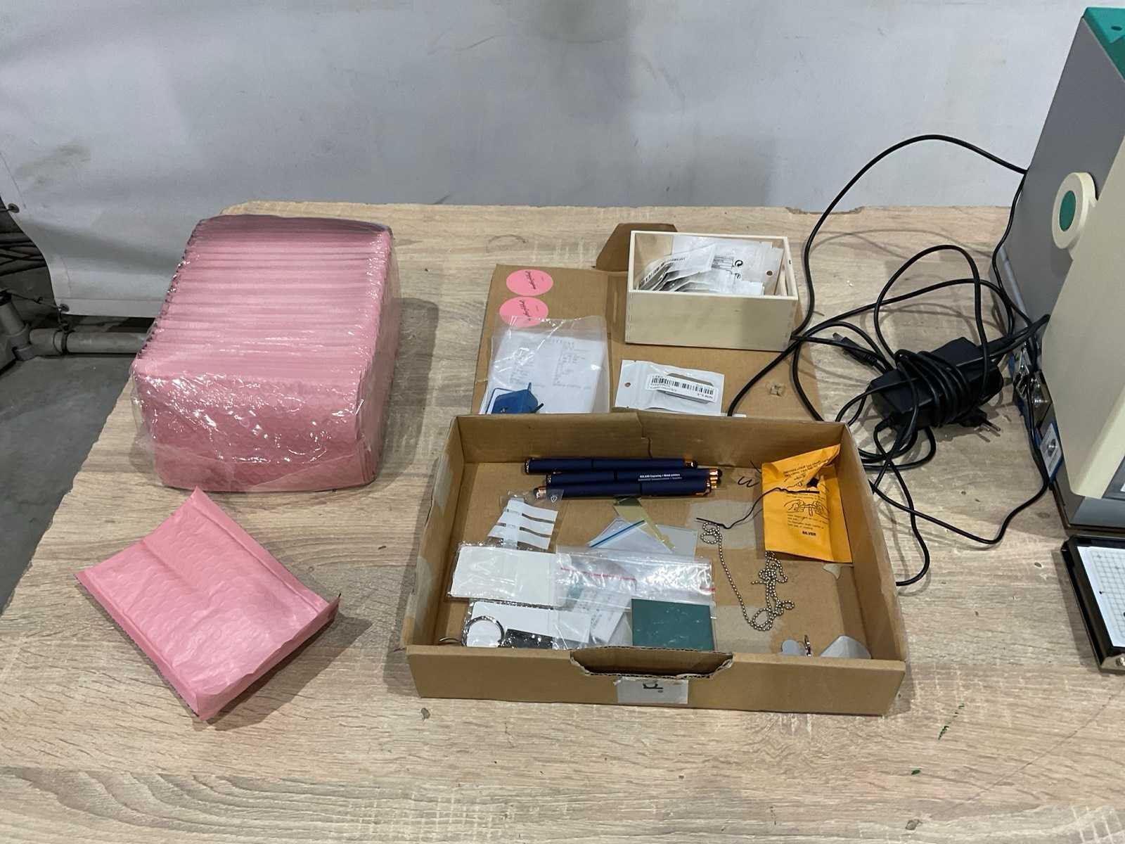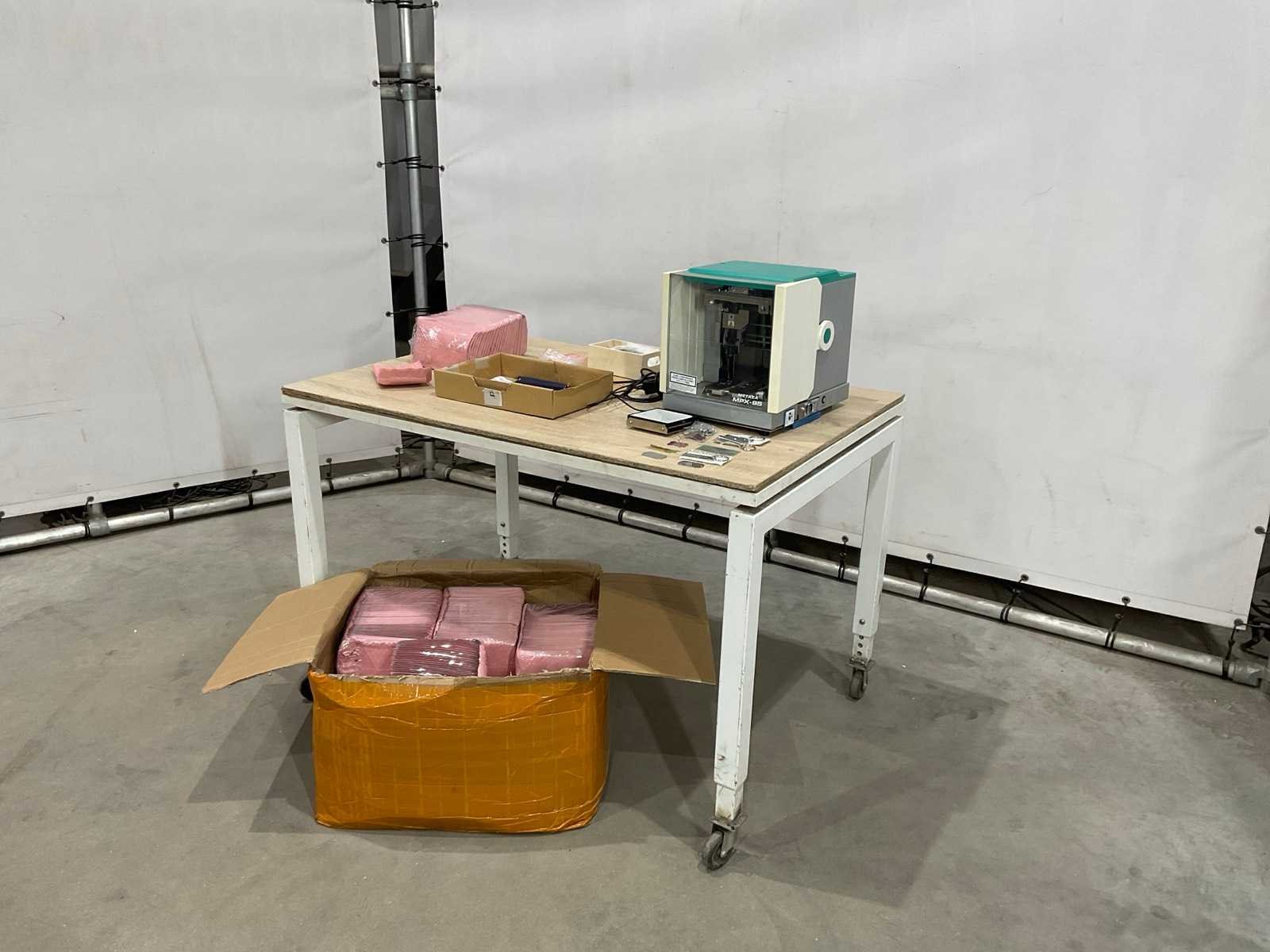 Kavel bevat graveer machine met toebehoren en doos verzend enveloppen; afmetingen zijn in cm Merk: Roland Model: Metaz MPX-95 Lengte: 38 Breedte: 29 Hoogte: 31