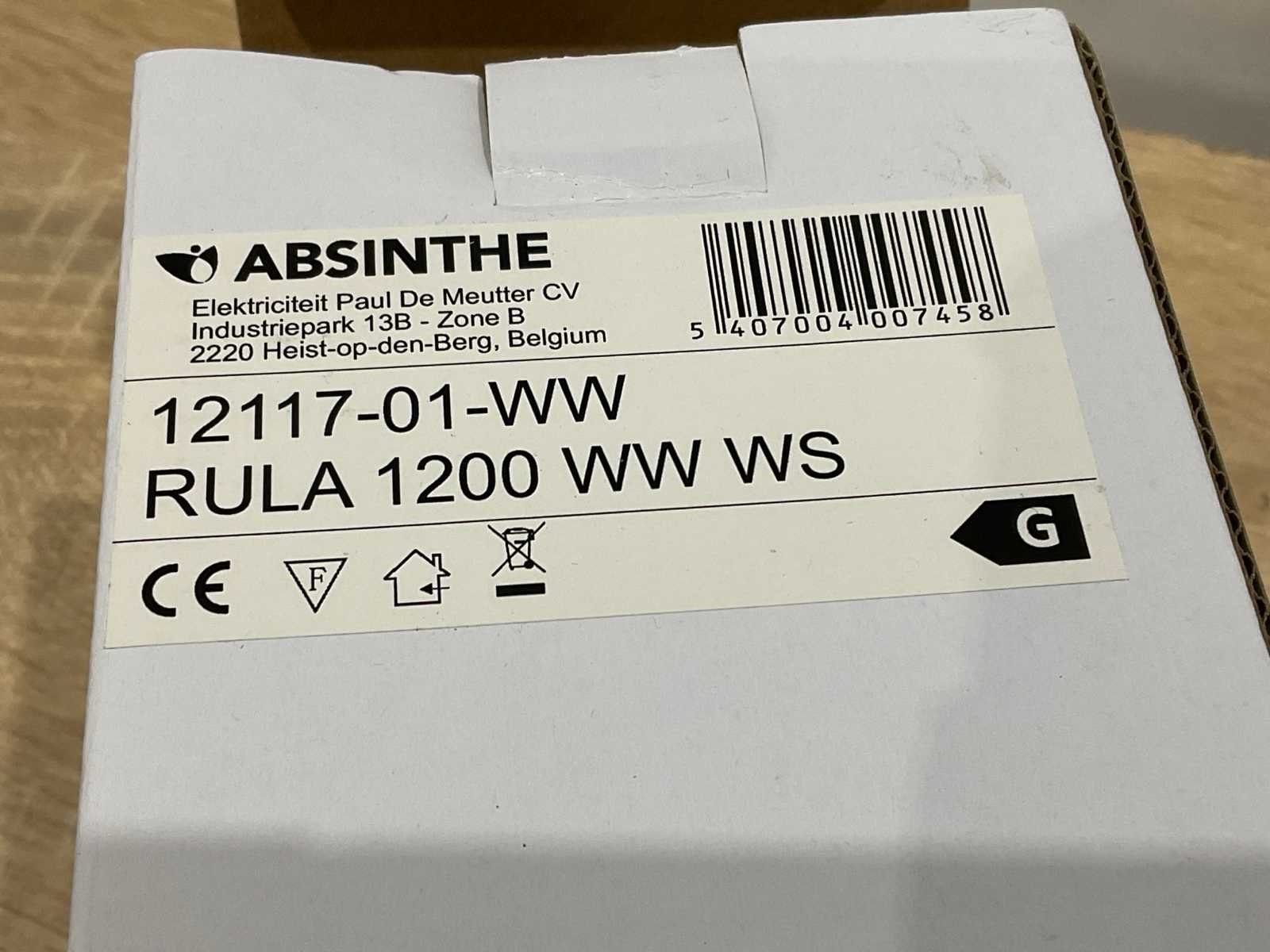 Ongebruikt Merk: Absinthe Model: Rula 1200 Pendant light Product type: warm white Met lichtbron: true Lengte: 120cm Breedte: 2cm Hoogte: 3cm