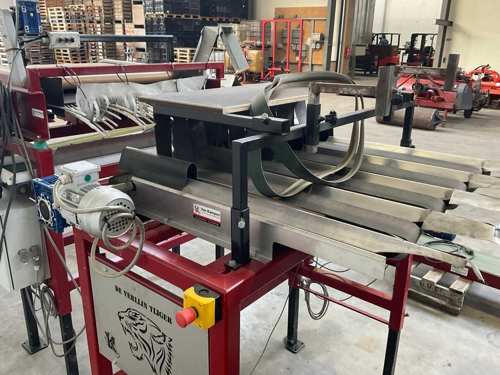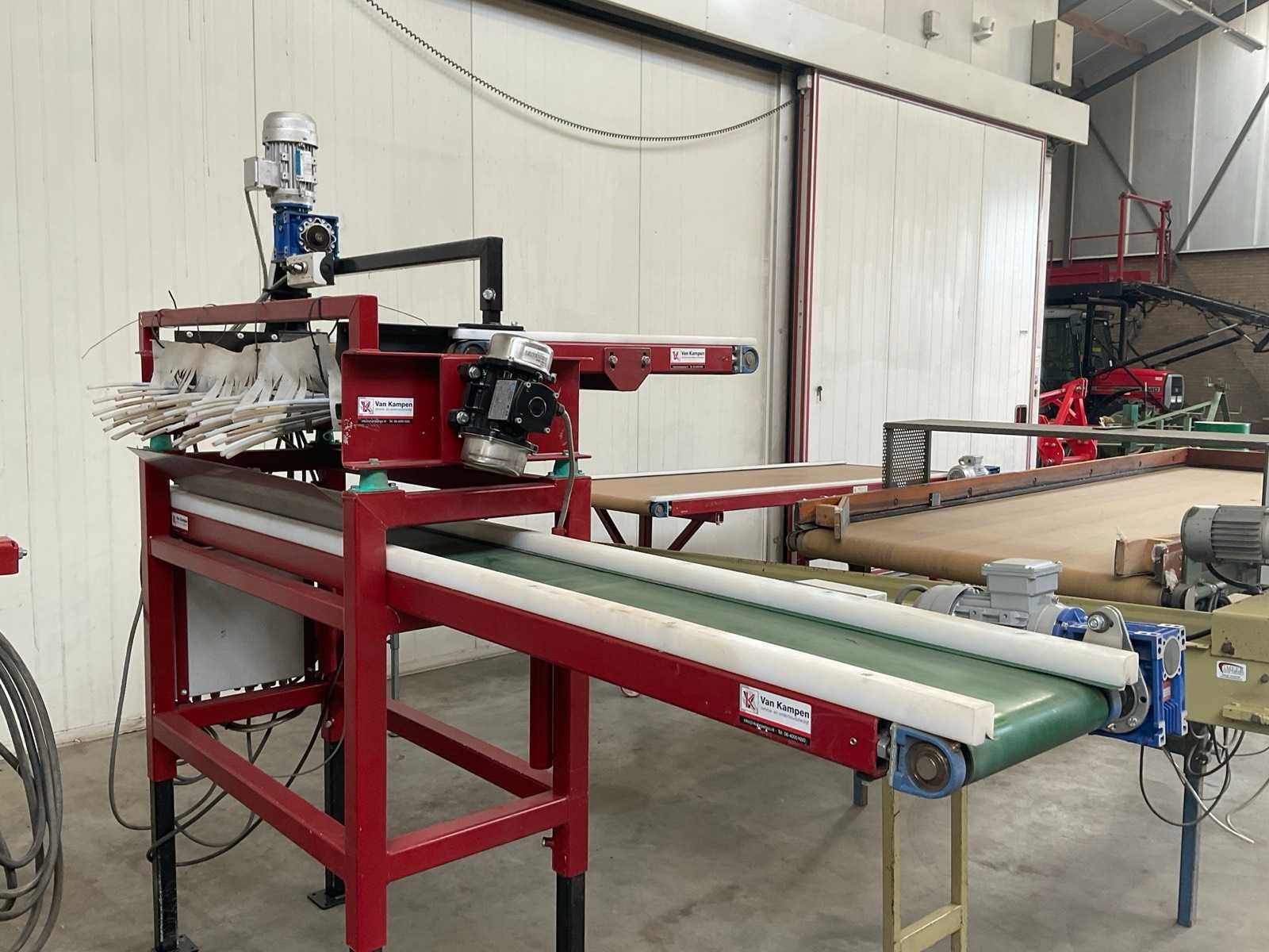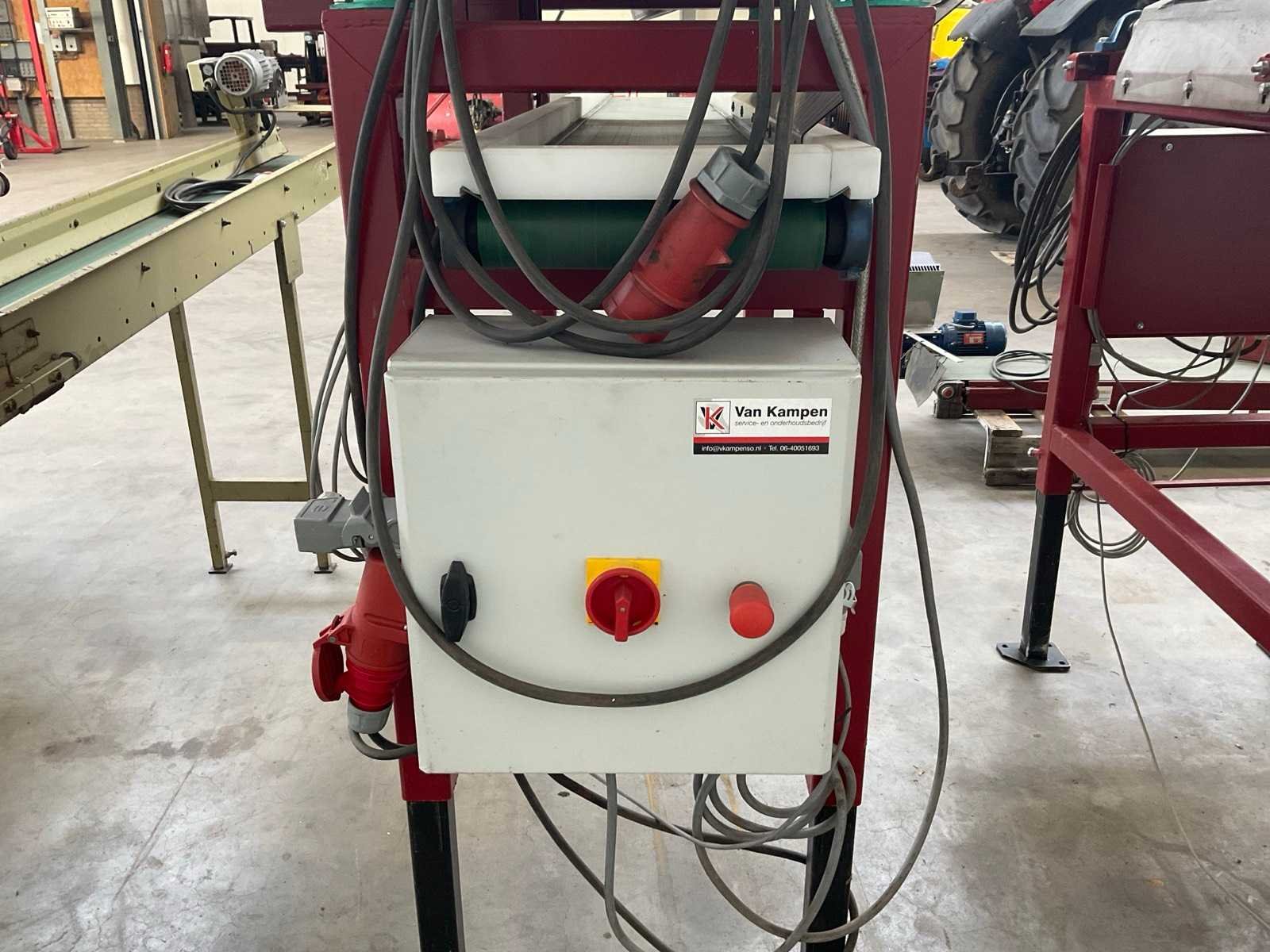 4-lijns; werkbreedte 110 mm; V-bandlengte ca. 950 mm; breedband afm. ca. 875x850 mm, Merk: Van Kampen Totale afmeting L: 1600mm Totale afmeting Breedte: 1250mm Totale afmeting Hoogte: 1800mm