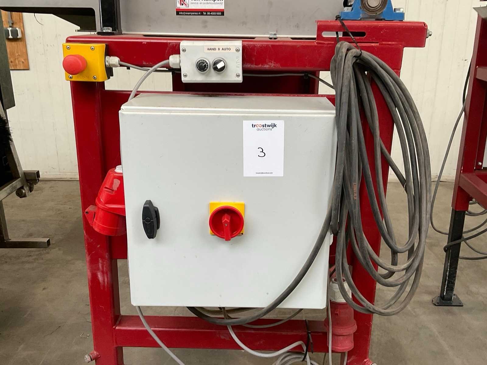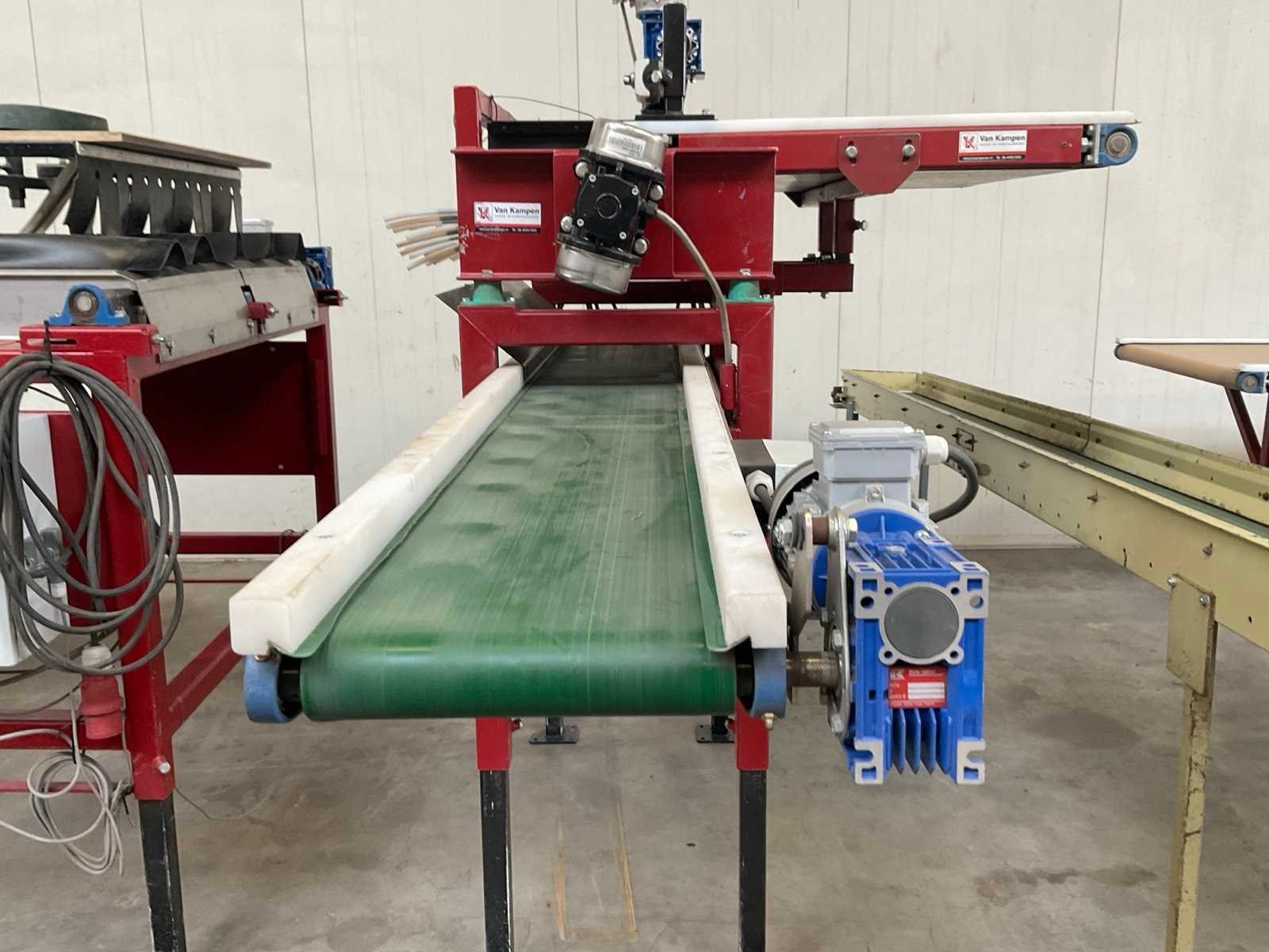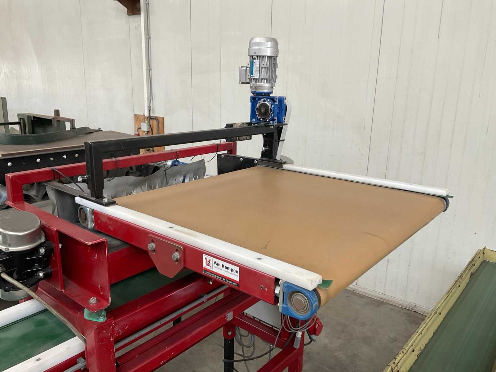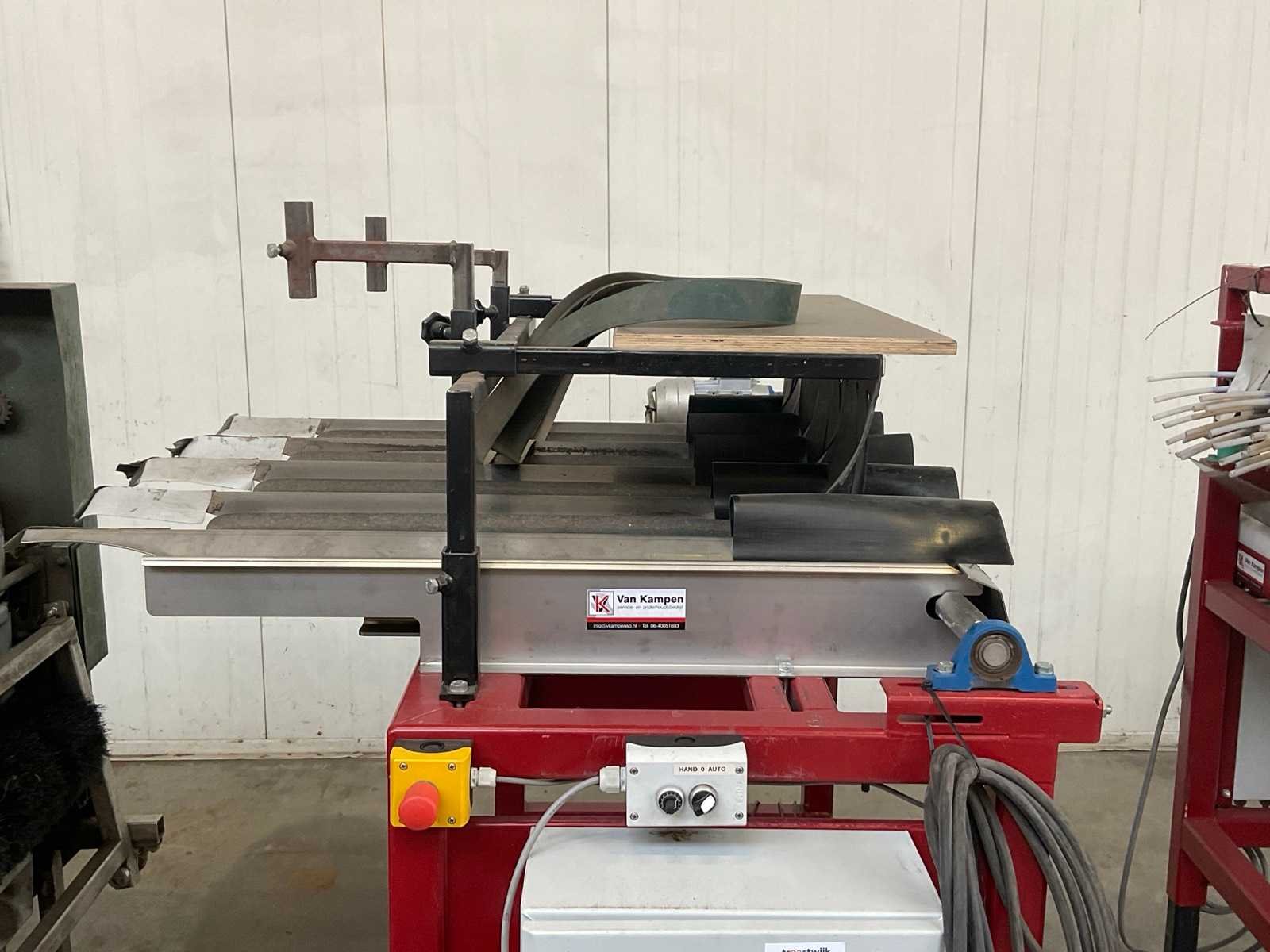 4-lijns; werkbreedte 110 mm; V-bandlengte ca. 950 mm; breedband afm. ca. 875x850 mm, Merk: Van Kampen Totale afmeting L: 1600mm Totale afmeting Breedte: 1250mm Totale afmeting Hoogte: 1800mm