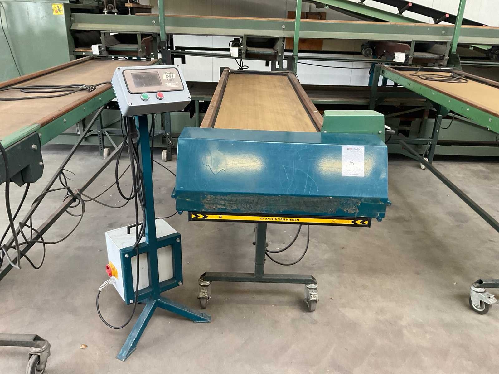 Mobiel; frequentie geregeld; v.v. lichtsluis teller; type AVHTU600; met verlichting; 230V Merk: Antha van Hienen Bandlengte: 2600mm Bandbreedte: 550mm