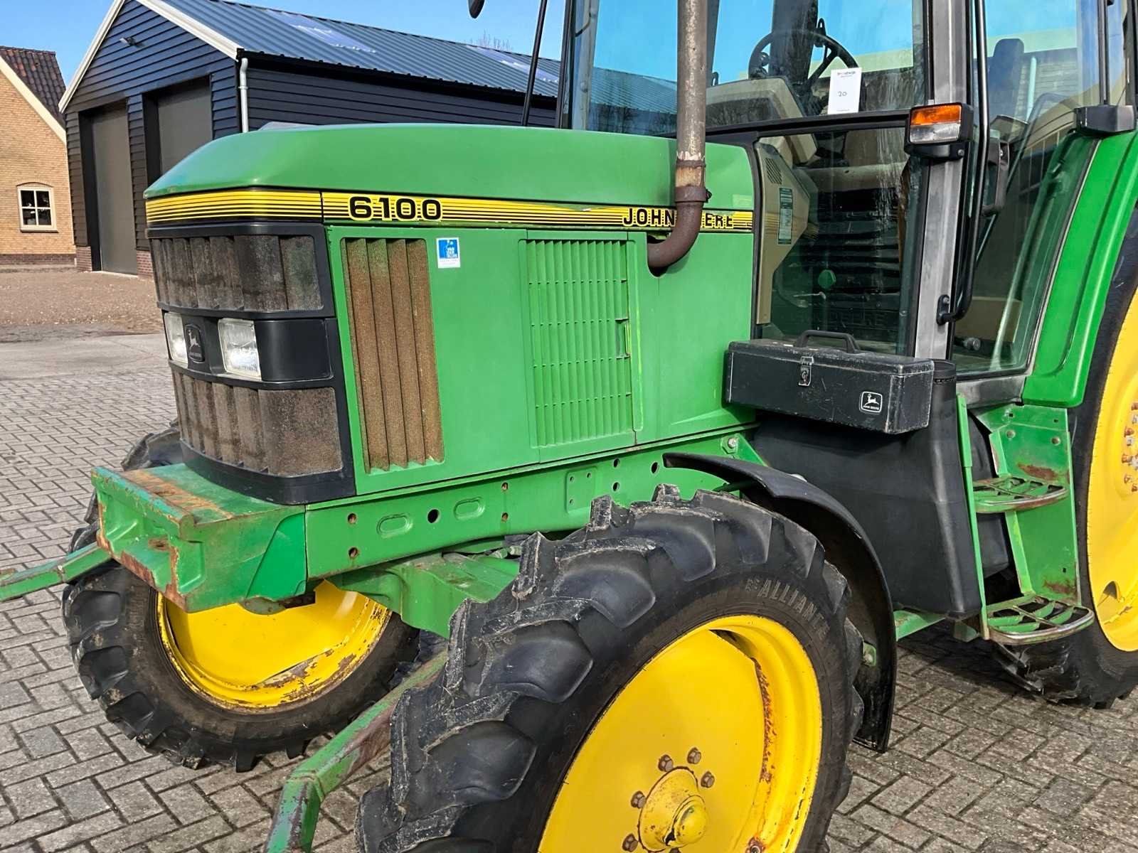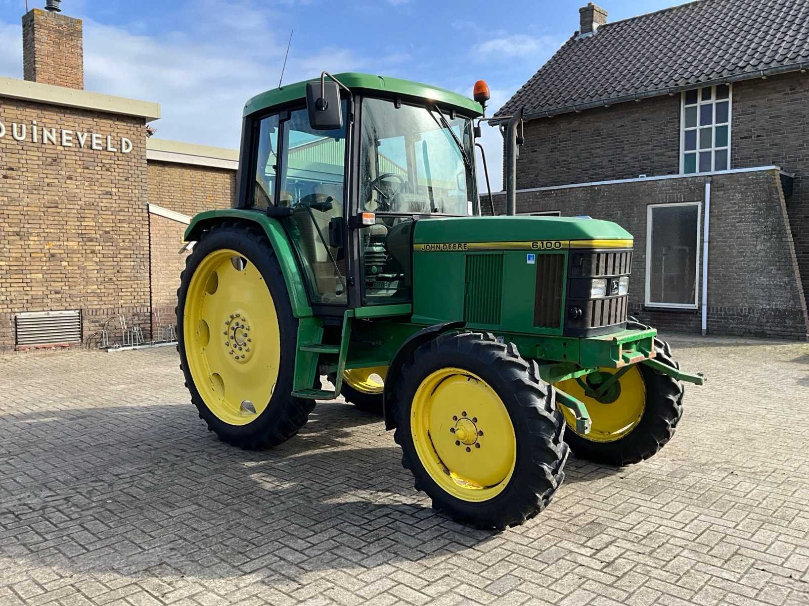 Voorzien van 540/540e/1000 rpm aftakas, airco, hefinrichting, topstang, Merk: John Deere Type: 6100 Bouwjaar: 1996 Serienummer: L06100H172387 Kenteken: TBD-96-T Motorvermogen (kW): 55.1kW Afgelezen urenstand: 9672 Versnellingsbaktype: handgeschakeld Aantal hydraulische ventielen achter: 2 Bandenmaat voor: Alliance 9.5R28 Row Crop Bandenmaat achter: Alliance 270/95R54 Row Crop 350 Cabine: true Totale afmeting L: 4000mm Totale afmeting Breedte: 1900mm Datum eerste toelating: 1996-06-30