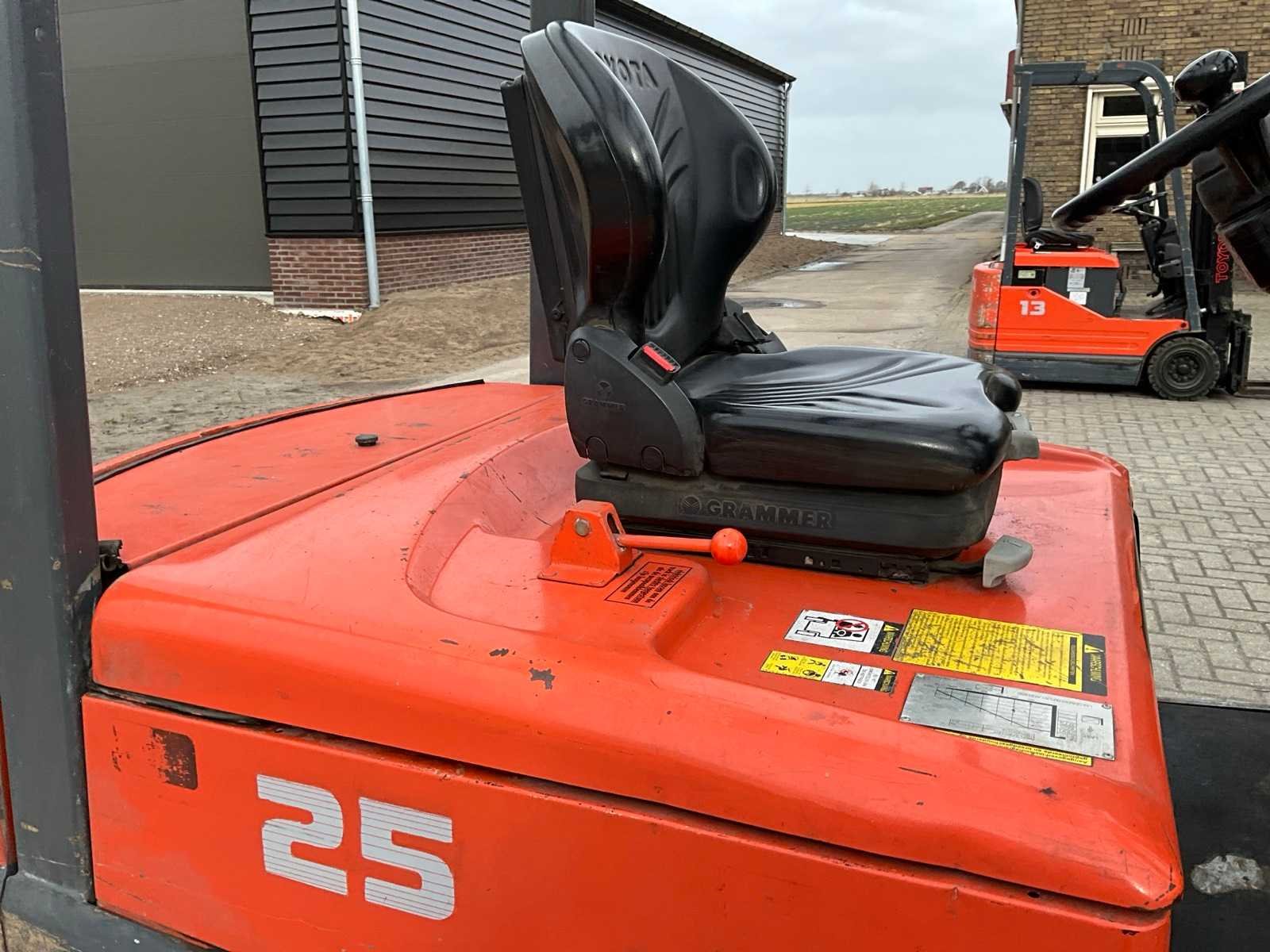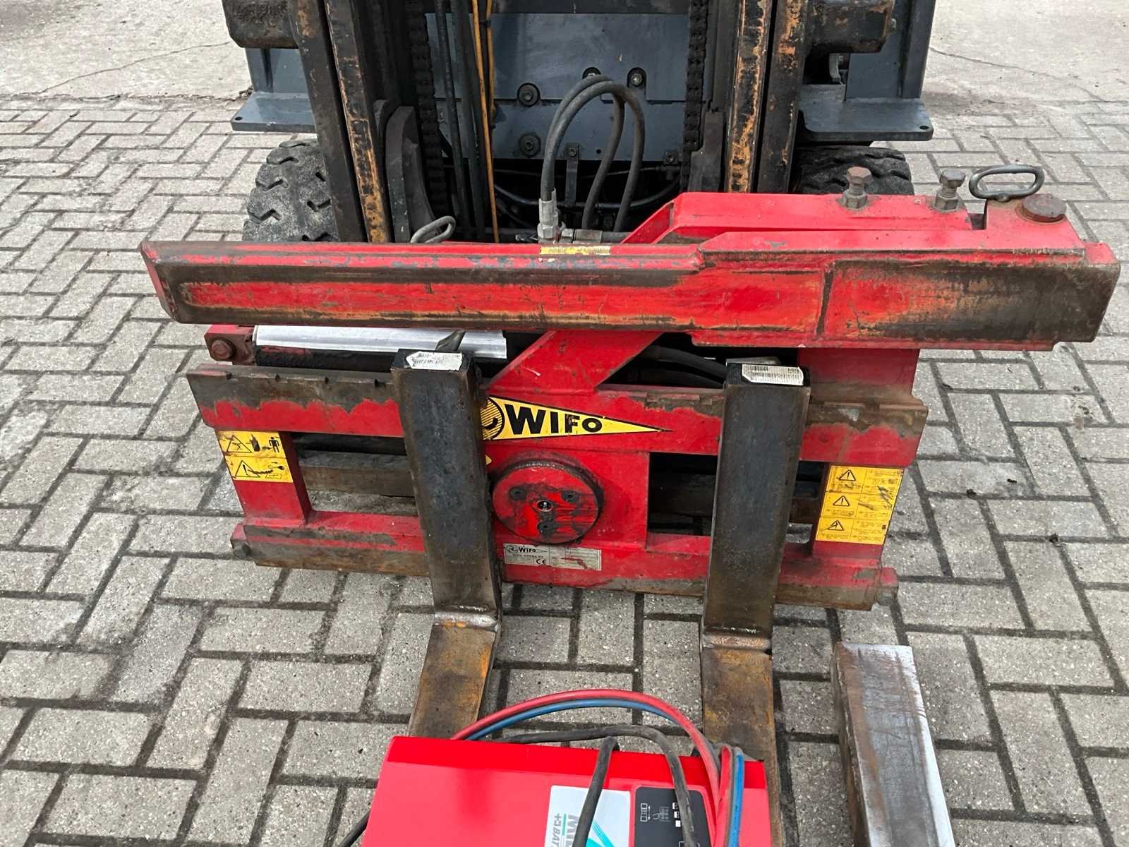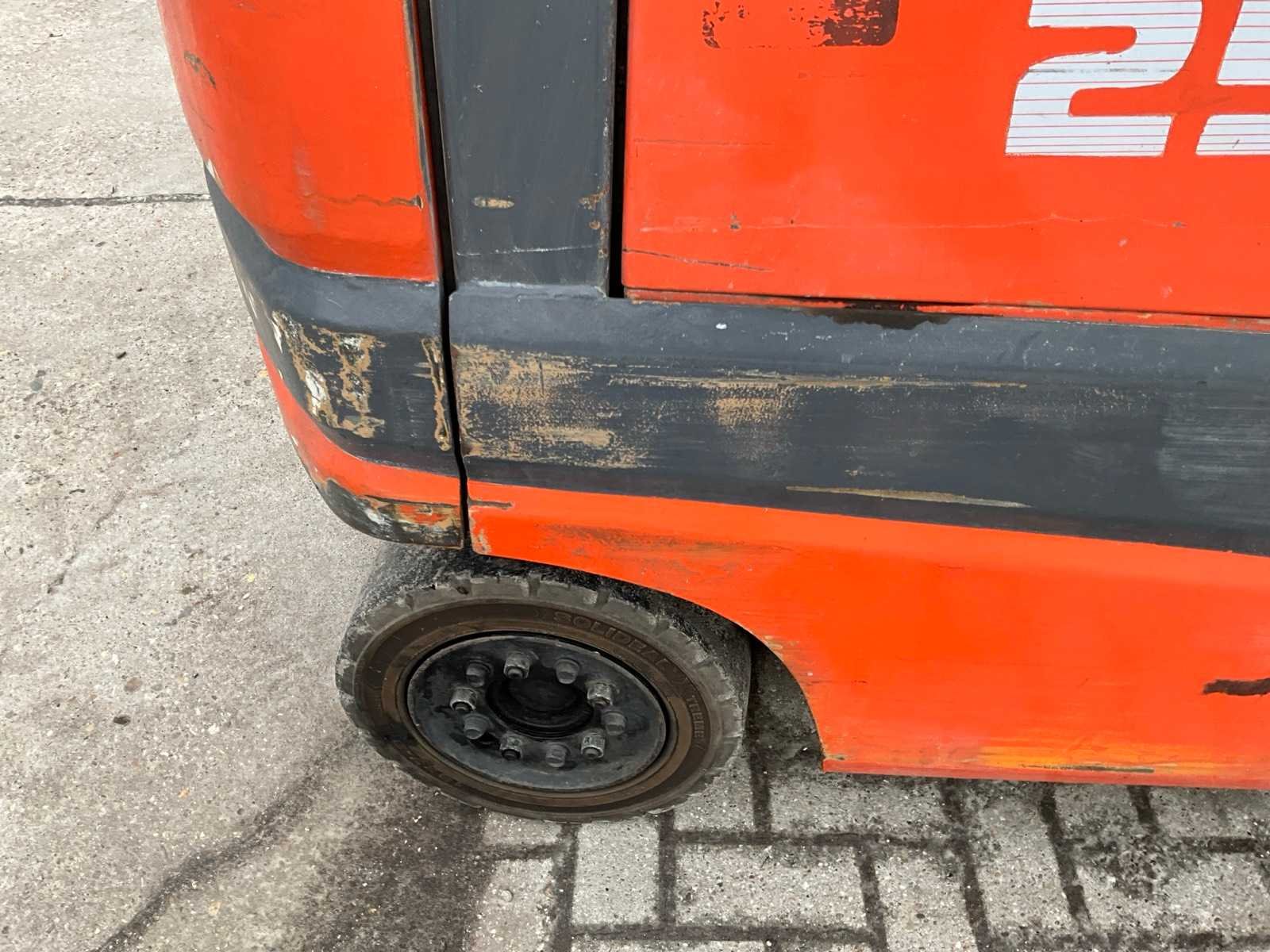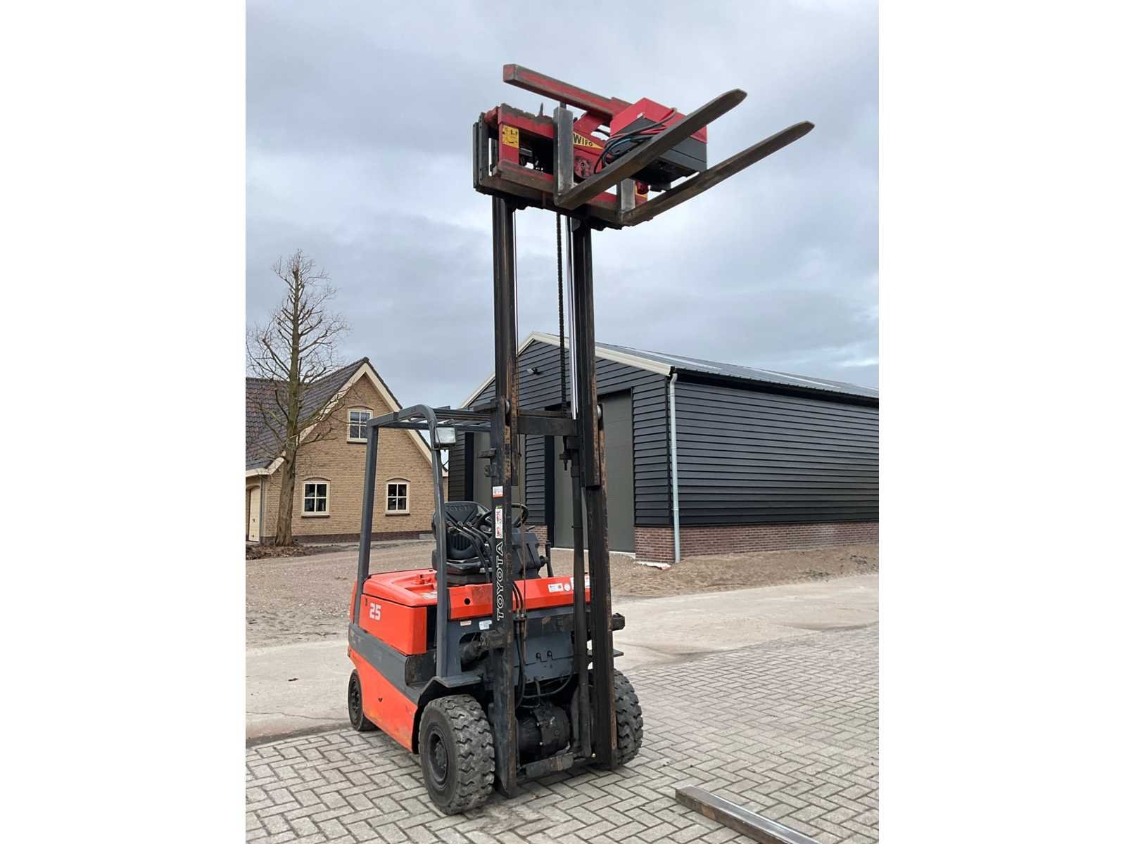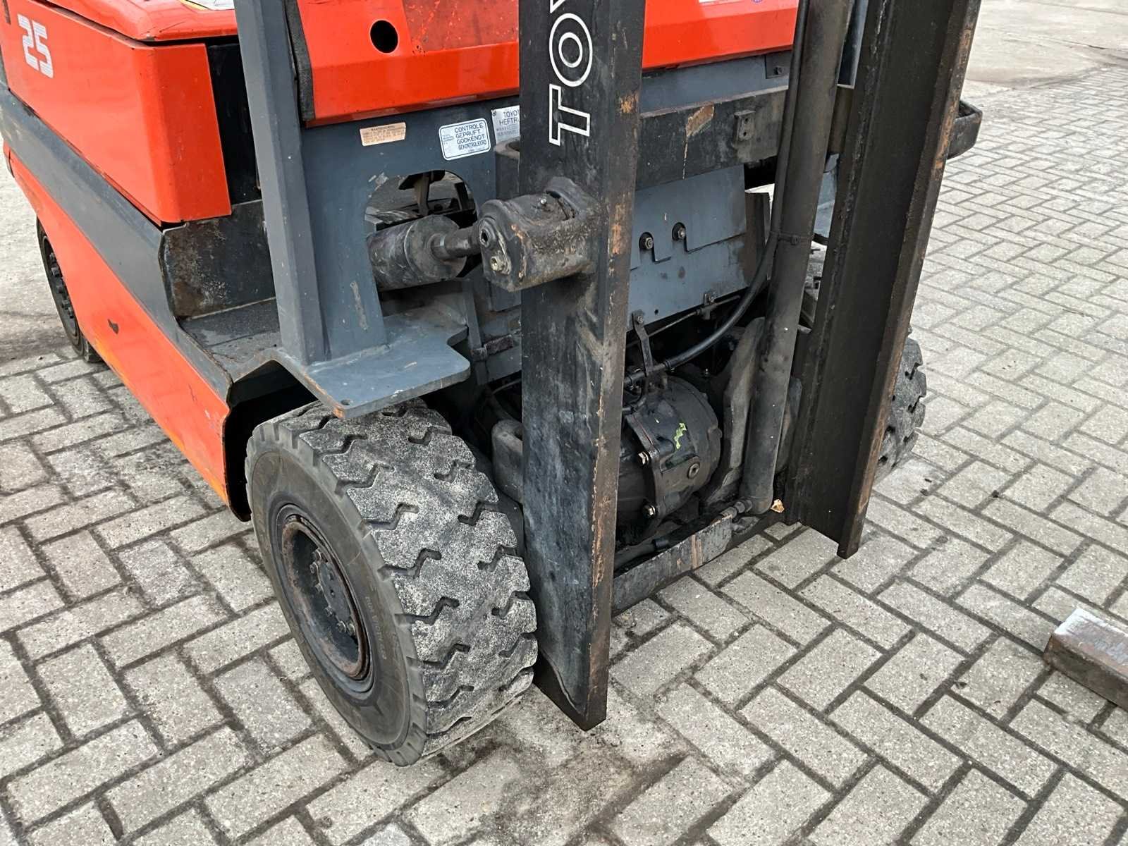 Voorzien van WIFO roterend vorkenbord, Merk: Toyota Type: FBMF25 Bouwjaar: 1998 Serienummer: FBMF25-10958 Brandstof: Elektrisch Mast: Duplex Soort band: Volrubber banden Aantal wielen: 4 Afgelezen urenstand: 15223 Accu lader: true Side-shift: true Roterend vorkenbord: true Duplex mast: true Hefvermogen: 2325kg Lepellengte: 1200mm Hefhoogte: 3300mm Vol rubber banden: true Minimale doorrijhoogte: 2160mm Totale afmeting L: 3900mm Totale afmeting Breedte: 1150mm