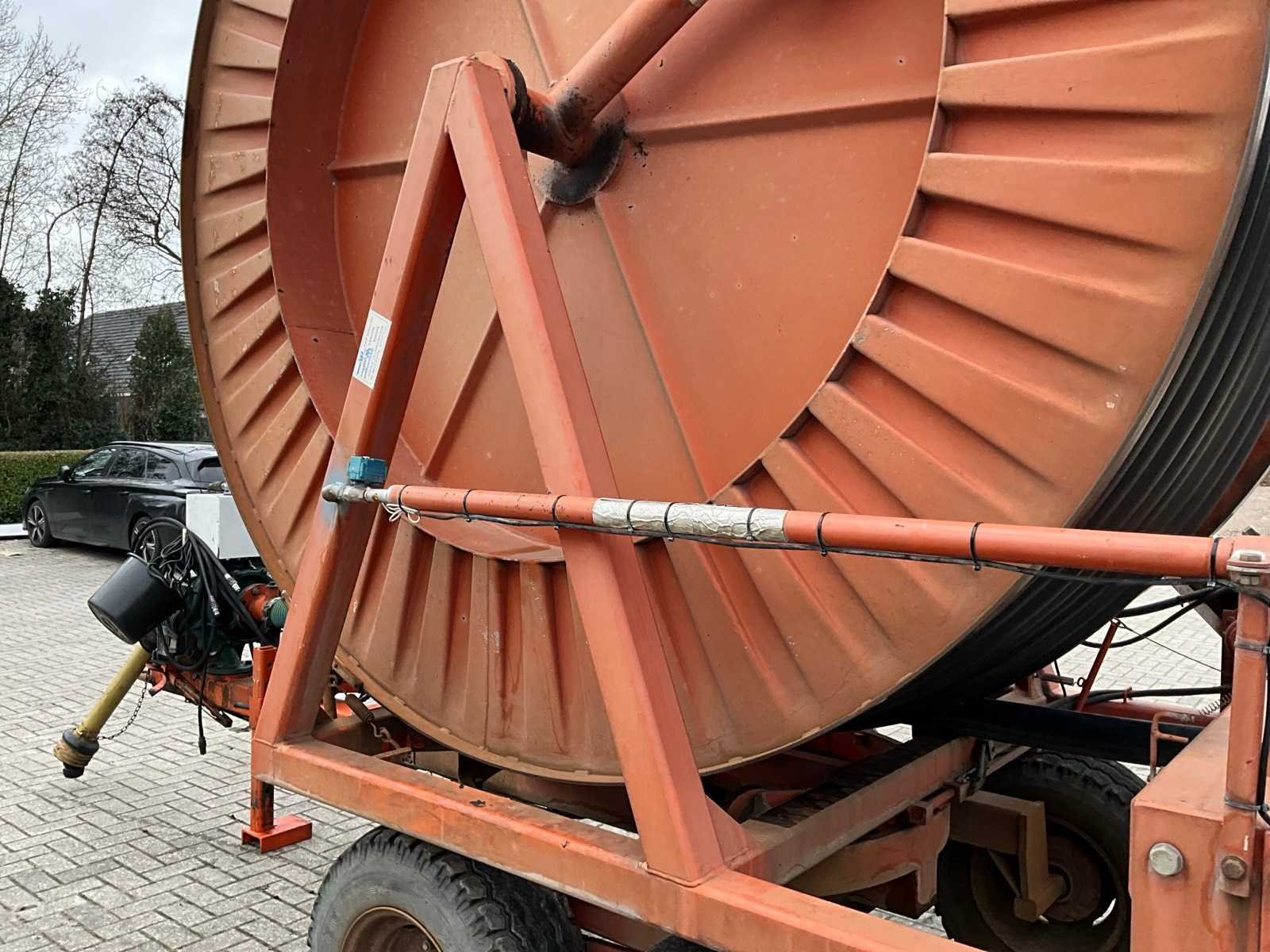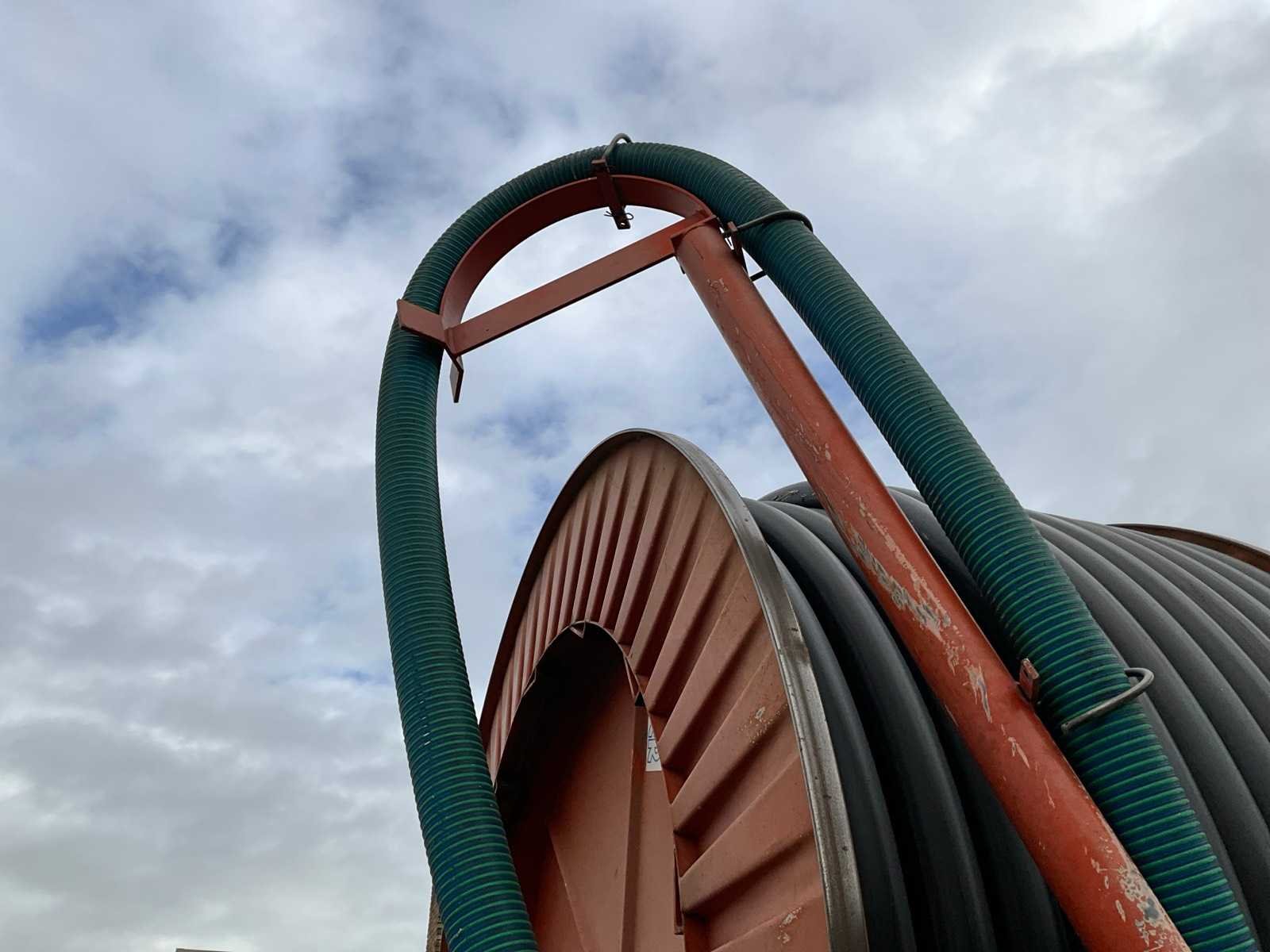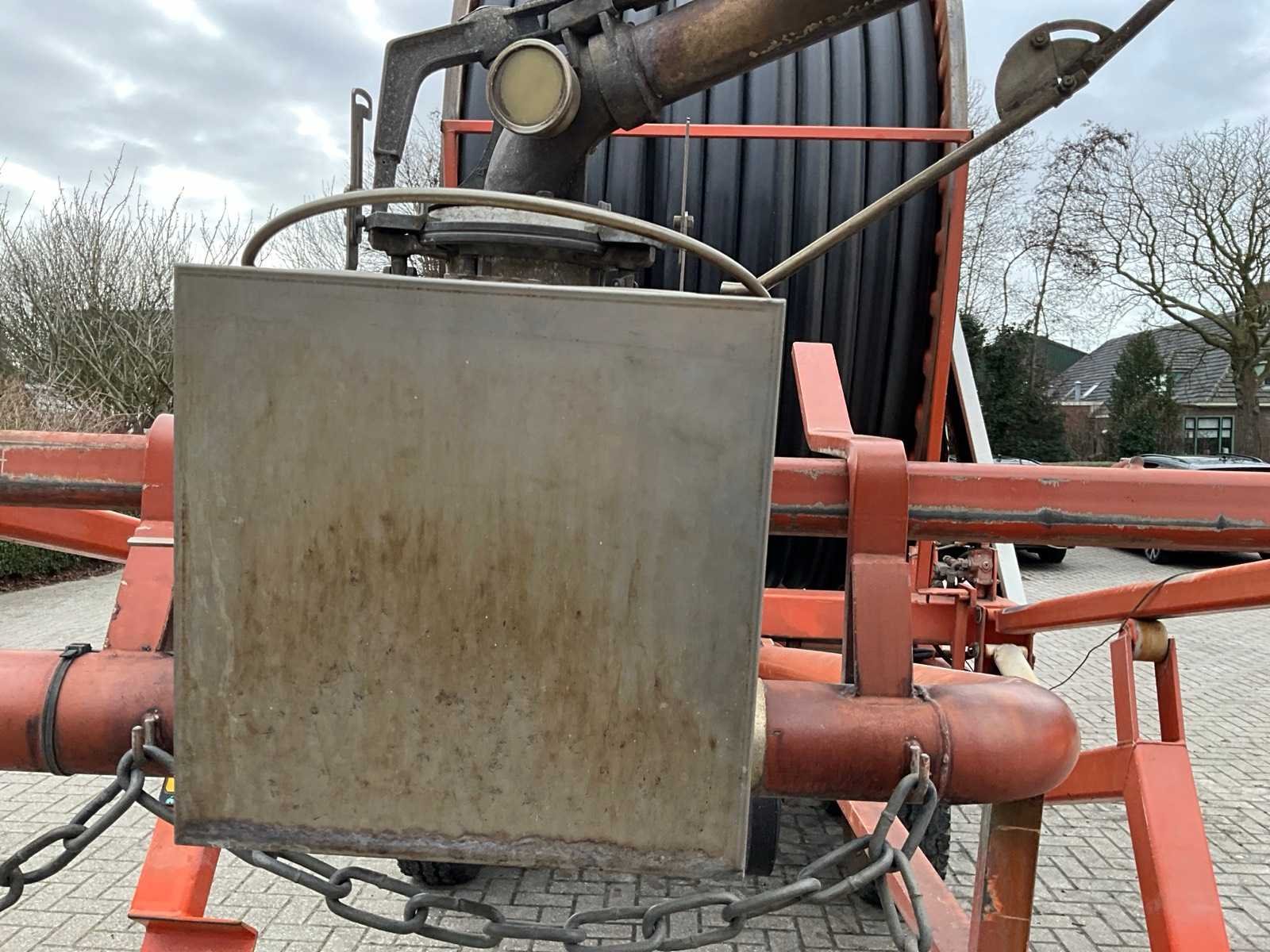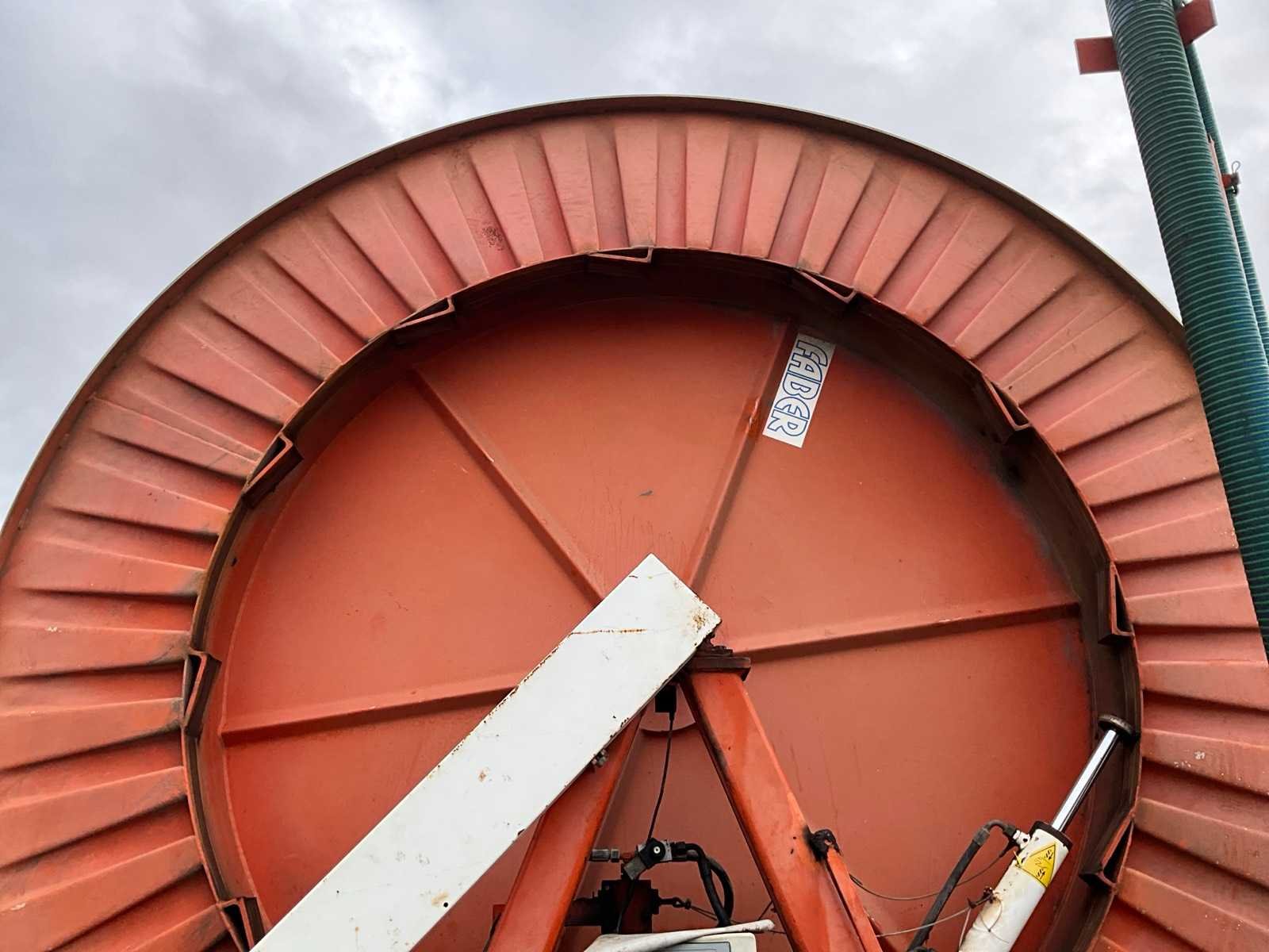 Voorzien van spuitkoppen (0.9/1.0/1.1), hydraulische bedienbare arm met zuigslang + zuigkorf, tandem onderstel, draaikrans, sproeitabel, VT 100 sproeicomputer, intrek snelheid verstelling, Caprari aftakas aangedreven beregeningspomp, kopakker sproeier, Merk: Faber Lengte: 43000cm Type: MPC 100430 Bouwjaar: 1997 Serienummer: 1497 Kenteken: LBL-49-X Diameter circa: 100mm Aftakaspomp: true Steunpoten: true Totale afmeting L: 7000mm Totale afmeting Breedte: 2400mm Totale afmeting Hoogte: 3750mm