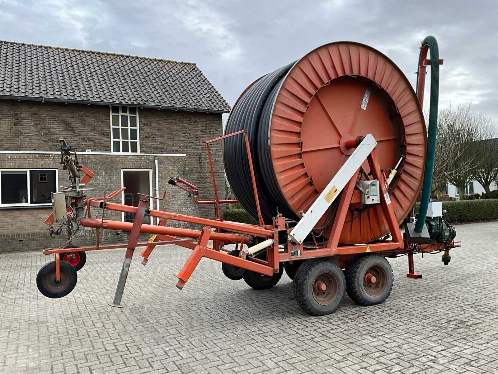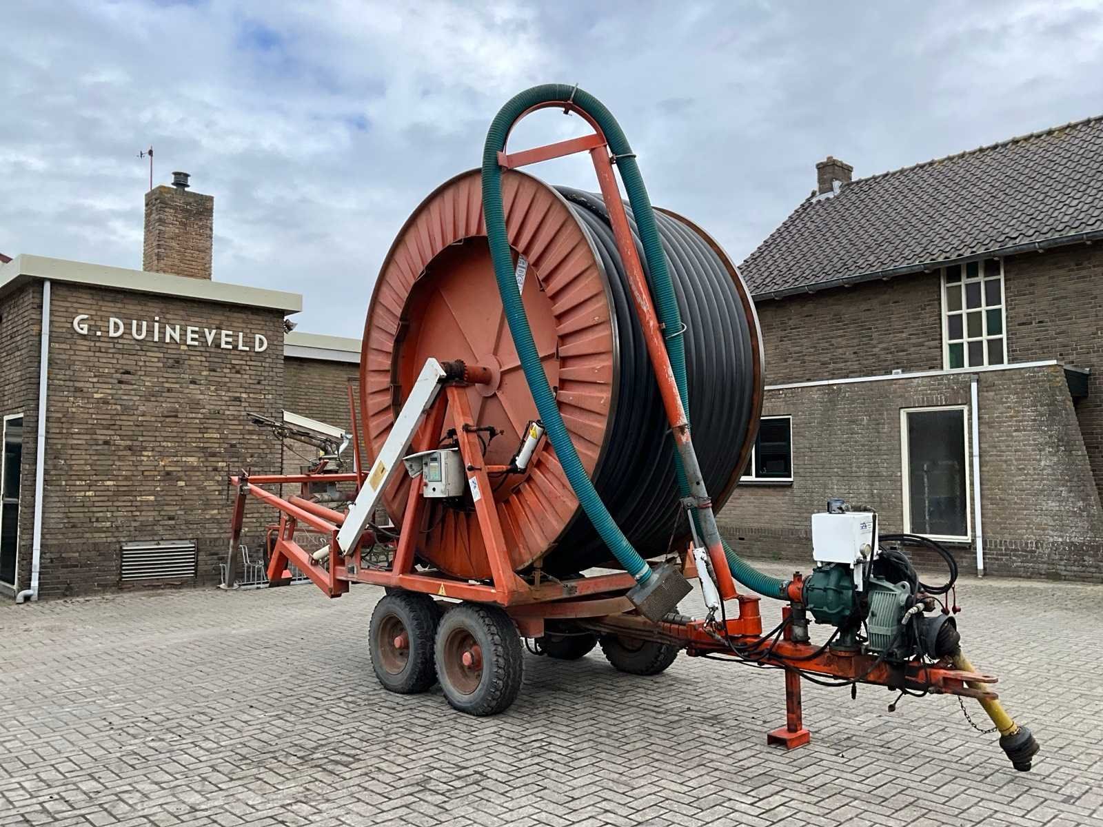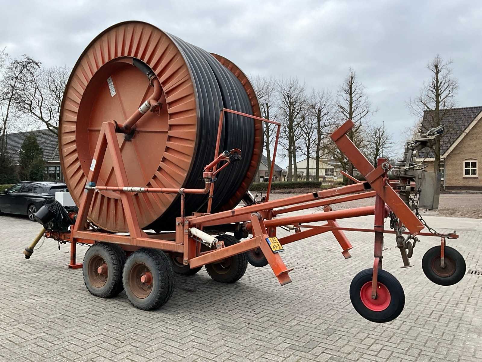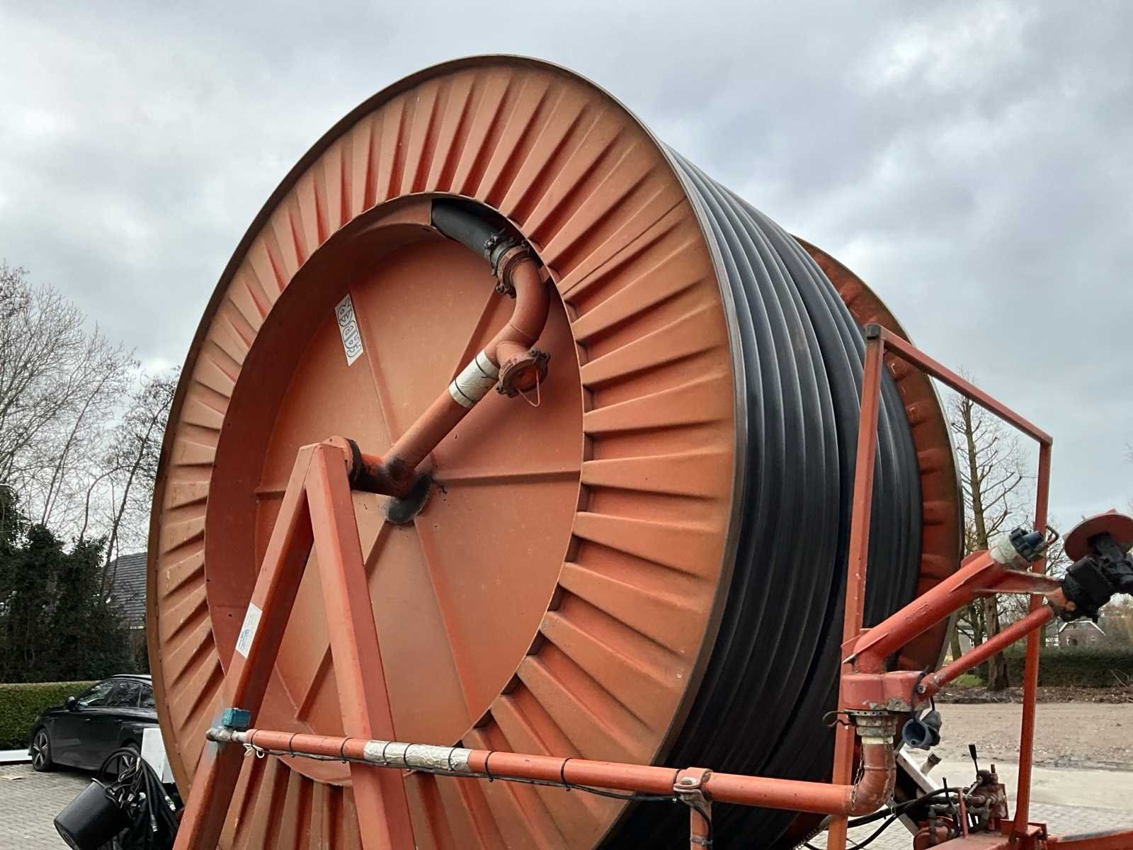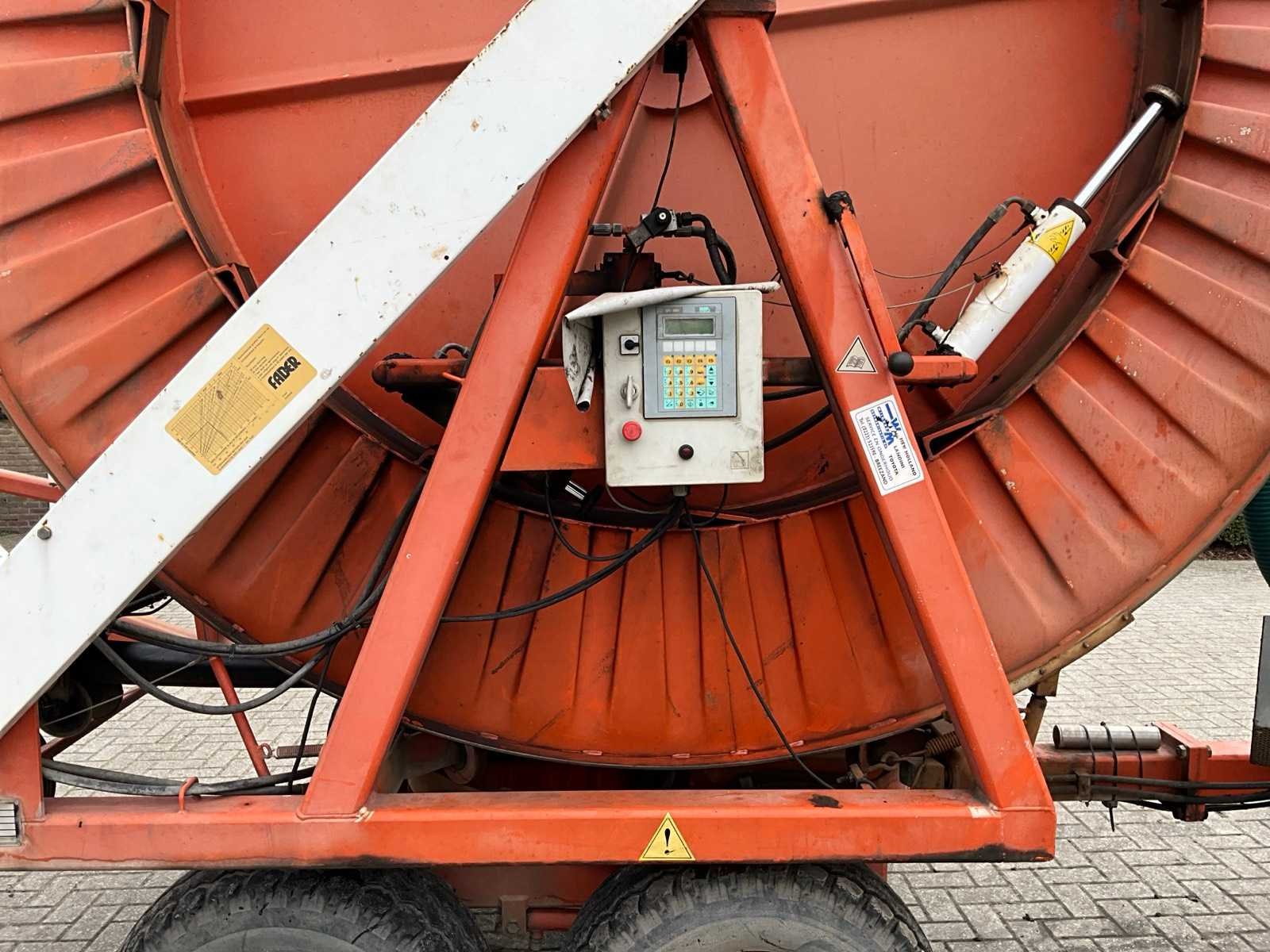 Voorzien van spuitkoppen (0.9/1.0/1.1), hydraulische bedienbare arm met zuigslang + zuigkorf, tandem onderstel, draaikrans, sproeitabel, VT 100 sproeicomputer, intrek snelheid verstelling, Caprari aftakas aangedreven beregeningspomp, kopakker sproeier, Merk: Faber Lengte: 43000cm Type: MPC 100430 Bouwjaar: 1997 Serienummer: 1497 Kenteken: LBL-49-X Diameter circa: 100mm Aftakaspomp: true Steunpoten: true Totale afmeting L: 7000mm Totale afmeting Breedte: 2400mm Totale afmeting Hoogte: 3750mm