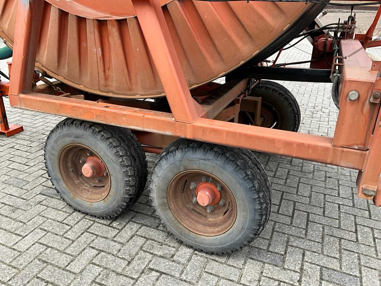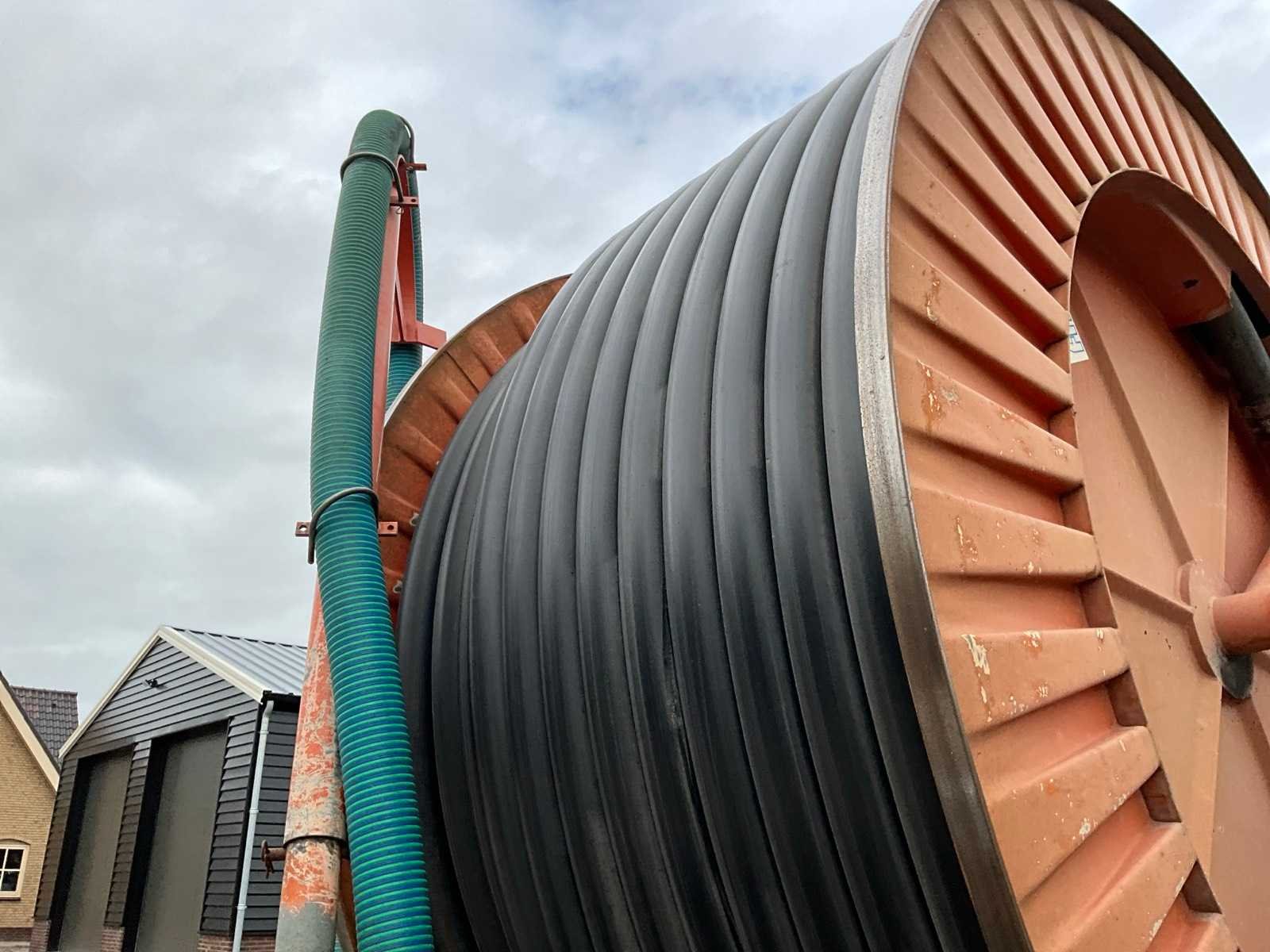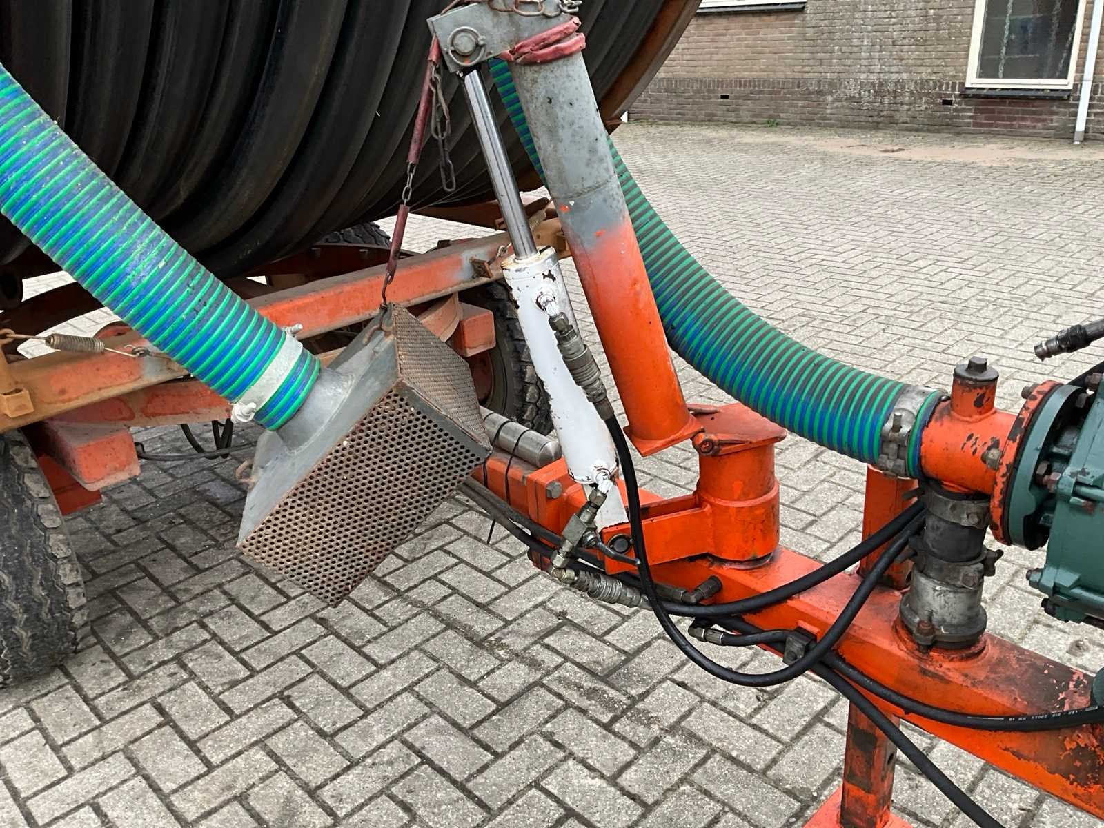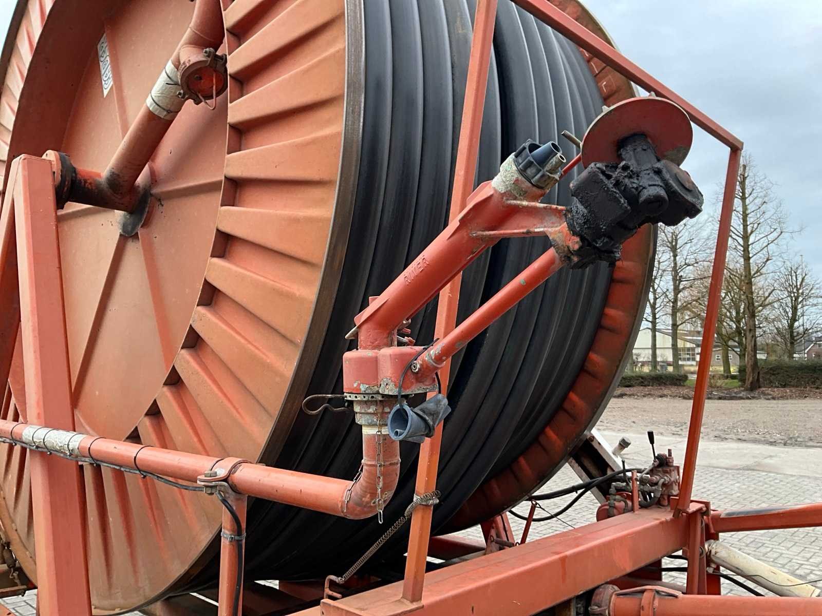 Voorzien van spuitkoppen (0.9/1.0/1.1), hydraulische bedienbare arm met zuigslang + zuigkorf, tandem onderstel, draaikrans, sproeitabel, VT 100 sproeicomputer, intrek snelheid verstelling, Caprari aftakas aangedreven beregeningspomp, kopakker sproeier, Merk: Faber Lengte: 43000cm Type: MPC 100430 Bouwjaar: 1997 Serienummer: 1497 Kenteken: LBL-49-X Diameter circa: 100mm Aftakaspomp: true Steunpoten: true Totale afmeting L: 7000mm Totale afmeting Breedte: 2400mm Totale afmeting Hoogte: 3750mm