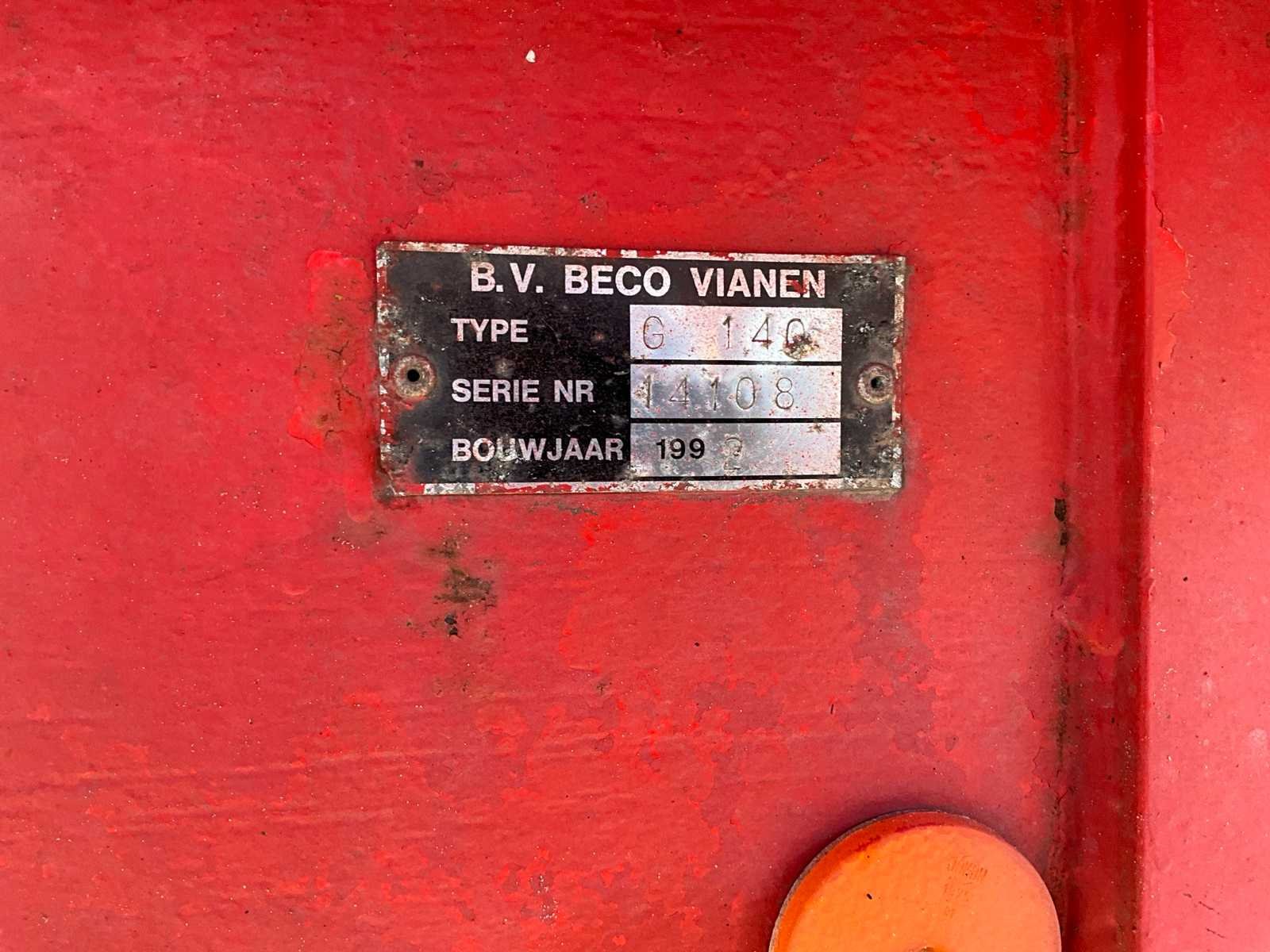 Voorzien van tandem onderstel, hydraulische achterklep, Merk: Beco Type: G140 Bouwjaar: 1992 Serienummer: 14108 Kenteken: LBL-51-X Aantal assen: 2 Bandenmaat: 550/65R22.5 Hydraulische remmen: true Totale afmeting L: 6200mm Totale afmeting Breedte: 2500mm Totale afmeting Hoogte: 2650mm