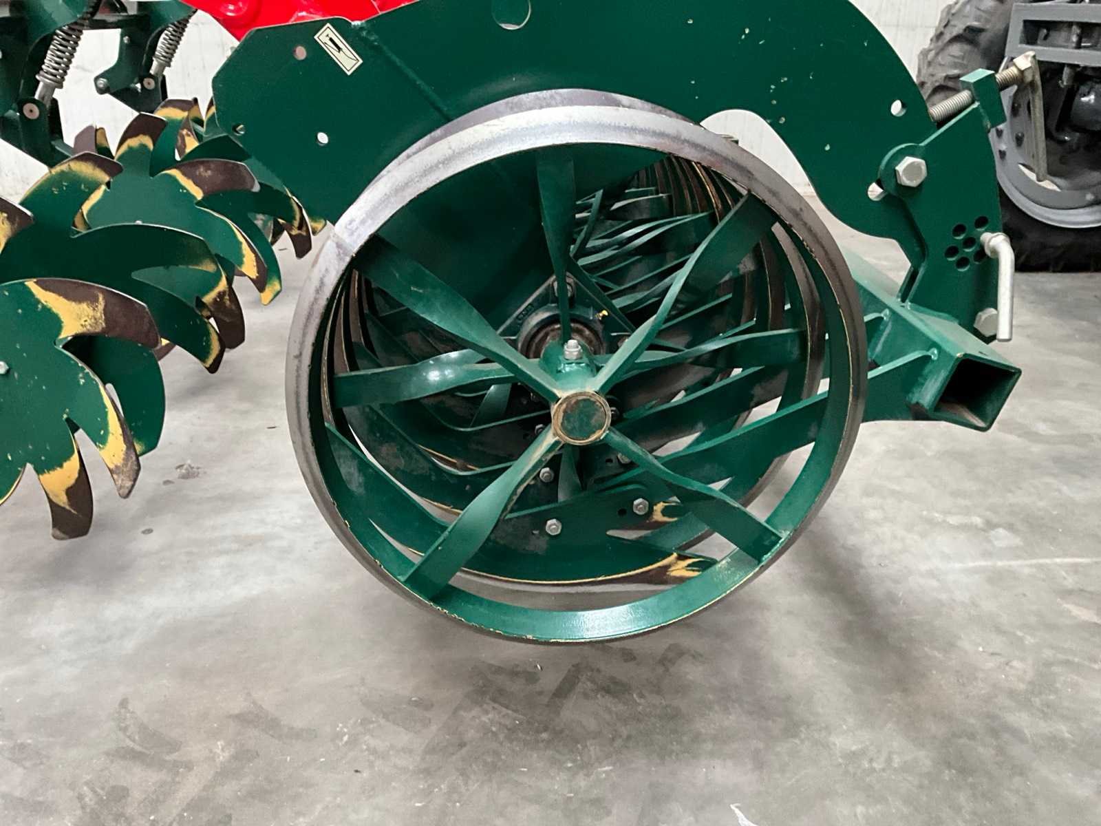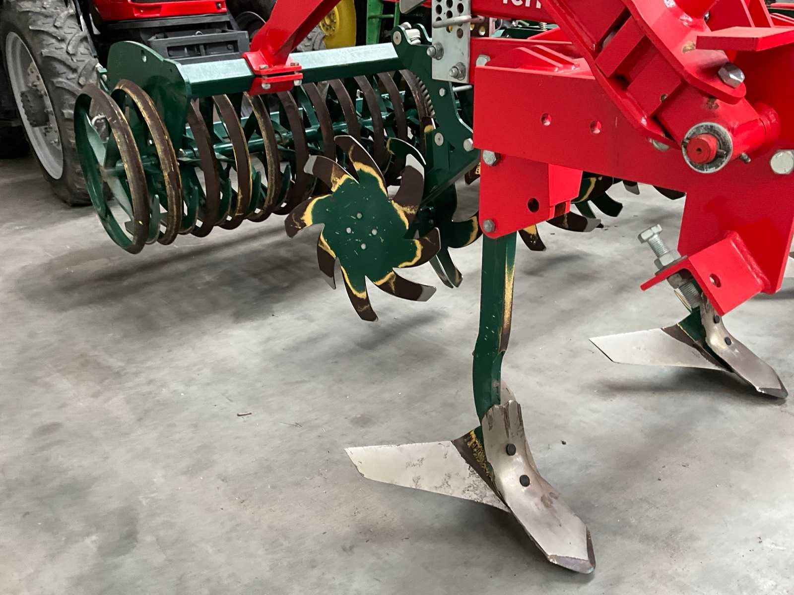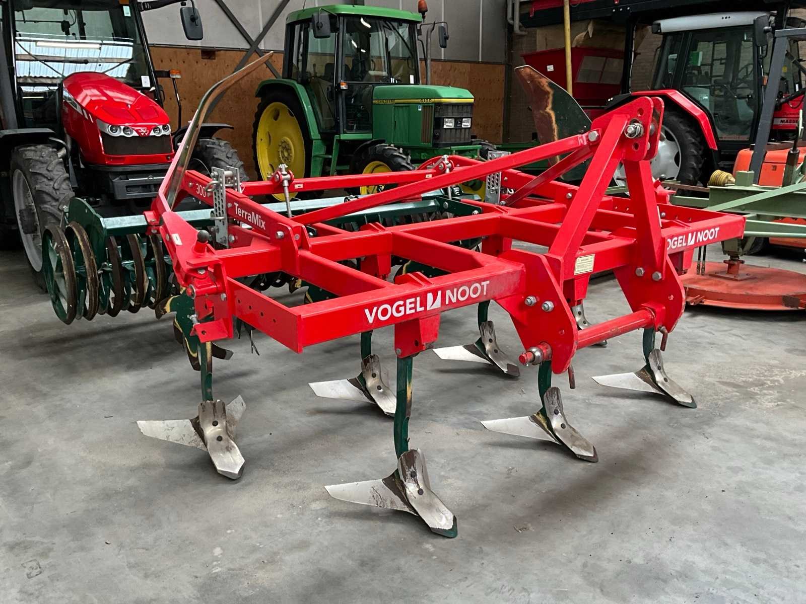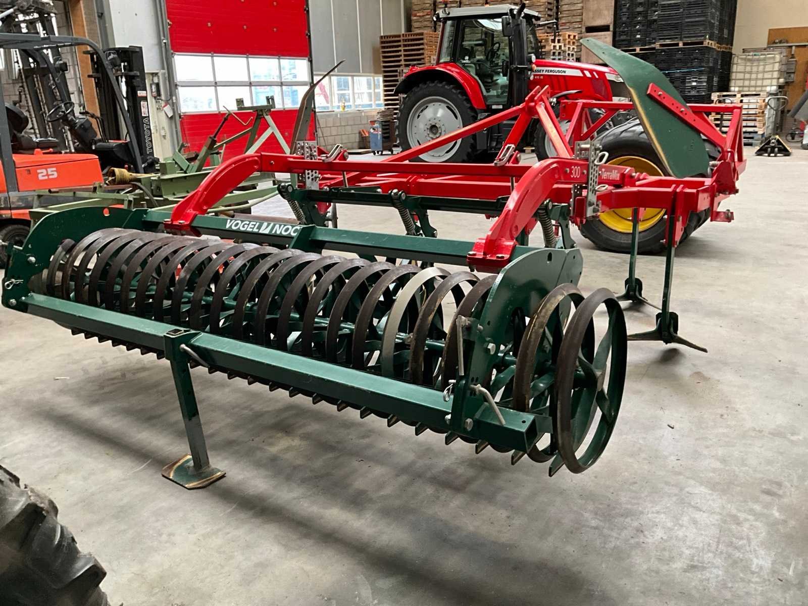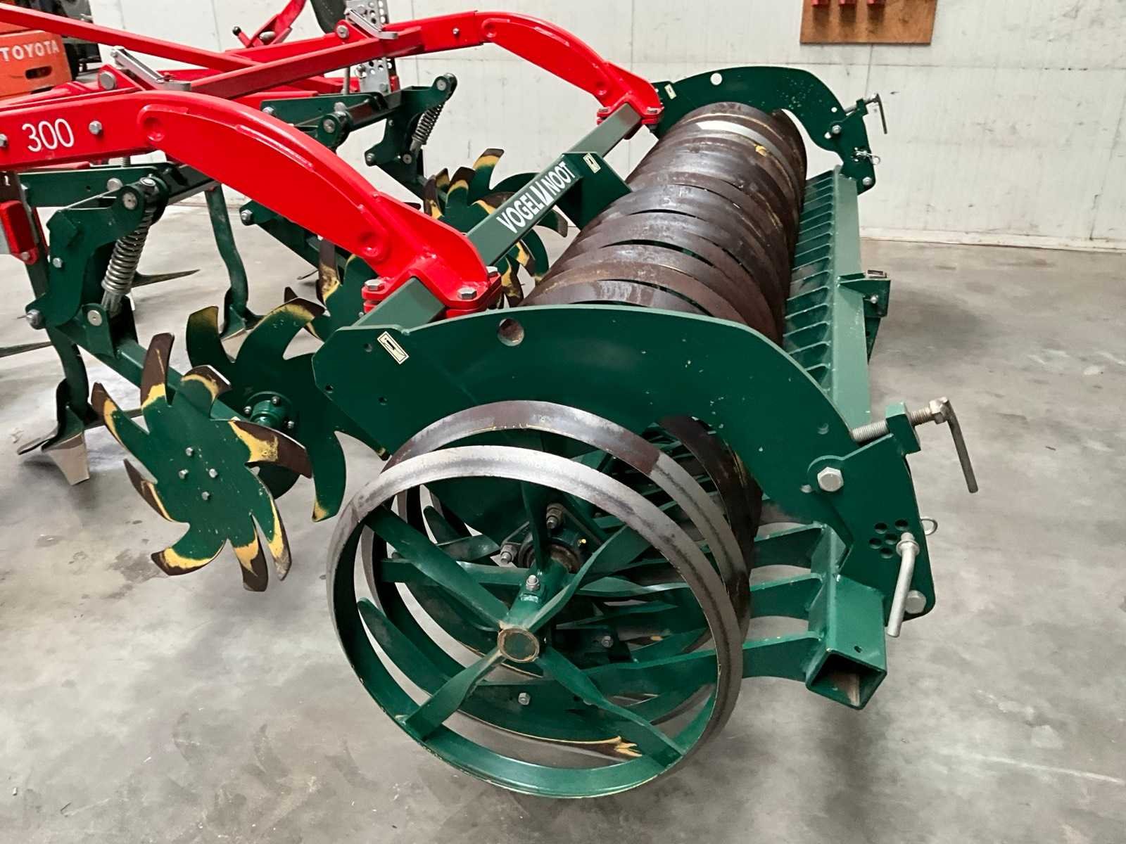 Voorzien van ringen verkruimel rol (diepte verstelling), ring ø 600 mm, schijven/sterren, 7x arm met vleugelschaar, opklapbare zij elementen, driepunt aansluiting Merk: Vogel & Noot Type: TerraMix 300 Serienummer: 6405 Werkbreedte: 3000mm Totale afmeting L: 3600mm Totale afmeting Hoogte: 1600mm