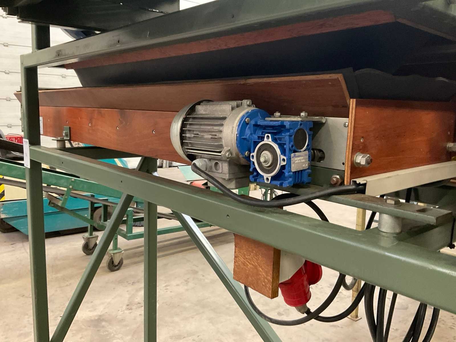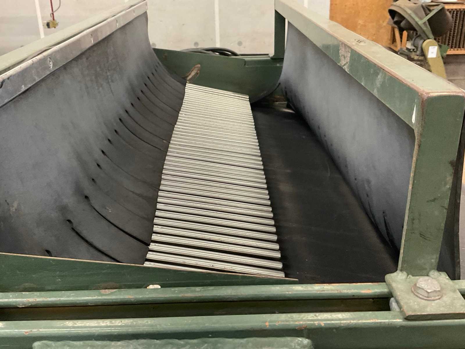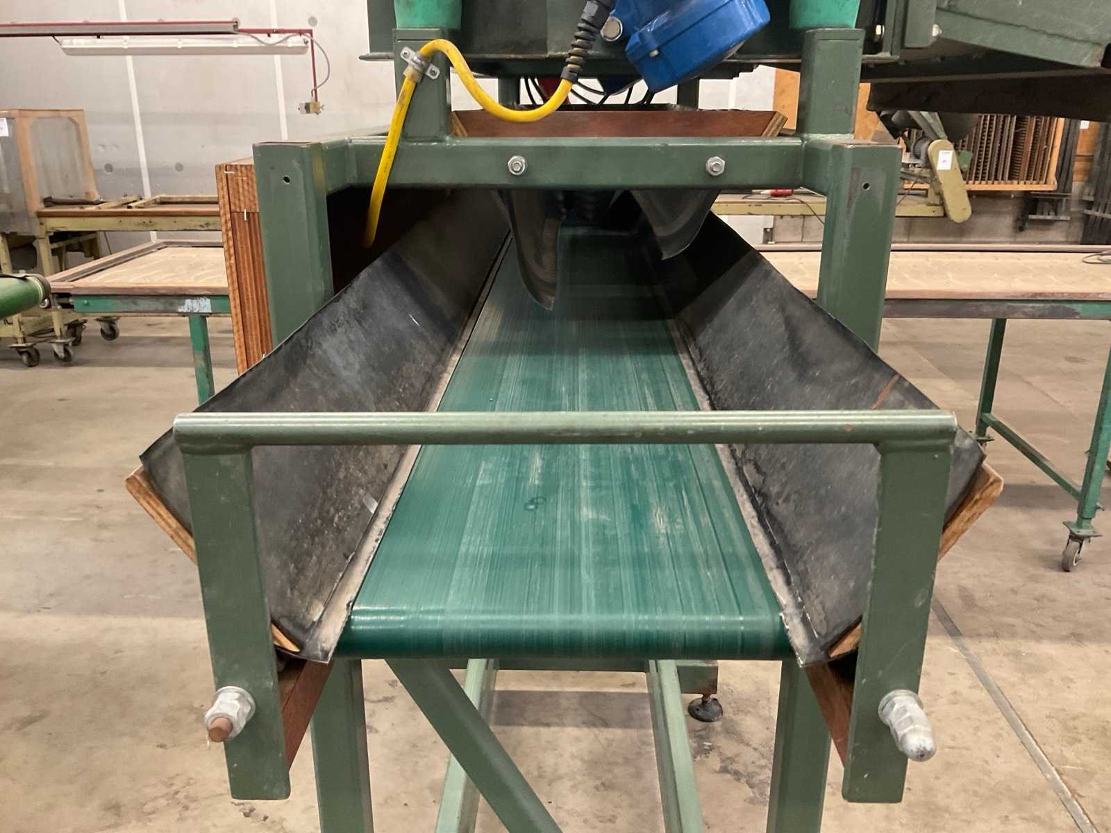 Werkbreedte 1000 mm; v.v. dwarsgelegen uitvoer transportband; band afm. ca. 1600x300 mm; 400V Merk: Compas Type: TZ 100x30 Bouwjaar: 2001 Totale afmeting L: 2000mm Totale afmeting Breedte: 1200mm Totale afmeting Hoogte: 2200mm