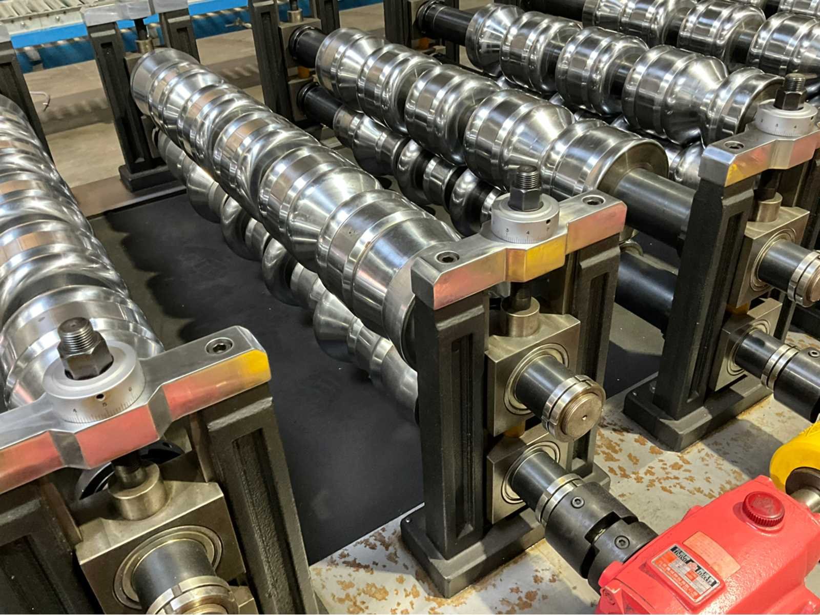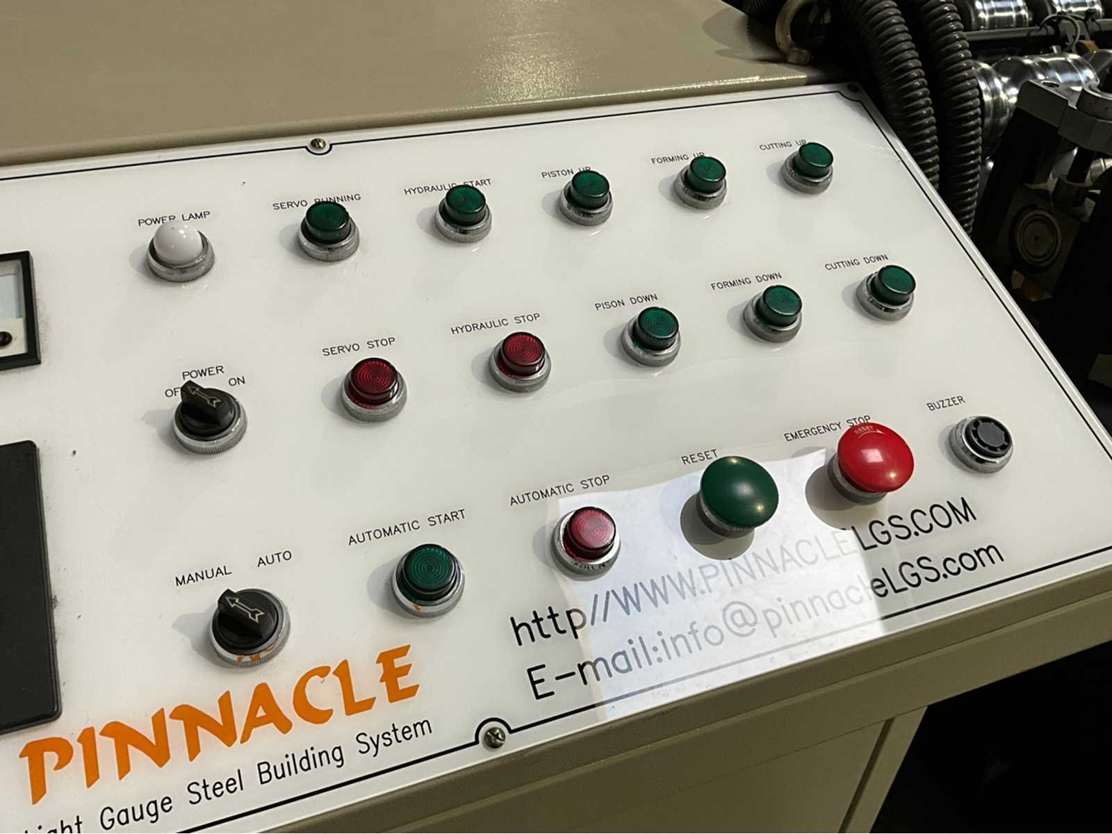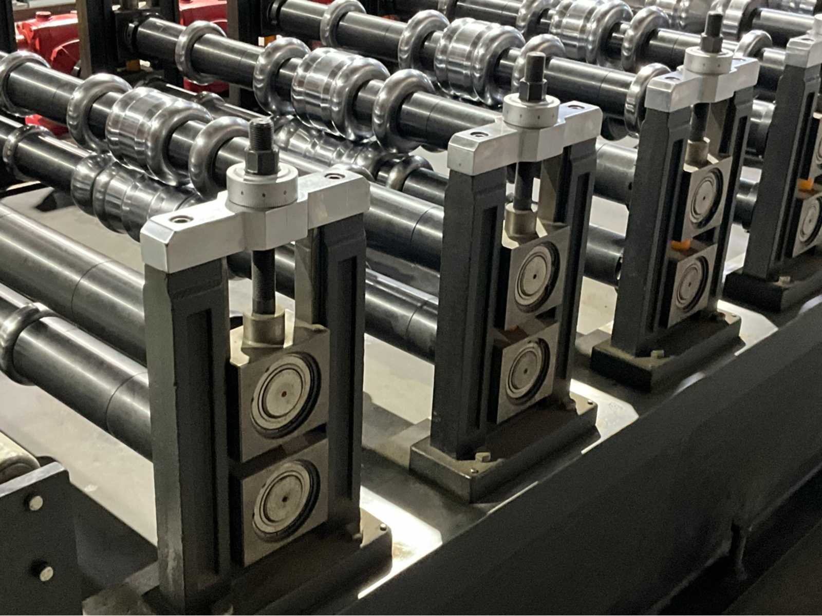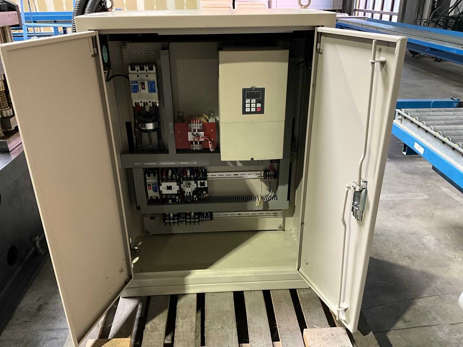 Verstelbaar aanvoerstation met 5 rollen (1500x600x250) Werkbreedte 1200 mm. 22 rolstations met dubbele horizontale assen. Verstelbare geleidingen. Precisie lagers per station. Cardan aangedreven rollen Hydraulische aggregaat (1520x1400x800 mm) met Tatung 22 kW FBDP-HD aandrijving. Hydraulische knipunit met dubbele stans voorzien van Leedan LDSM230D-II 15 kW servomotor. Voorzien van hydraulische decoiler (2500x1400x2000 mm, capaciteit 5000 kg. Inclusief rollenbaan (3000x1020x760 mm) Merk: Pinnacle Type: RD 1200 - ROOFDECK Productgrootte b: 1200mm Motorvermogen (kW): 22kW Aansluiting: 380V Machinegewicht: 14000kg Afmeting l: 11130mm Afmeting b: 1850mm Afmeting h: 1570mm