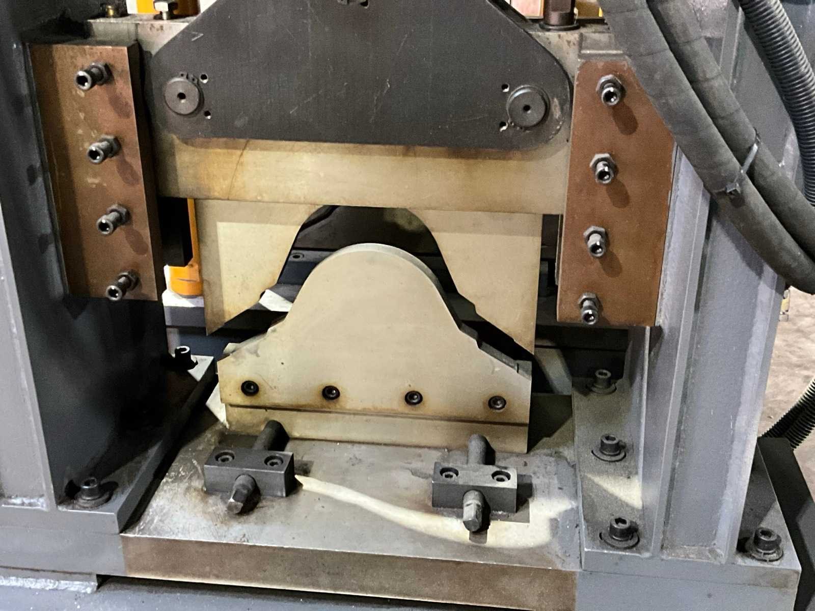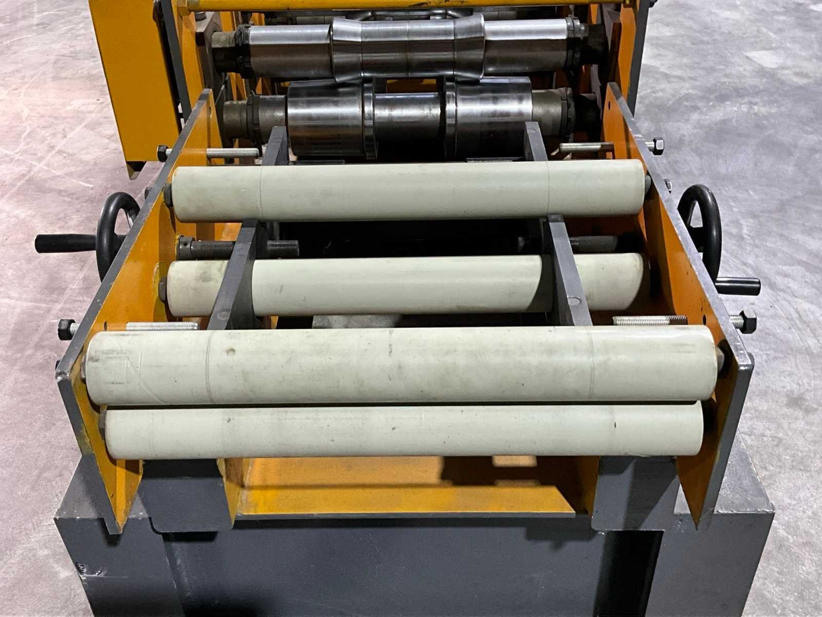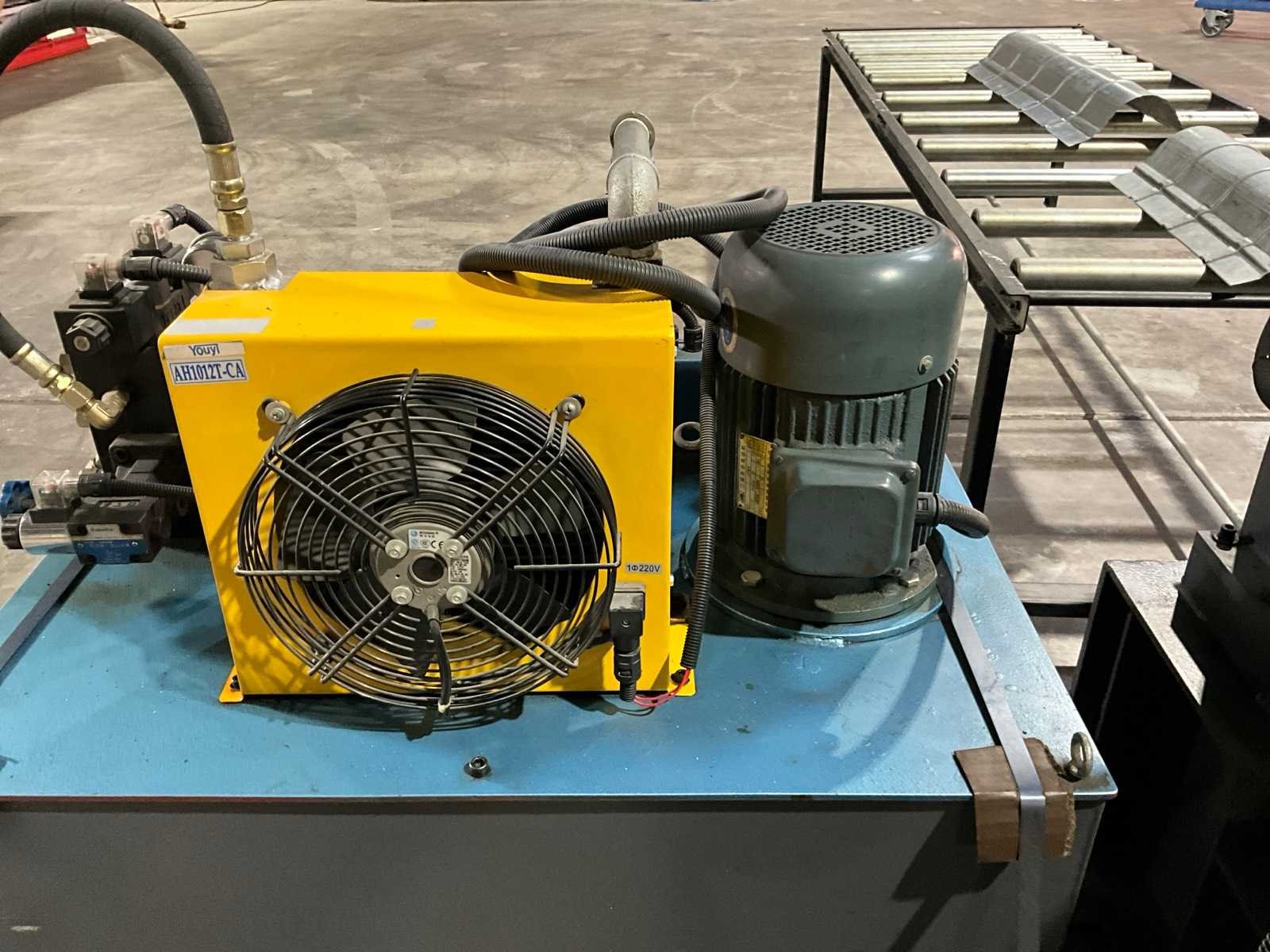 Verstelbaar aanvoerstation met 5 rollen (900x700x360) Werkbreedte 630 mm. 12 rolstations met dubbele horizontale assen. Verstelbare geleidingen. Precisie lagers per station. Hydraulische aggregaat (1000x600x1100 mm) met 4 kW aandrijving. Hydraulische knipunit. 20 kVA Cheng Hsuan transformator. Voorzien van decoiler (1300x700x1100 mm) Inclusief rollenbaan (3000x1020x760 mm) Merk: Pinnacle Type: RIDGCAP XG-400 Productgrootte b: 630mm Aansluiting: 380V Machinegewicht: 6000kg Afmeting l: 7112mm Afmeting b: 1030mm Afmeting h: 1720mm