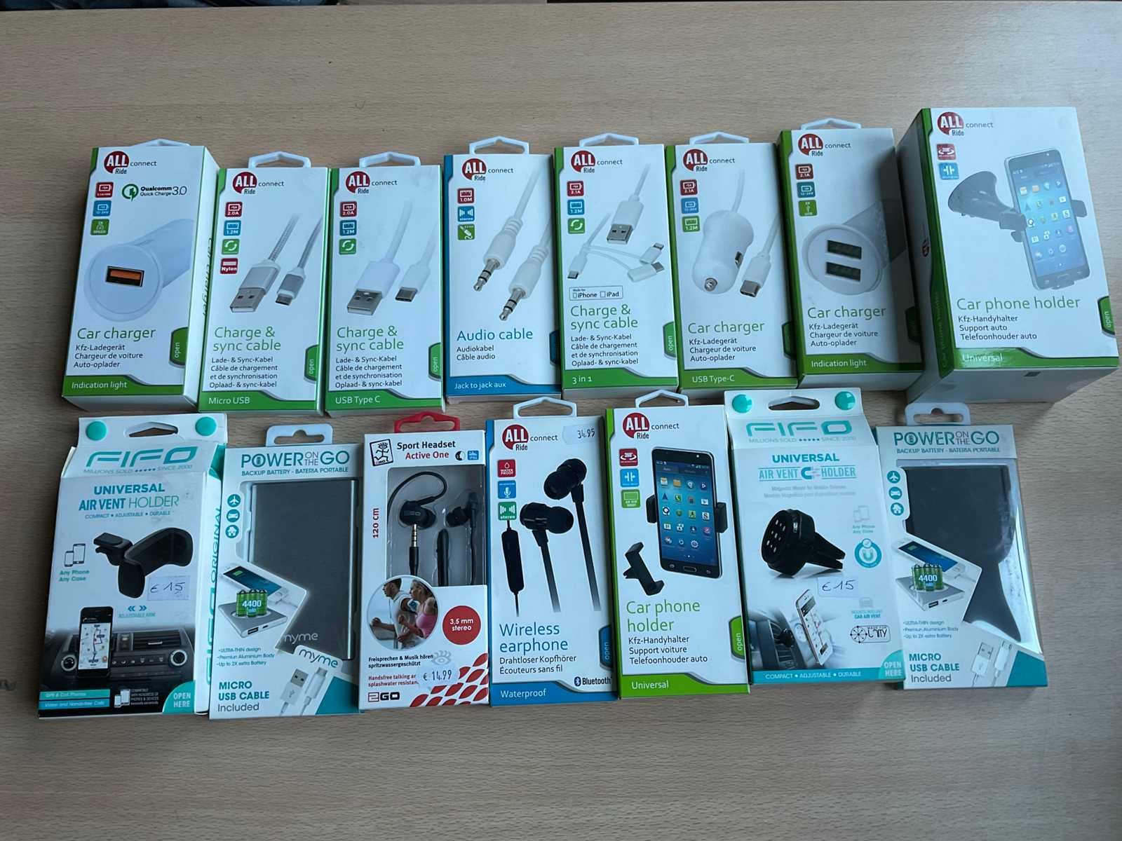 All conect - powerbank, laadkabels, telefoonhouders (80x)