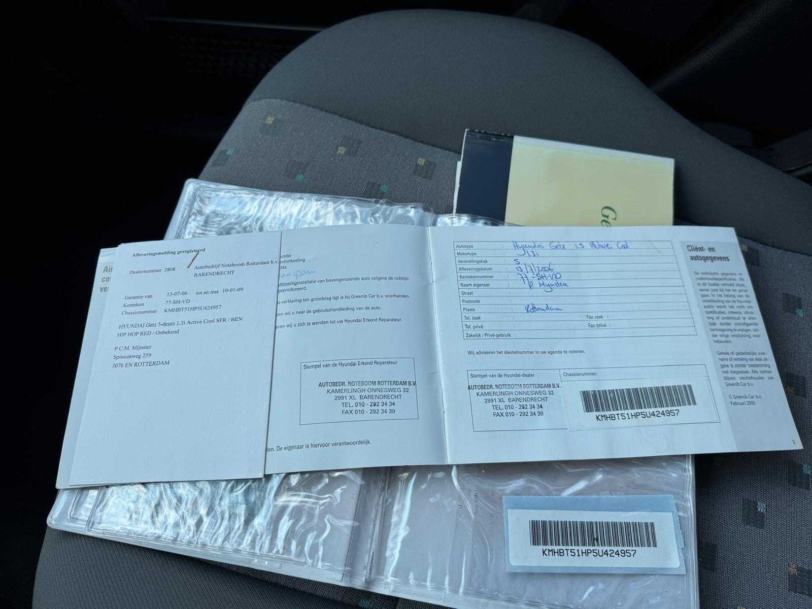Achterbank in delen neerklapbaar airco QAC - Airconditioning alarm klasse 1(startblokkering) Anti Blokkeer Systeem bestuurdersairbag buitenspiegels in carrosseriekleur bumpers in carrosseriekleur centrale vergrendeling met afstandsbediening elektrische ramen voor elektronische remkrachtverdeling hoofdsteunen achter passagiersairbag stuur verstelbaar stuurbekrachtiging Kenteken: 77-SH-VD Merk: Hyundai Model: Getz Type: 1.3i Active Cool Afgelezen kilometerstand: 141227km Cilinderinhoud: 1341cc Vermogen (kW): 63kW Brandstof: benzine Chassisnummer: KMHBT51HP5U424957 Laadvermogen: 0kg NAP status: Logisch Datum eerste toelating: 2006-01-10 Datum eerste toelating (NL): 2006-01-10 APK vervaldatum: 2026-01-18 Vermogen (pk): 86hp Energielabel: B Aandrijving: FWD Aantal zitplaatsen: 5 Maximaal trekgewicht ongeremd: 450kg Maximaal trekgewicht geremd: 1000kg Kleur: rood Transmissie: Handgeschakeld Stuurwiel: links Emissieklasse: 4 Aantal deuren: 4 Ledig gewicht: 972kg Bruto BPM (NL): 2406€ Rest BPM: 0€ Aantal cilinders: 4 Carrosserie: mpv Nationaliteit documenten: Nederland CO2-uitstoot NEDC: 136 Onderhoudshistorie: Ja gedeeltelijk Carfax Link: https://was.carfax.eu/v0/api/ccdid/5100016408/svc/201/vinreg/77SHVD/checksum/eyJhbGciOiJIUzI1NiIsInR5cCI6IkpXVCJ9.eyJleHAiOjE3NTg5NzA4MTZ9.YTLPt2cUUeJTX1Vh_5AGpRill0jgyswQsqw9emnju14 startinformatie : Start en rijdt Airconditioning: true