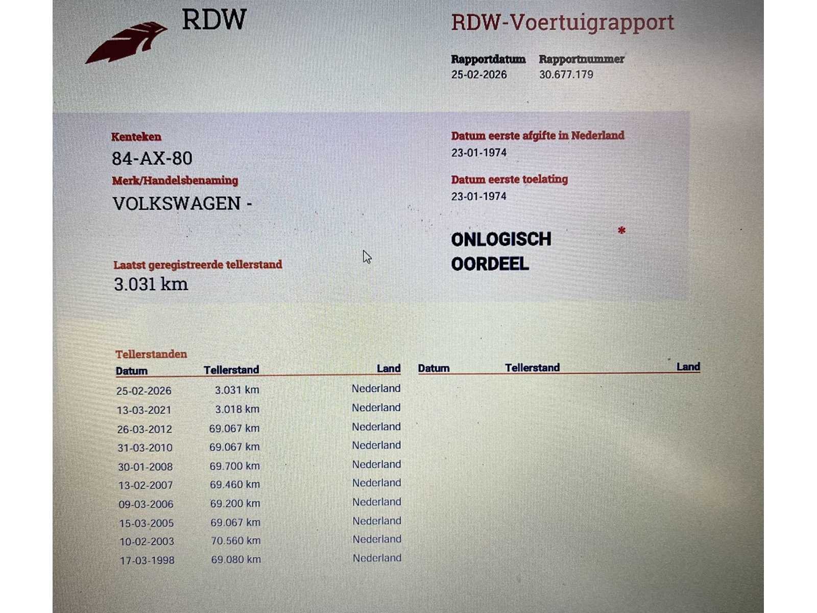 Omdat dit kavel niet in Spijkenisse staat moet u ons een mail sturen dan krijgt u van ons het adres. Vermeld wel het veilingnummer en kavel nummer zodat het voor ons makkelijker zoeken is. Kenteken: 84-AX-80 Merk: Volkswagen Model: Kever Type: Speedster Bouwjaar: 1974 Afgelezen kilometerstand: 3031km Cilinderinhoud: 1600cc Brandstof: benzine Chassisnummer: 1142237162 NAP status: onlogisch Datum eerste toelating: 23-01-1974 APK vervaldatum: n.v.t Aandrijving: start en rijd Kleur: blauw Transmissie: handgeschakeld Stuurwiel: links startinformatie : Start en rijdt