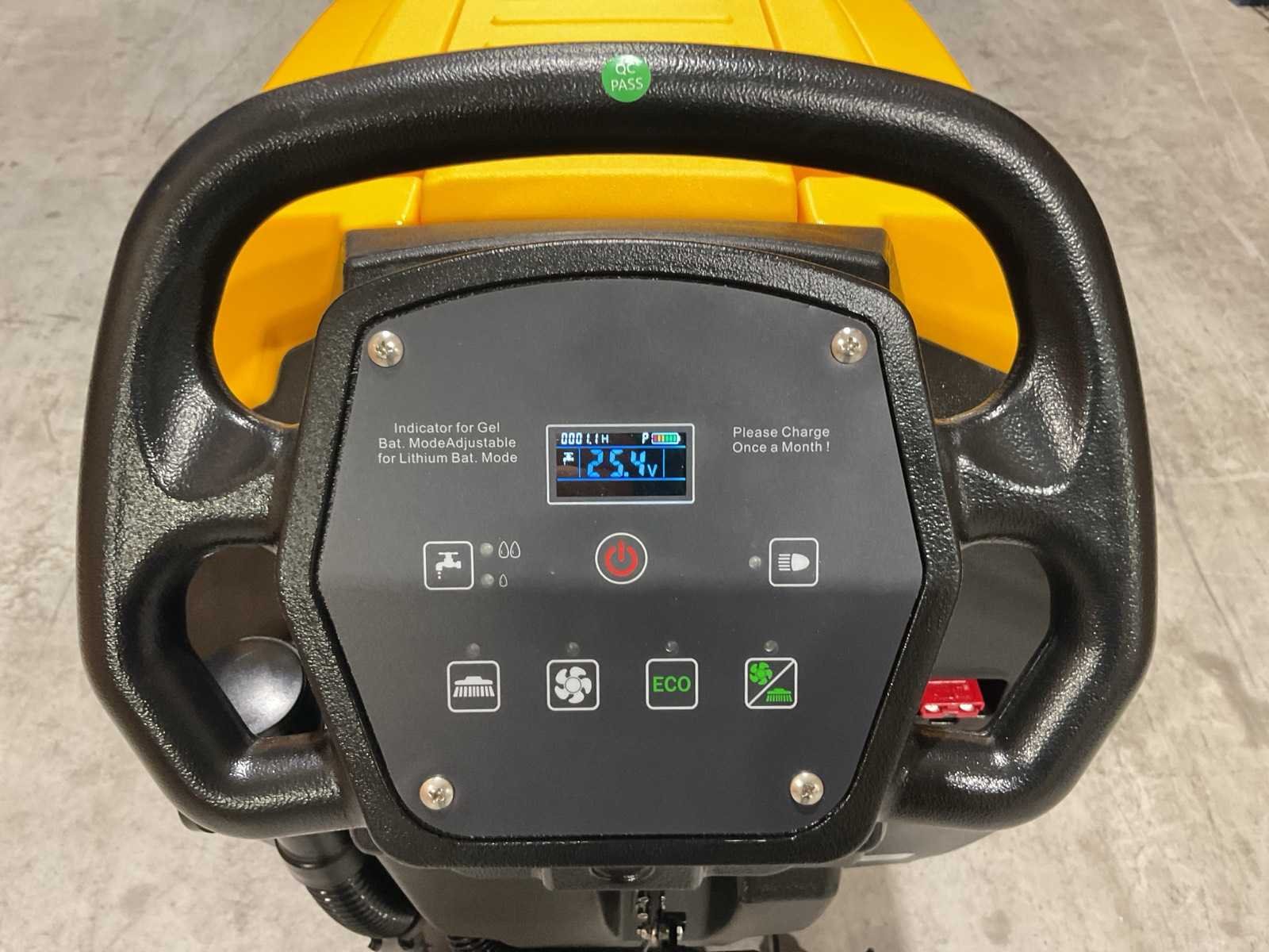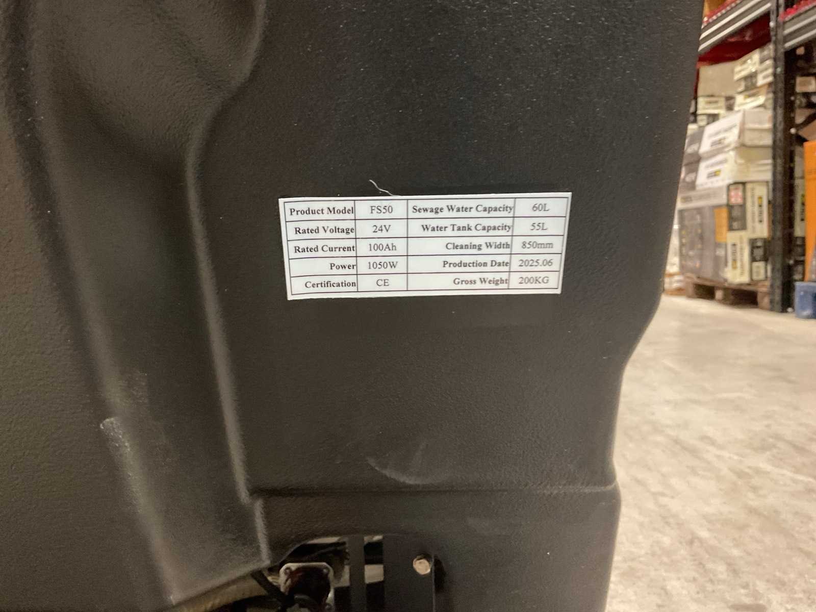 Schijfborstel 510mm; wisserbreedte 850mm; schoonwatertank 55L; opvangcapaciteit 60L; werkcapaciteit 2000m/u; spanning 24V; accu 200Ah*2*12V; vermogen 1300W; accumonitor; licht; snelheidsregelaar; claxon; oplader; handleiding; Merk: RTE Type: FS50 Bouwjaar: 2025 Eigen gewicht: 220kg Totale afmeting L: 1400mm Totale afmeting Breedte: 850mm Totale afmeting Hoogte: 1050mm