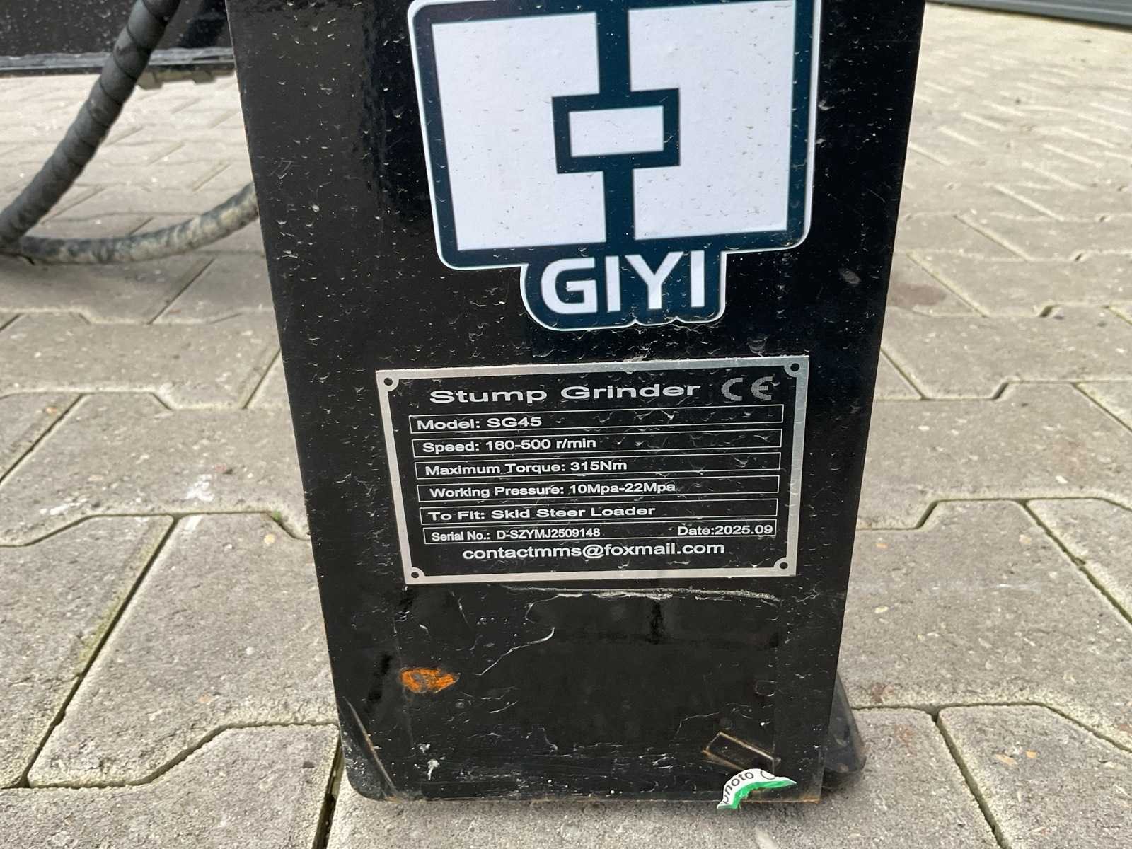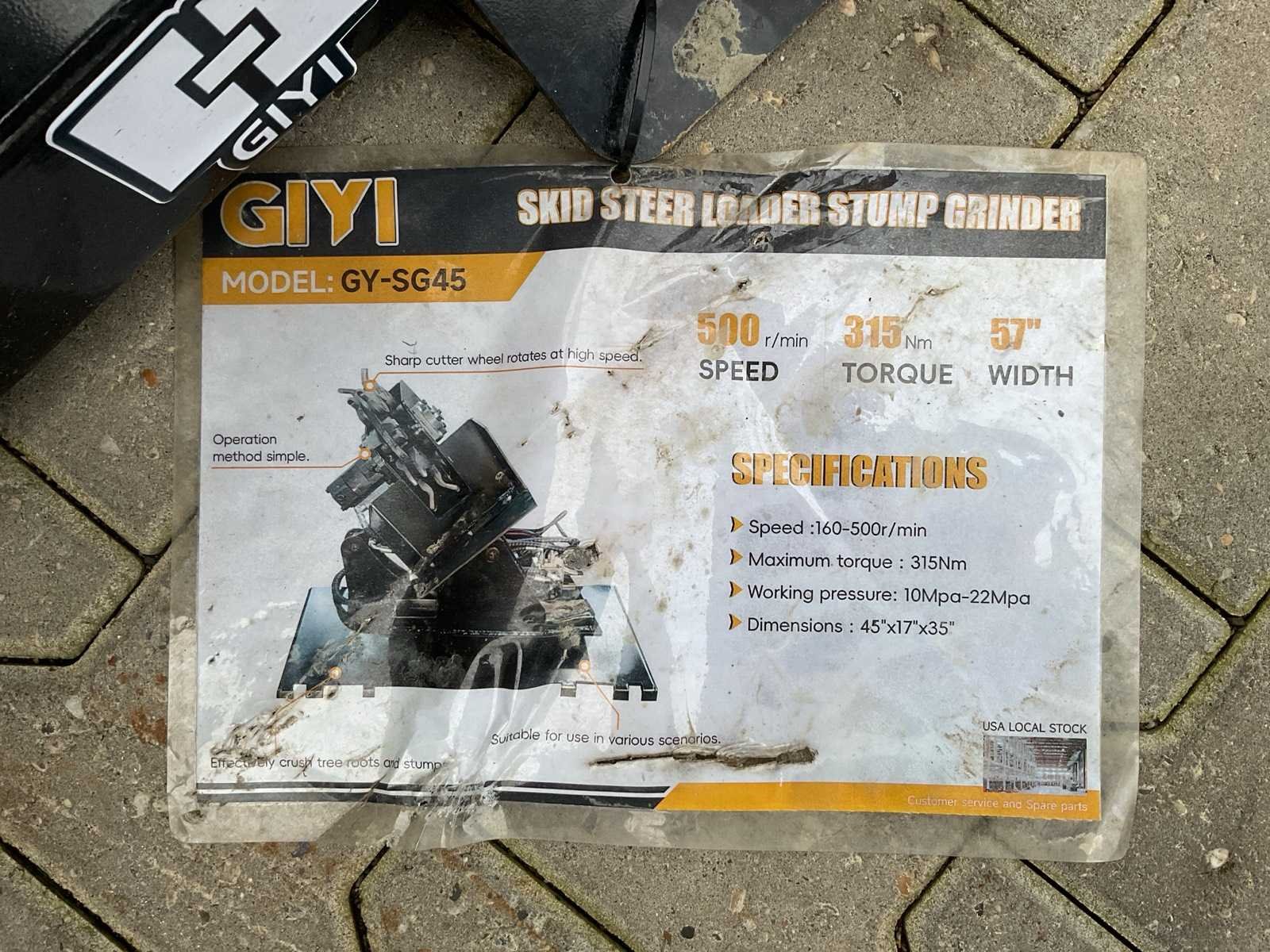Voorzien van Snelheid: 160–500 r/min (max. 500 r/min); Max. koppel: 315 Nm; Werkdruk: 10–22 MPa (≈ 100–220 bar); Werkbreedte: 57" (≈ 1448 mm); Afmetingen (L×B×H): 45" × 17" × 35" (≈ 1143 × 432 × 889 mm) Merk: Giyi Type: SG45 Bouwjaar: 2025