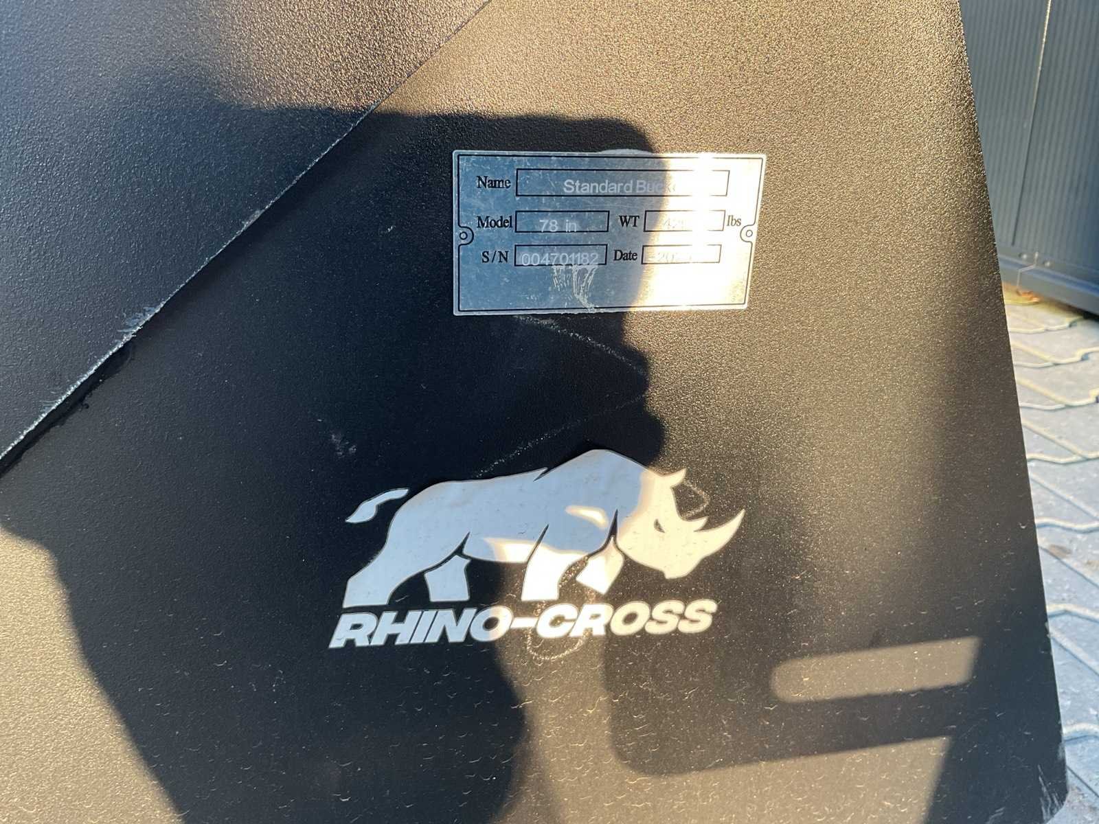 Voorzien van Werkbreedte: 1981 mm; Gewicht: 194,6 kg; Materiaal: Zwaar constructiestaal; Snijrand: Versterkte stalen snijrand; Afwerking: Zwart, industrieel gecoat Merk: Rhino-Cross Type: Standard Bucket 78 inch