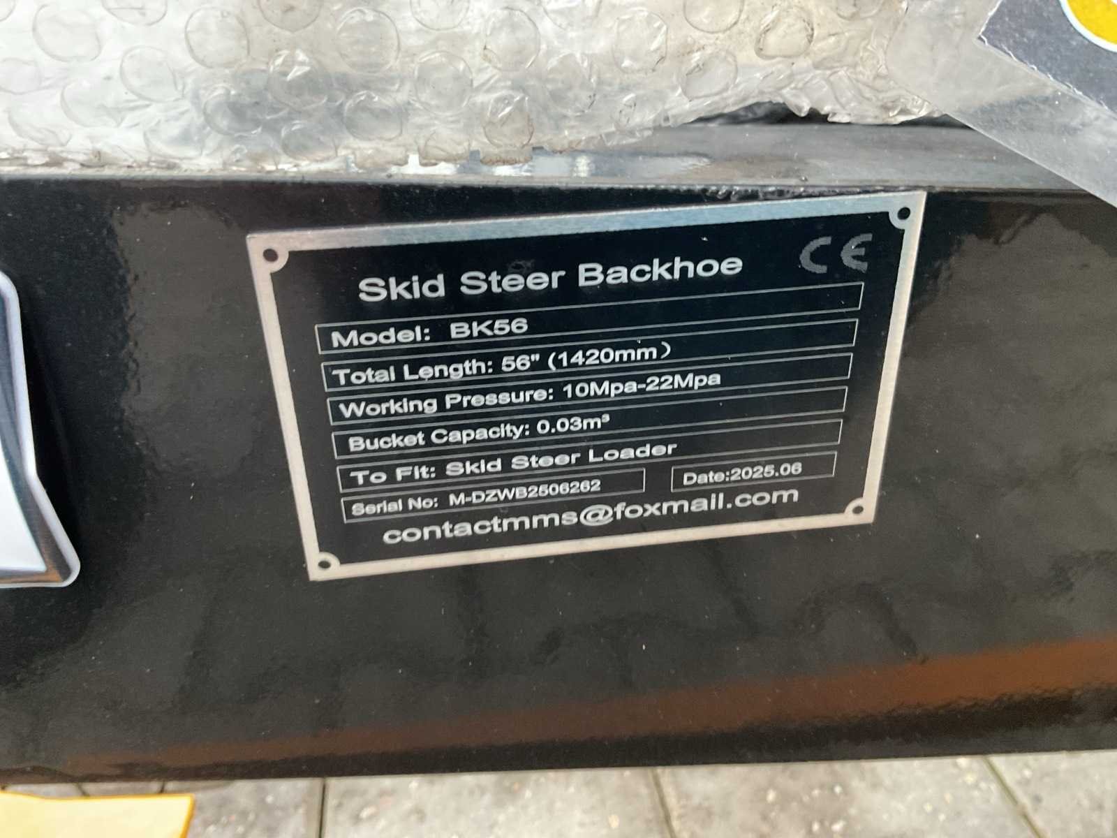 Totale lengte: 56" (1420 mm); Werkdruk (hydrauliek): 10 – 22 MPa; Bakinhoud: 0,03 m³; Geschikt voor: Skid Steer Loader (schranklader); ongebruikt Merk: Giyi Type: BK56