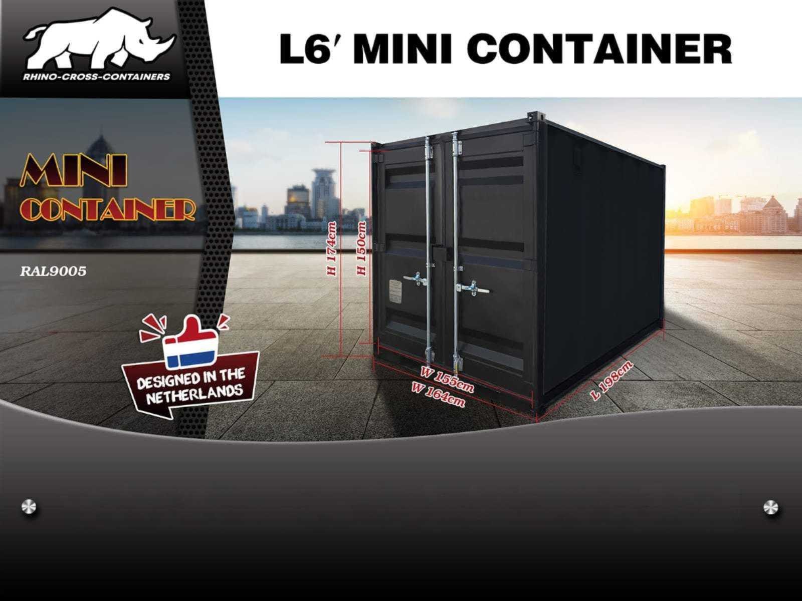 Voorzien van lepelgaten; ral 9005; ongebruikt Merk: Rhino-Cross-Containers Type: 6ft Bouwjaar: 2025 Lengte (ft): 6 Totale afmeting L: 1980mm Totale afmeting Breedte: 1640mm Totale afmeting Hoogte: 1740mm