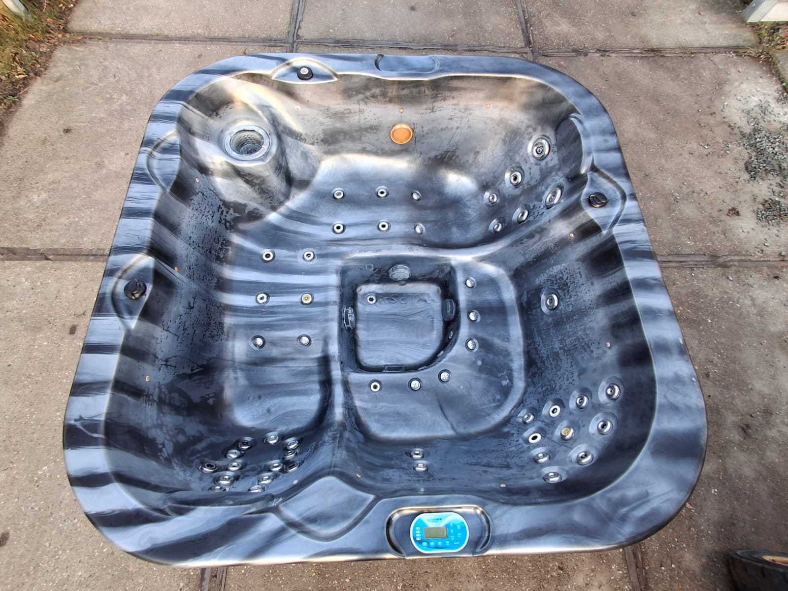 Voorzien van kunststof omkasting; 2 ligplaatsen; 3 zitplaatsen; verlichting; automatisch filtersysteem Niet getest op functioneren (Marge, geen BTW) Merk: Spanet Model: 5 persoons Verlichting: Ja Jets: 45 Aantal personen: 5 Lengte: 200cm Breedte: 200cm Hoogte: 94cm