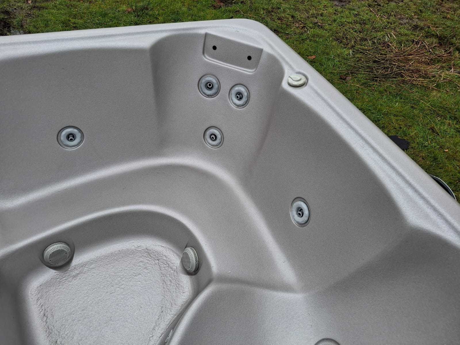 Voorzien van 1 ligplaats; 4 zitplaatsen; automatisch filtersysteem; kunststof omkasting; Niet getest op functioneren (Marge, geen BTW) Merk: California cooperage Model: 5 persoons Jets: 22 Aantal personen: 5 Lengte: 200cm Breedte: 200cm Hoogte: 74cm