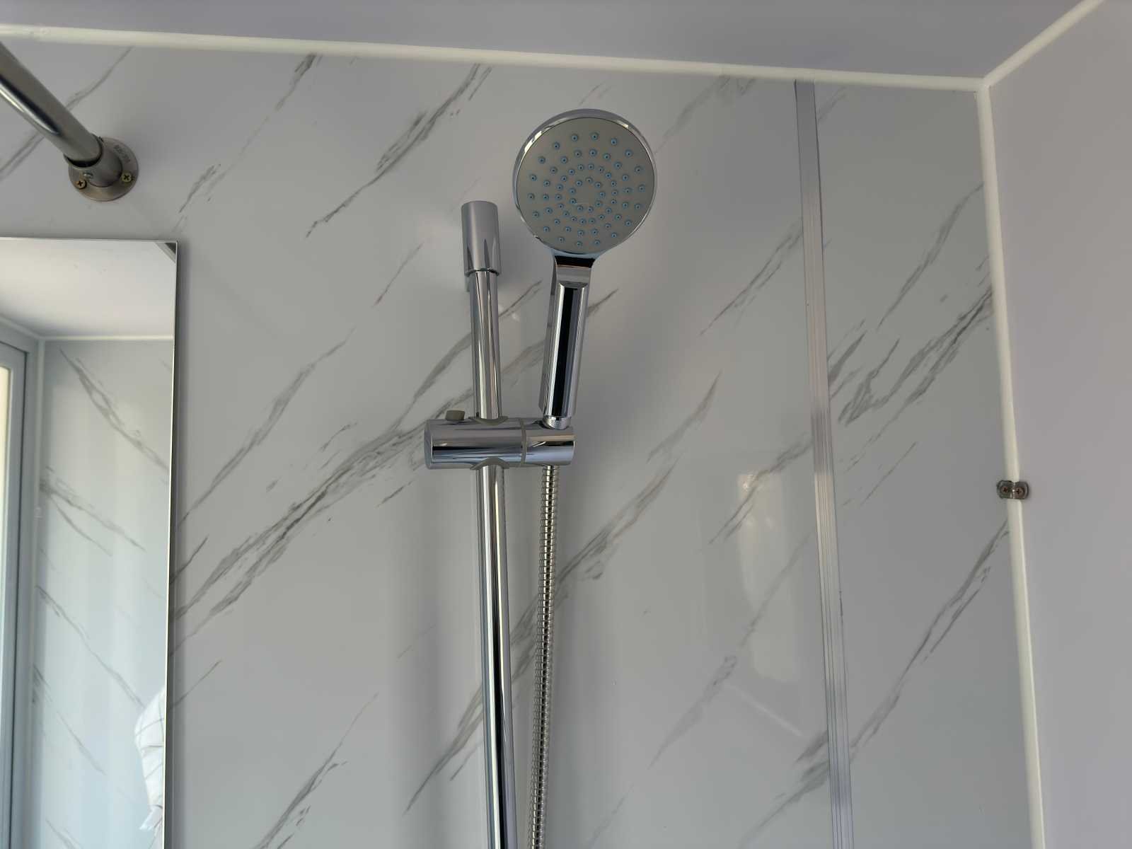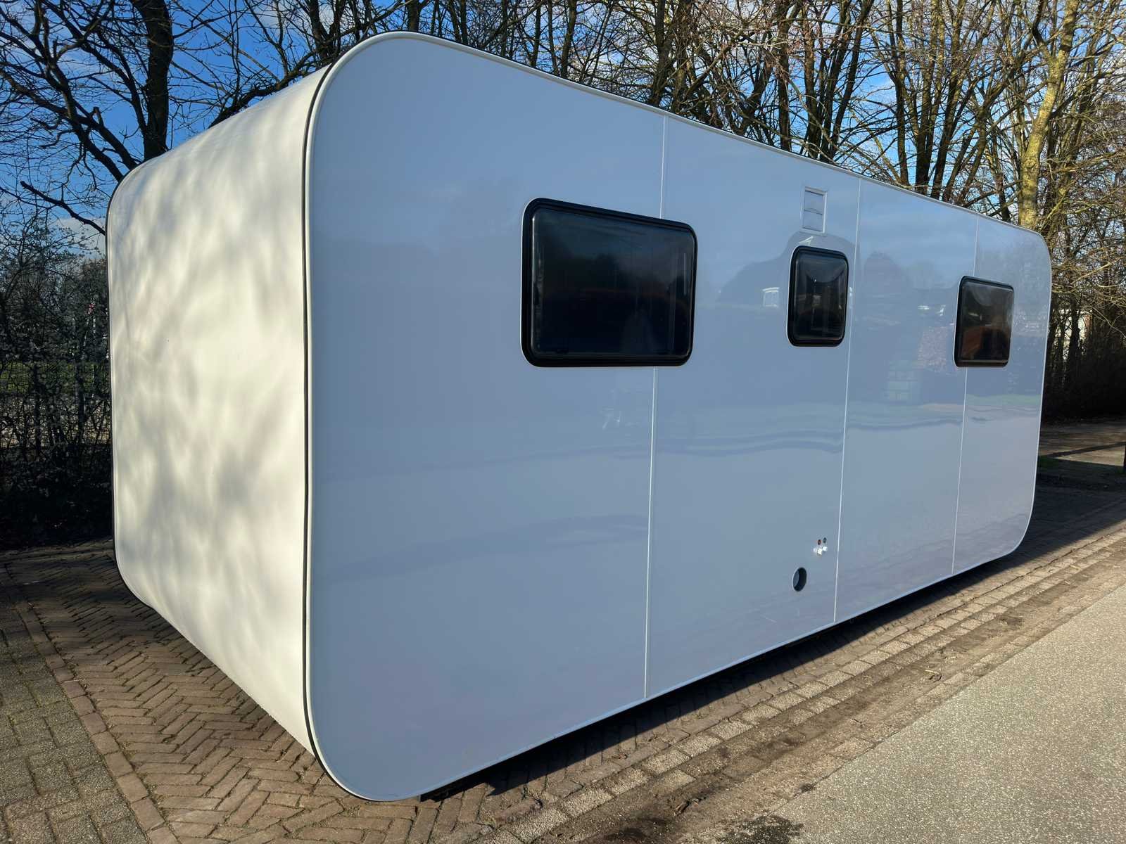 Geïsoleerde wanden en dak; aluminium kozijnen met dubbele zonwerende beglazing; afsluitbaar met sleutel en knopcilinder; uitzetraam; hijsogen; frame onderzijde; voorzien van lepelgaten en stelpoten; ongebruikt Intern: sanitaire ruimte met douche; toilet; wastafel met mengkraan en onderkastjes en spiegel; ventilator; 220 volt wandcontactdozen met USB aansluiting; led plafondverlichting; 3 stuks uitzetramen met zonwering en horrengaas; gordijnen; bed box met opbergruimte en nachtkastje; aardlekschakelaar kast- opbergruimte; (excl. accessoires) Extern: Aansluitpunt 220 volt; aansluitpunt warm en koud water; rioolaansluiting; Externe materialen: Aluminium composiet paneel; wit fluorkoolstof enkelvoudig gecoat aluminium plaat; dubbellaagse lichtgewicht hoge druksterkte Interne materialen; Vlakke knoopplaat van hout-kunststof; ecologische plaat van EO-kwaliteit; ongebruikt transportafmeting 5950x2300x2550 mm (lxbxh) Merk: Stahlworks Type: Eco 6000 A Wit Aantal ramen: 6 Toilet: true Eigen gewicht: 2070kg Totale afmeting L: 5950mm Totale afmeting Breedte: 2300mm Totale afmeting Hoogte: 2550mm