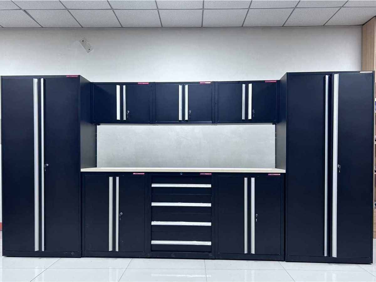 Voorzien van poeder coating; 30 mm houten werkblad; kleur zwart; ongebruikt in dozen (transport afmeting 1,5 m3) Merk: Stahlworks Model: TC-261 Product type: 405x55x203 cm Materiaal: SPCC steel