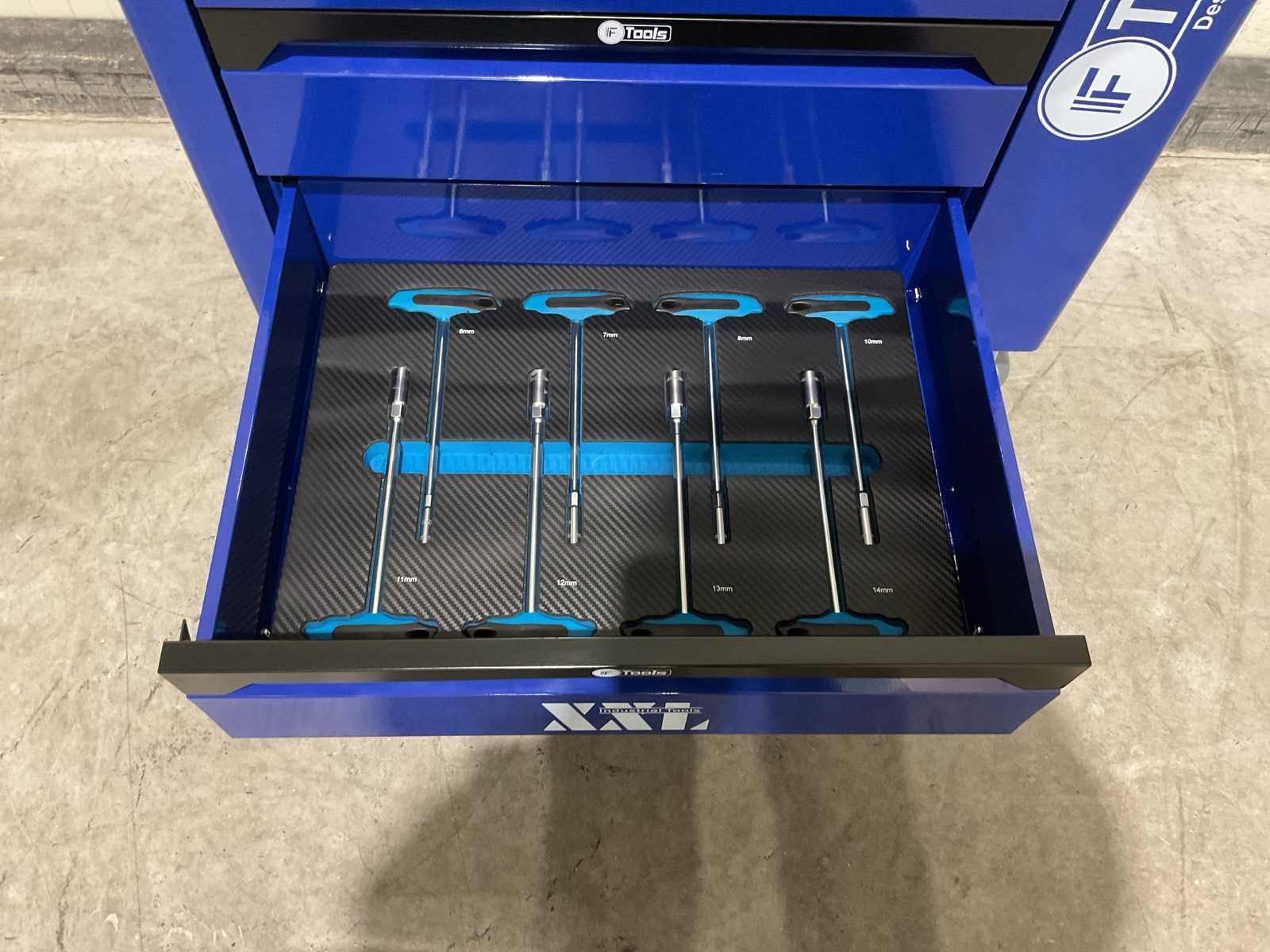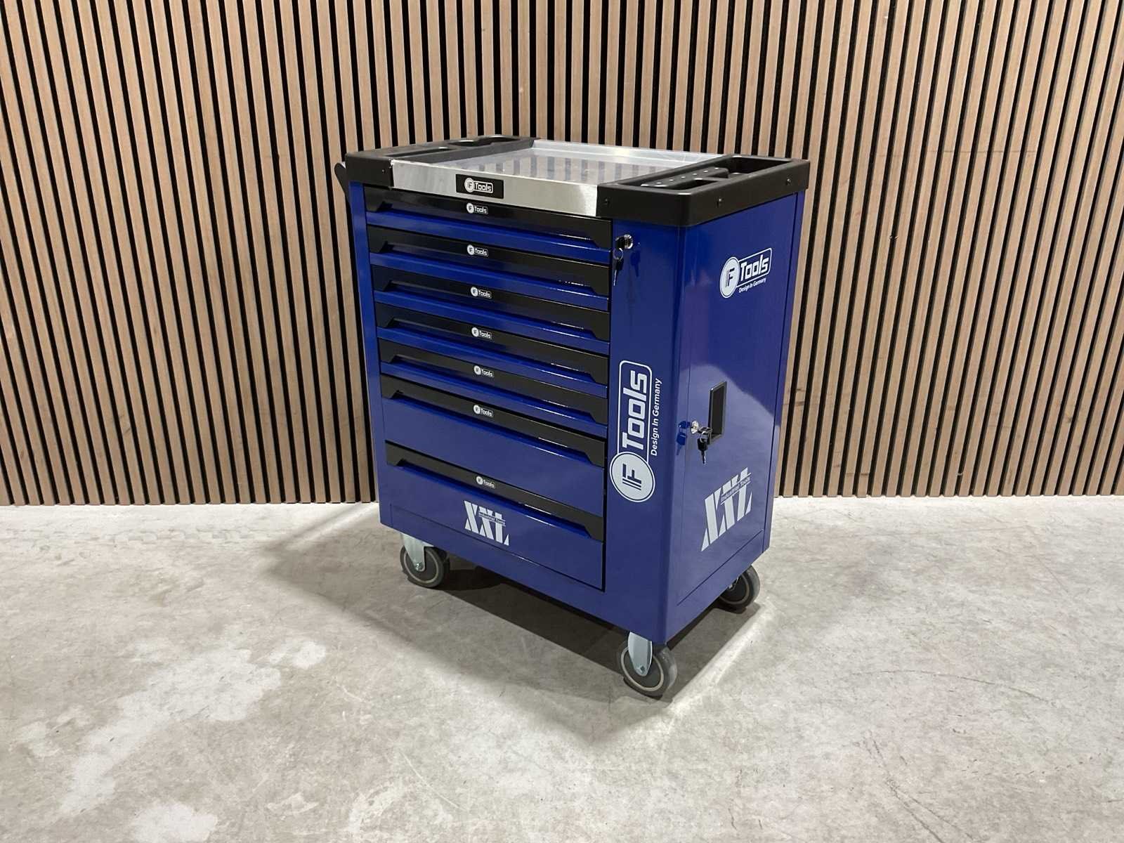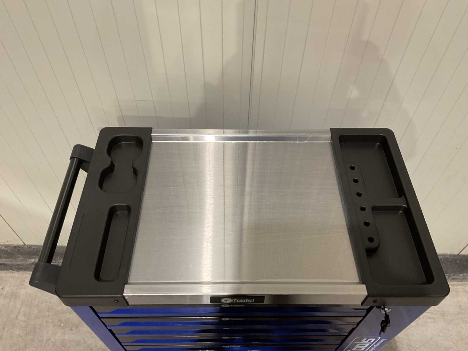 Voorzien van 7 lades gevuld met gereedschap; RVS werkblad; centrale vergendeling; Materiaal gereedschap: Chroom-Vanadium staal (CrV); Kogellager ladegeleiding; Bovenblad met geïntegreerde opbergvakken; Transport gewicht: 76 kg; Transport afmetingen 790x480x860 mm; ongebruikt in doos Merk: Ftools Type: FT3006