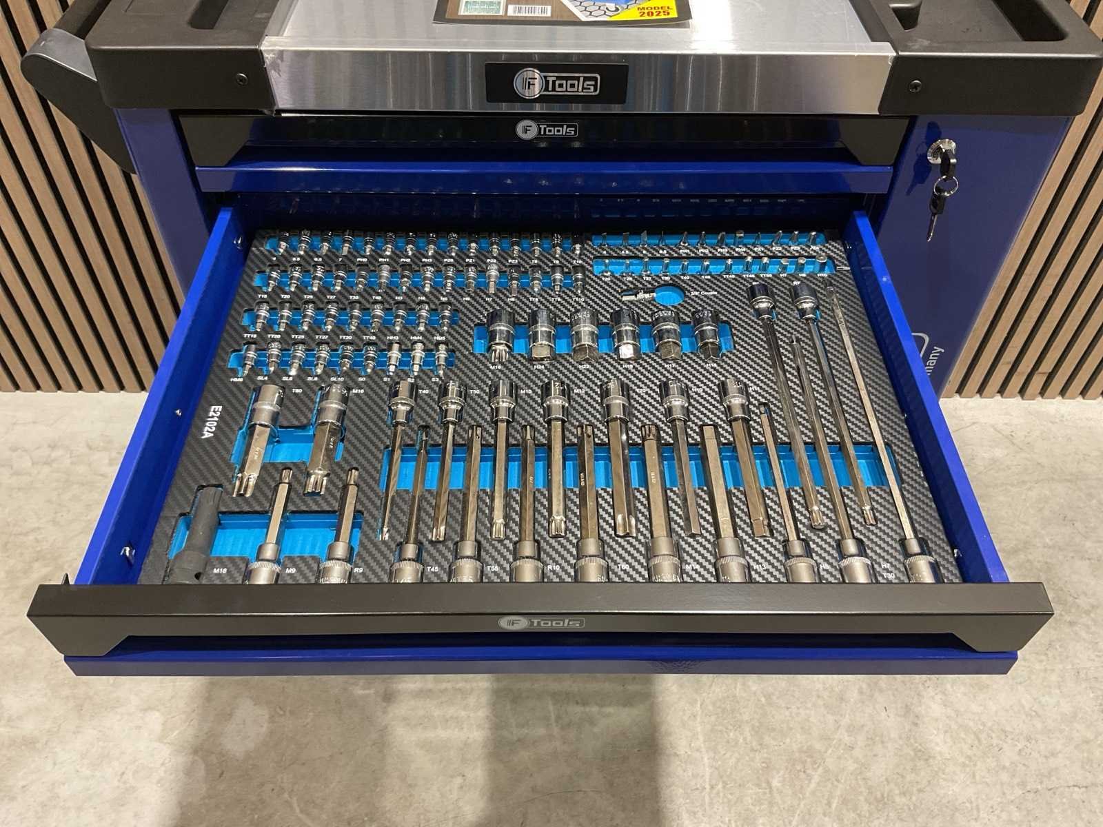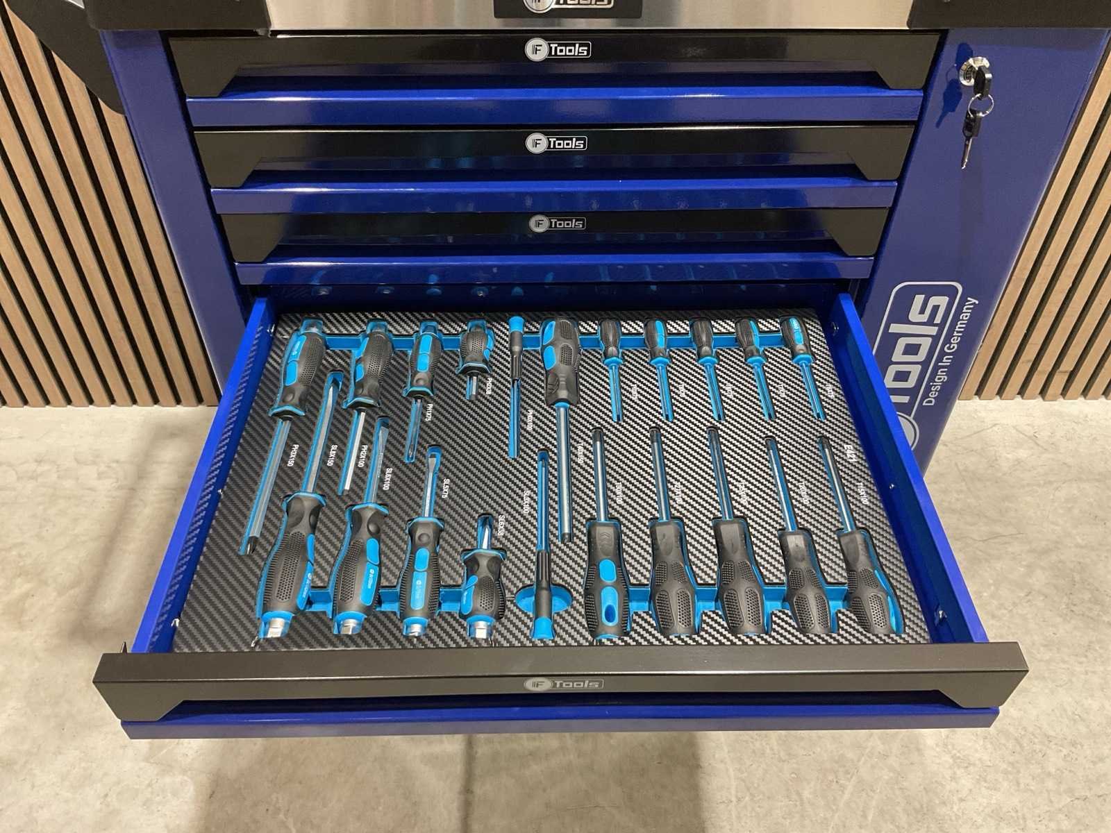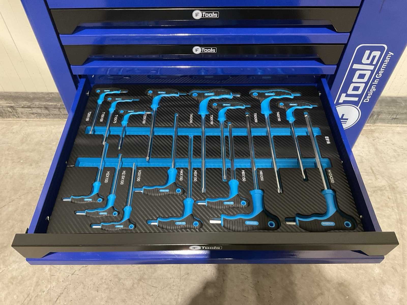 Voorzien van 7 lades gevuld met gereedschap; RVS werkblad; centrale vergendeling; Materiaal gereedschap: Chroom-Vanadium staal (CrV); Kogellager ladegeleiding; Bovenblad met geïntegreerde opbergvakken; Transport gewicht: 76 kg; Transport afmetingen 790x480x860 mm; ongebruikt in doos Merk: Ftools Type: FT3006
