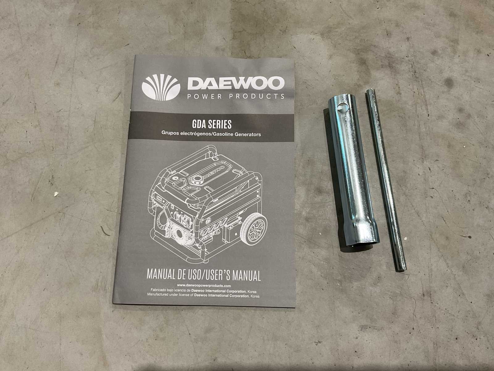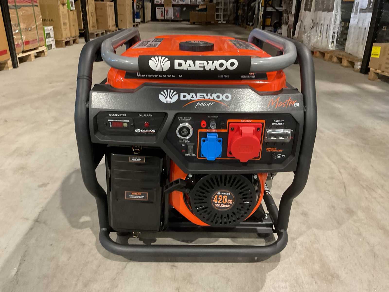 Voorzien van 25 liter brandstoftank; Benzine Euro 95 4-takt; Motor: 420cc, 15 pk; luchtgekoeld; 3000 toeren per minutt; Sleutelloze elektronische start; Uitgangen: 220/240V; 220/380/415V; 2 wielen; Ongebruikt in doos (Afmeting transport verpakking 750x700x610 mm lxbxh, gewicht 91 kg) Merk: Daewoo Type: GDAX9250E-3 Bouwjaar: 2025 Capaciteit.: 6.5kVA Benzine: true Aantal cilinders: 1 Motorvermogen (kW): 6.5kW Luchtgekoeld: true Mobiel: true Handboek aanwezig: true Machinegewicht: 91kg Totale afmeting L: 765mm Totale afmeting Breedte: 590mm Totale afmeting Hoogte: 575mm