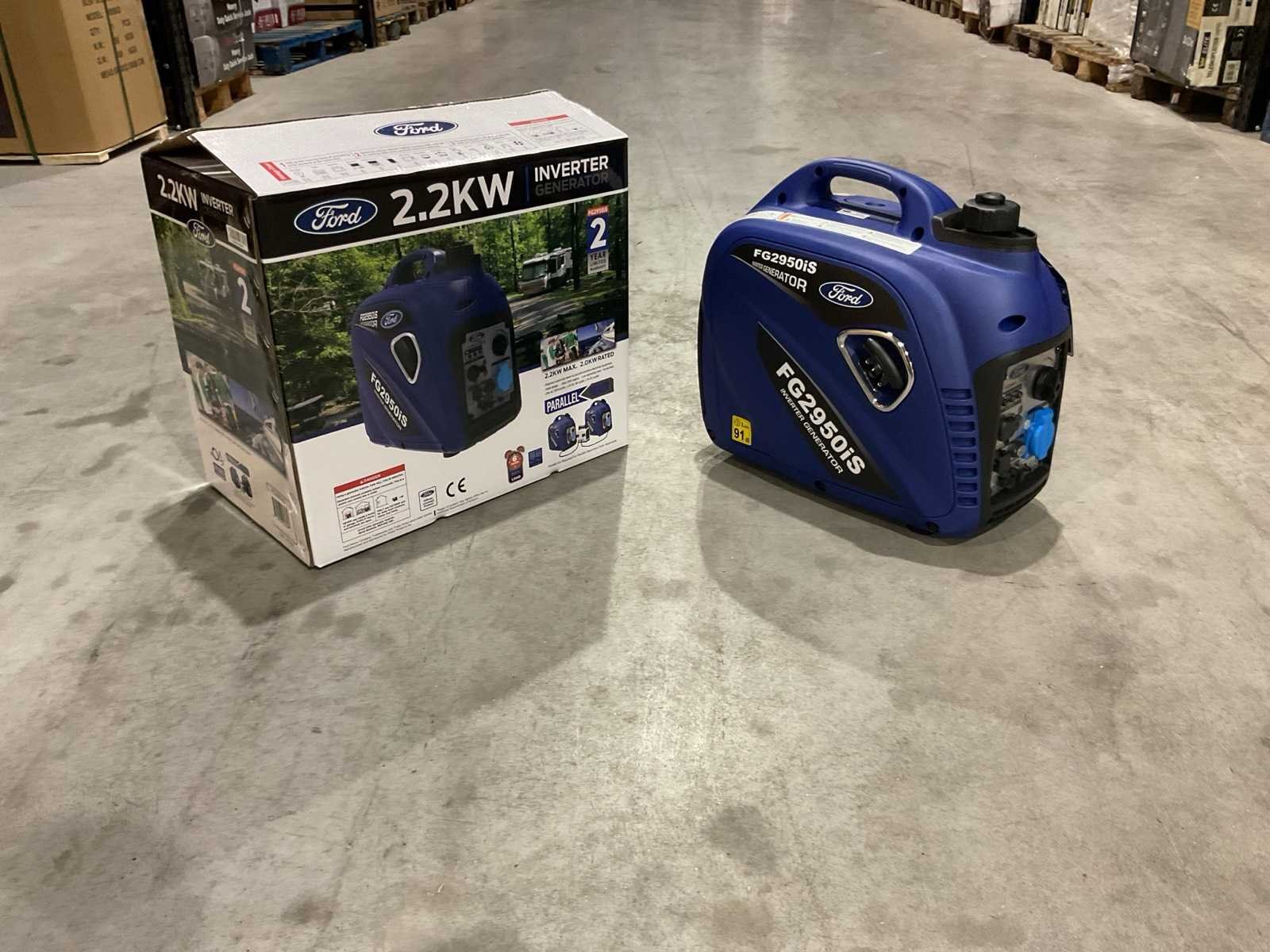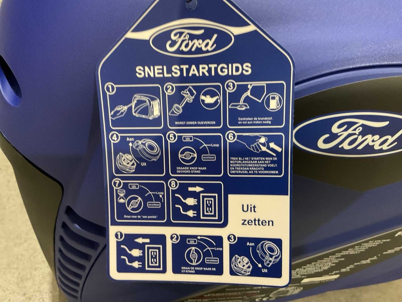 Vermogen (COP): 2000W; Vermogen (MAX): 2200W; Spanning: 230V; Frequentie: 50Hz; Motor: 98cc, 4-takt; luchtgekoeld; Tank: 1,18 gallon / 4,5 liter loodvrije benzine; Olietype: SAE 10W30; Olie-inhoud: 11,8 oz / 350 ml Trekstart; ongebruikt in doos. Merk: Ford Type: FG2950iS Bouwjaar: 2025 Benzine: true Type motor: Ford Aantal cilinders: 1 Luchtgekoeld: true Mobiel: true Machinegewicht: 24.5kg Totale afmeting L: 550mm Totale afmeting Breedte: 330mm Totale afmeting Hoogte: 475mm