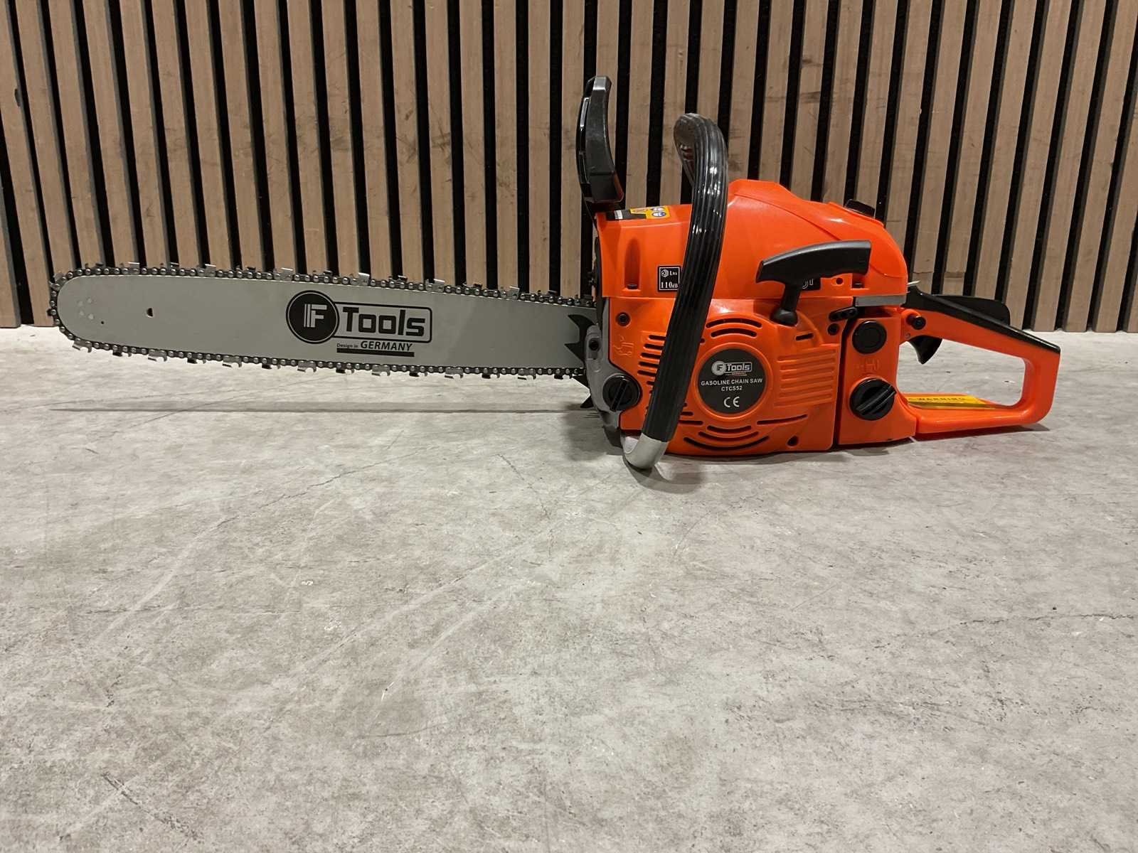 Voorzien van Motortype: 2-takt benzinemotor; Cilinderinhoud: 52 cc; Vermogen: 2,2 kW; Ontsteking: CDI-systeem; Zwaardlengte: 20 inch; Smering: Automatische kettingsmering (Auto Oil); Brandstoftank: ca. 0,55 liter; Olietank: ca. 0,26 liter; Handgreep: Ergonomisch, antislip; Kettingrem; Trillingsdemping; Ongebruikt in doos Merk: Ftools Type: CTCS52 2,2KW 52cc