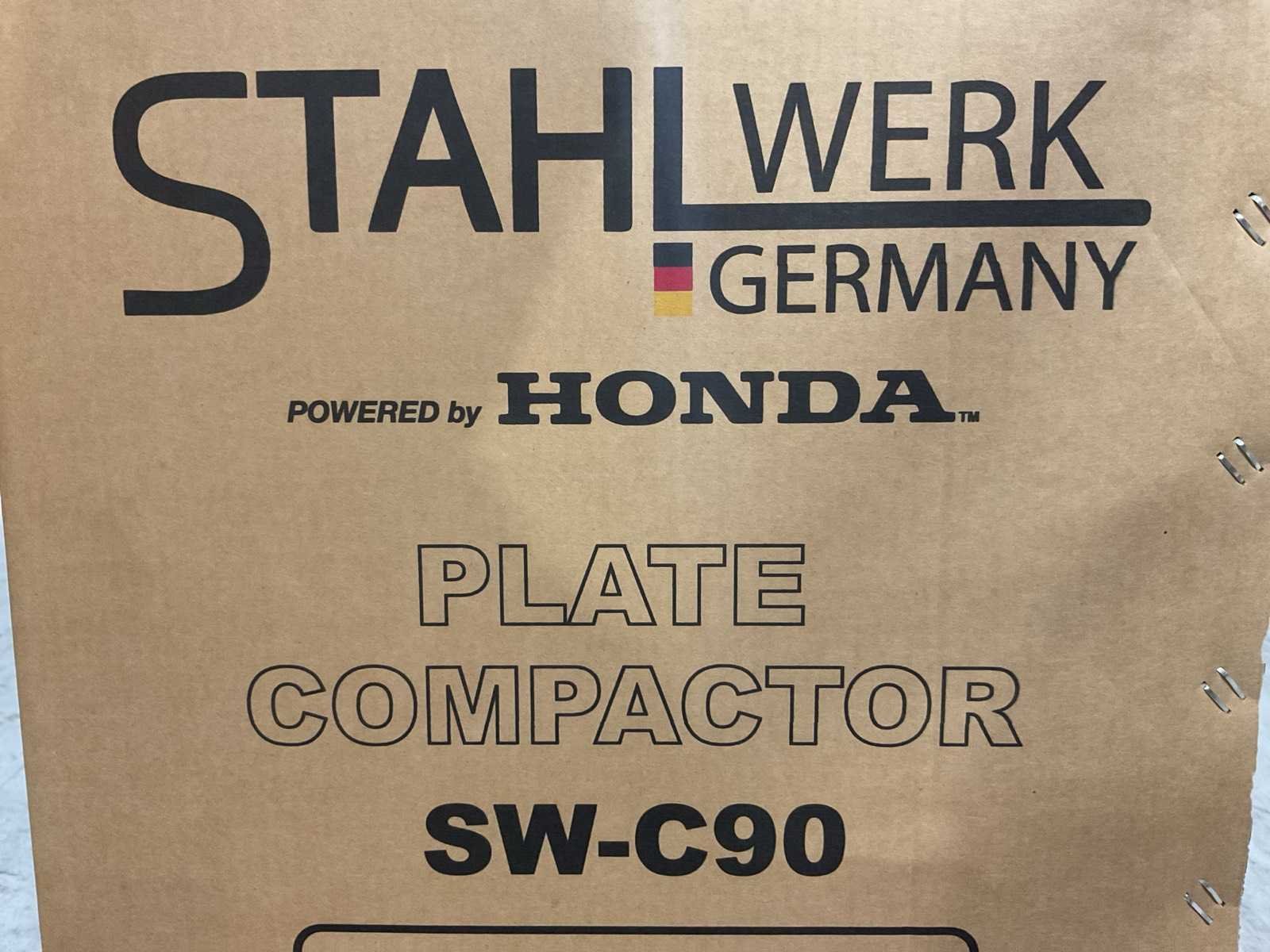 Voorzien van honda fx160 benzinemotor; 163cc motorinhoud; 4,8 pk; trekstart; werkbreedte trilplaat 450 mm; slagkracht 20 kN; werksnelheid 20 m/min; ca 450 m²/uur; 90kg machinegewicht; nieuw in doos Merk: Stahlwerk Type: SW-C90 Bouwjaar: 2025 Bedrijfsgewicht: 90kg Grondplaat afm. l: 640mm Grondplaat afm. b: 480mm Centrifugale kracht: 20kN Merk motor: Honda Eigen gewicht: 90kg Totale afmeting L: 645mm Totale afmeting Breedte: 485mm Totale afmeting Hoogte: 680mm