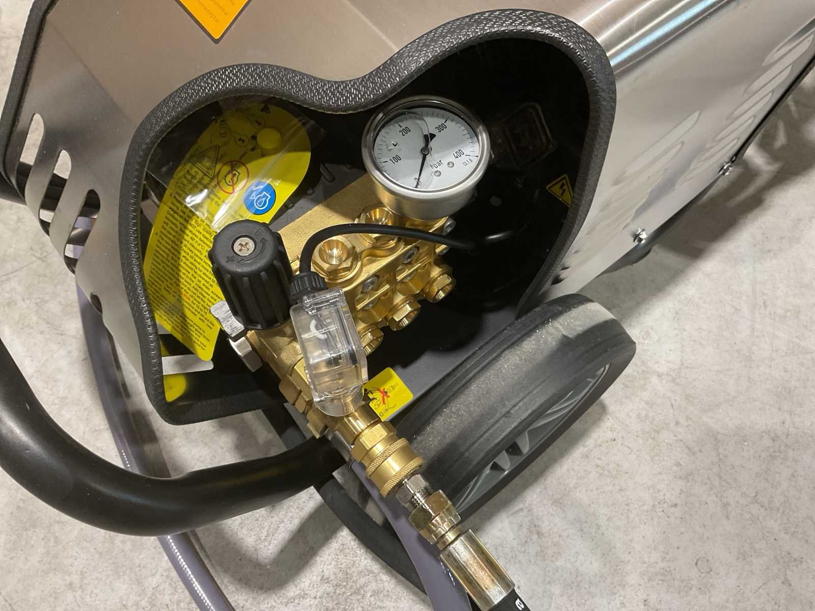 Voorzien van 10M hogedrukslang, staal gevlochten; Roestvrij stalen deksel; koperen triplex zuigerpomp; Stroomsnelheid water: 3.7GPM 14.0L/MIN; 200 bar; Snelheid: 1450 rpm; 4.0kw; 380V; Gewicht( KGS): 68; Afmetingen L*B*H(MM): 730*545*620; Ongebruikt in doos (Afmeting transport verpakking 730x545x620 mm lxbxh, gewicht 68 kg) Merk: Kremer Type: KR-2900-4.0T4 Bouwjaar: 2025 Maximale werkdruk: 200bar Temperatuurbereik min.: 0°c Temperatuurbereik max.: 60°c Capaciteit.: 840l/hr Mobiel: true Vermogen: 4kW Aansluiting: 380V Eigen gewicht: 68kg Totale afmeting L: 730mm Totale afmeting Breedte: 545mm Totale afmeting Hoogte: 620mm