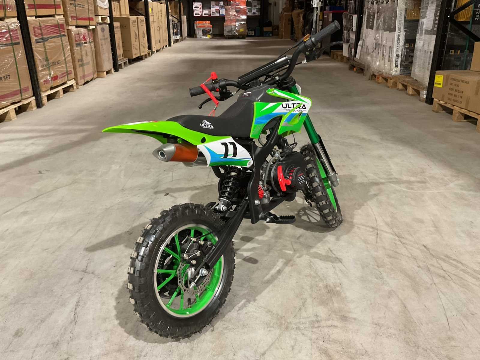 Voorzien van 49cc motor; 2 takt; 2 HP; schijfremmen; bandenmaat 10” inch; ongebruikt in doos (transport afmetingen 105x30x60 cm 26kg) Merk: Ultra Motocross Model: DB01 Type: ILX 49cc GR Brandstof: Benzine 2 Takt Cilinderinhoud: 49cc Gewicht: 24kg Kleur: Groen Transmissie: Automaat Aantal sleutels: 2 Bouwjaar: 2025