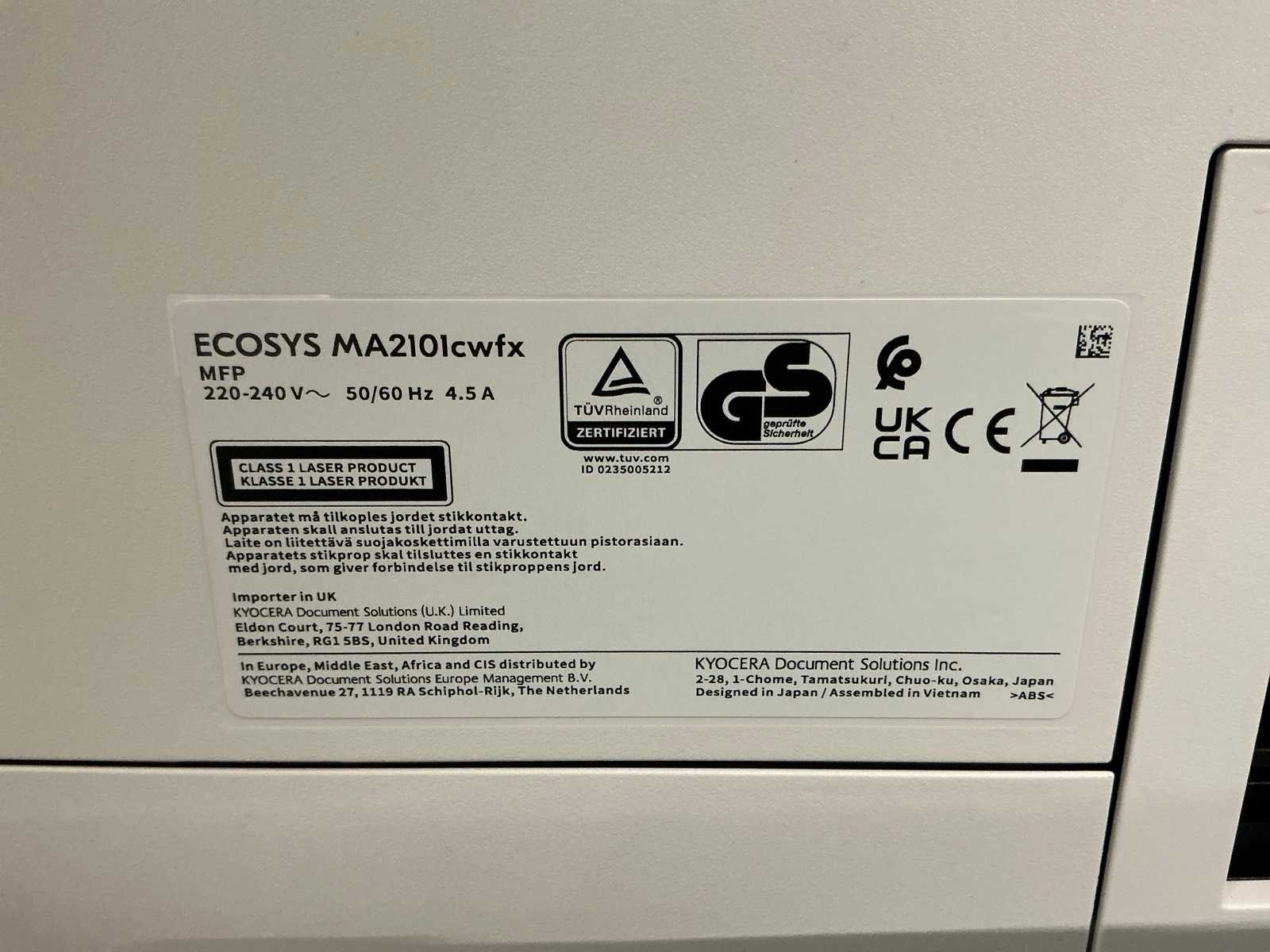 Deze kavel is afkomstig van een van de grootste retailers van Nederland. Het product is mogelijk niet volledig functioneel en origineel verpakt. Daarnaast kunnen er gebruikssporen zijn. Om een goed beeld te krijgen adviseren wij om gebruik te maken van de kijkdag. Met de juiste kennis en onderdelen kunnen apparaten gerepareerd worden. Kom naar de kijkdag om de werking en reden van retour persoonlijk te controleren of testen. Beoordeel persoonlijk of een defect te repareren valt. Wij adviseren u verder om de foto's zorgvuldig te bekijken om een goed beeld te krijgen van de huidige staat van het product en eventueel cosmetische schade te beoordelen. Door te bieden op dit kavel draagt u bij aan een duurzamere e-commerce industrie. Je geeft dit product een tweede leven en draagt bij aan het verminderen van e-waste en CO2 uitstoot. ( LET OP!!! Voedingskabel kan ontbreken) Merk: Kyocera Model: ECOSYS Type: MA2101cwfx