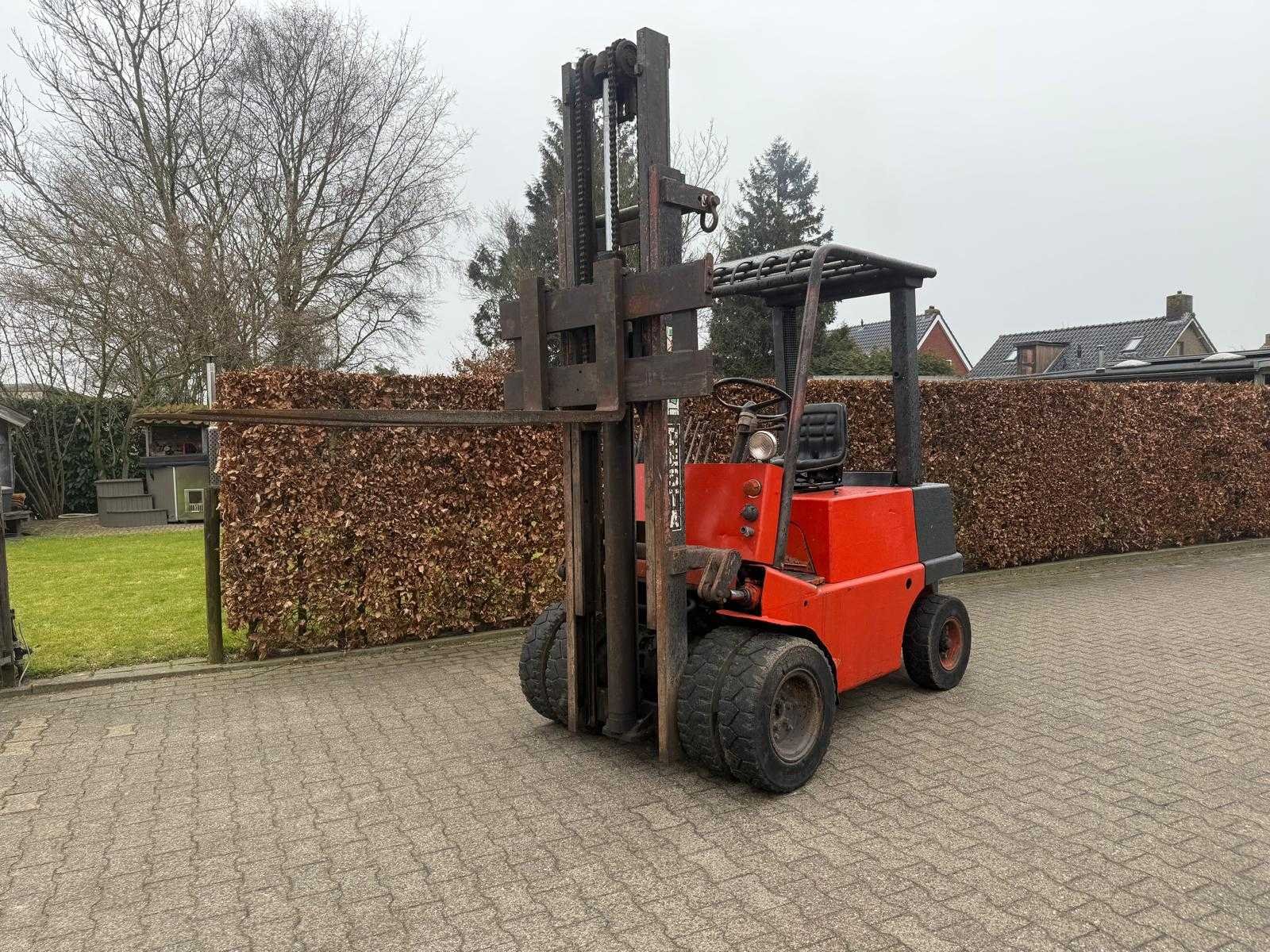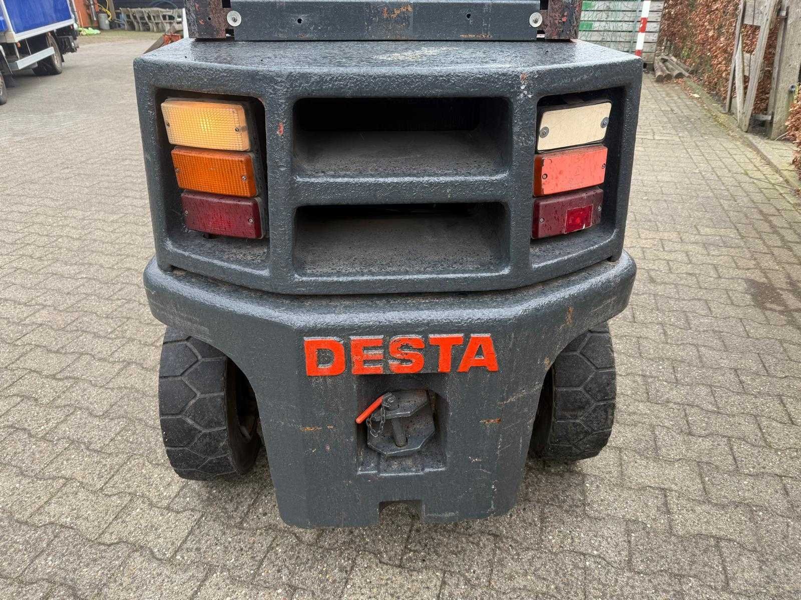 De heftruck is goed onderhouden en alles werkt naar behoren. De heftruck is exclusief accu. Merk: Desta Type: DVHM3222LX Afgelezen urenstand: 1739 Ruw terrein: true Roterend vorkenbord: true Duplex mast: true Eigen gewicht: 4700kg Vol rubber banden: true LPG: true